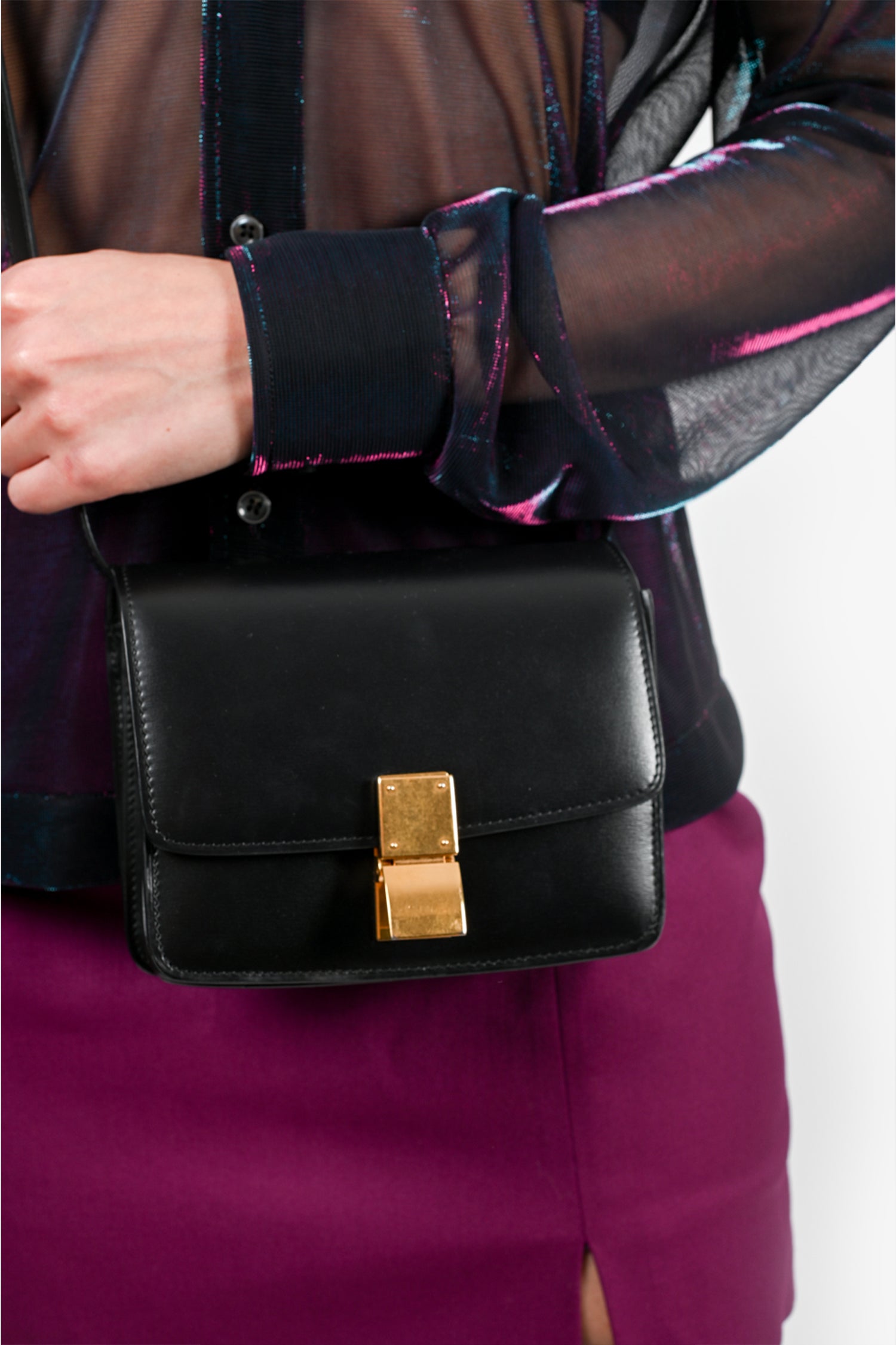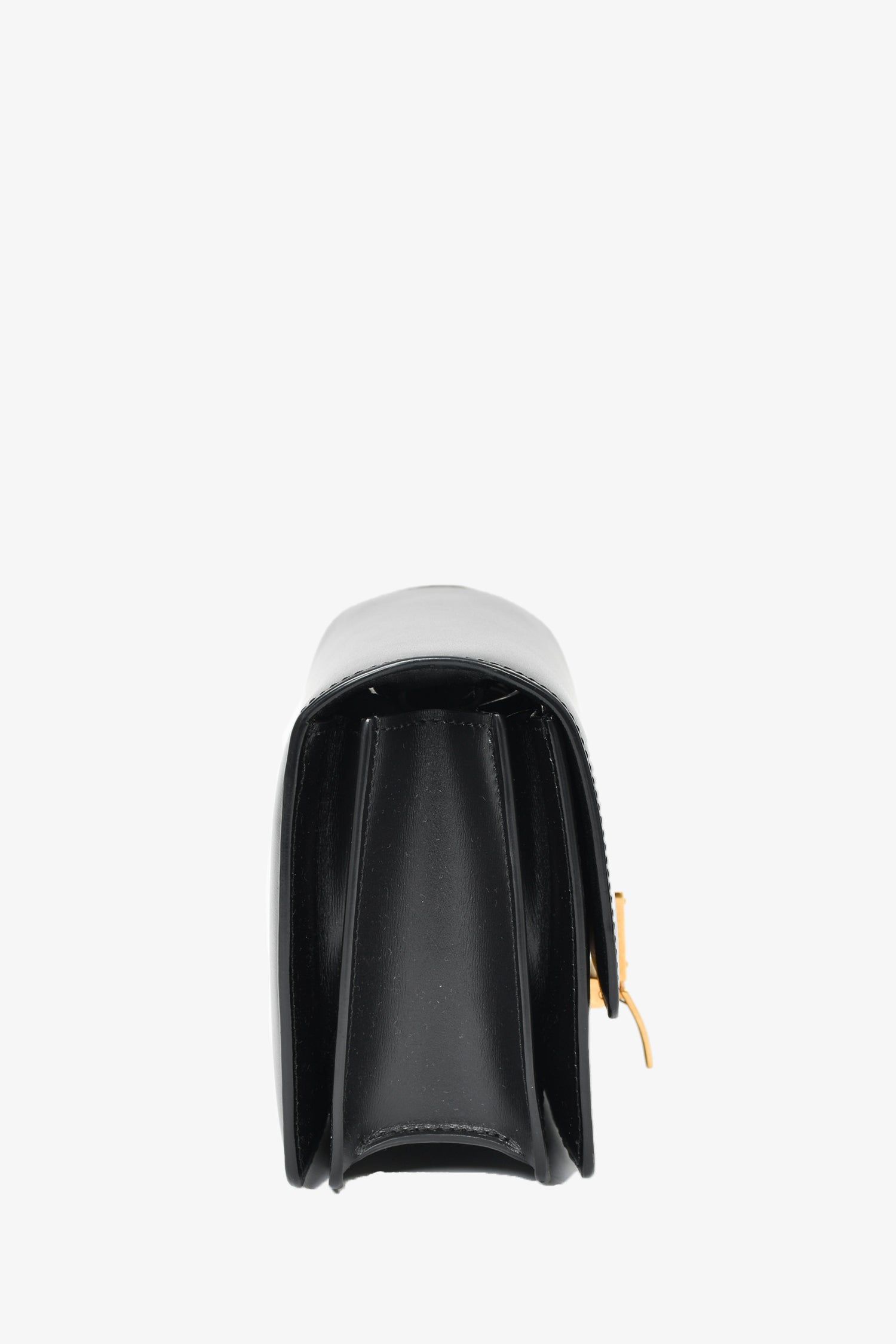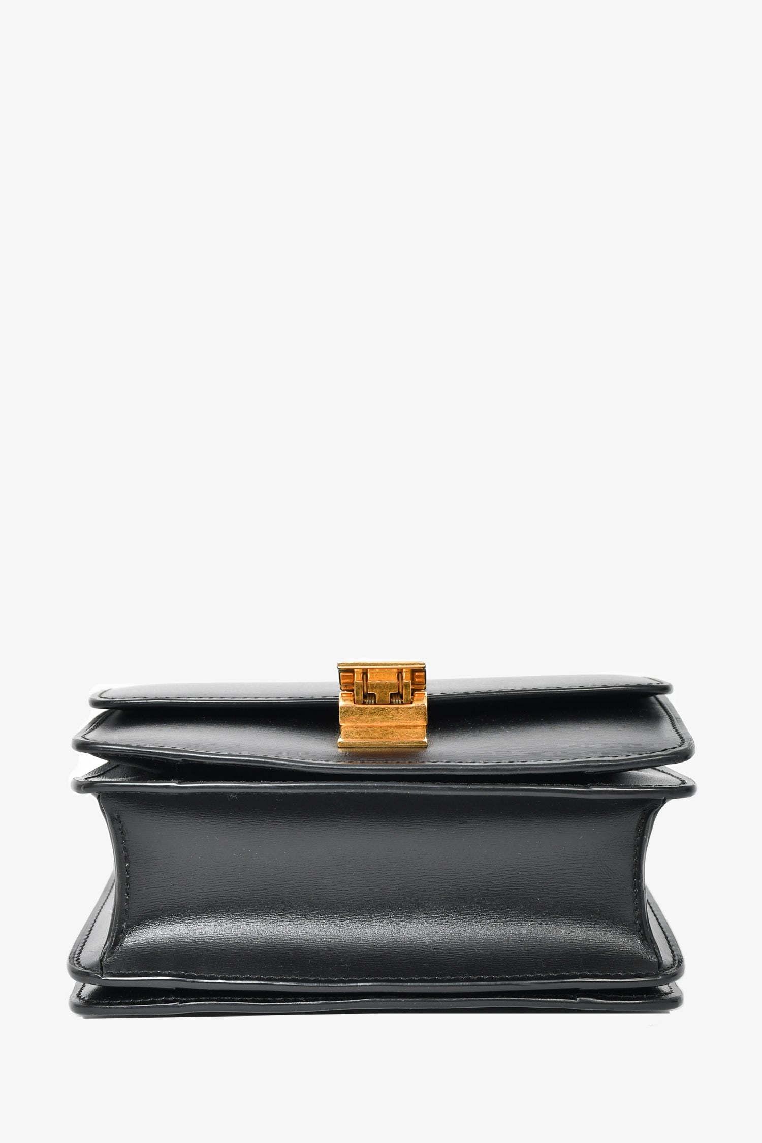 Refresh availabilityCeline Black Leather Small Box Crossbody Bag. Top flap with flip lock closure. 3 interior compartments. Single interior pocket with zip closure. Black interior leather. Gold-tone hardware. Tonal stitching.