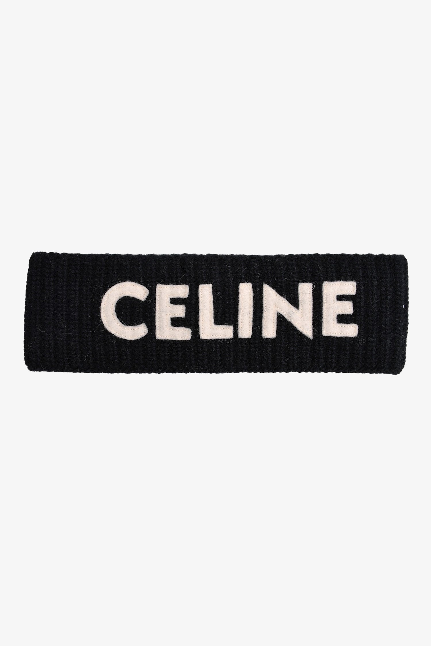 Celine Black Ribbed Wool/Cream Logo Headband Size OS