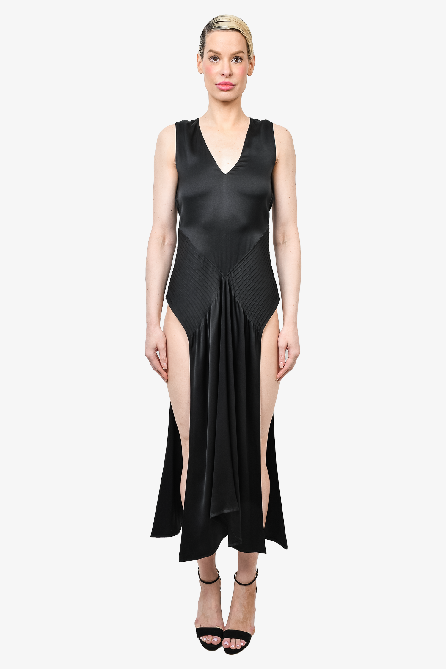 Celine Black Silk V-Neck Sleeveless Dress with Side Cut-Outs