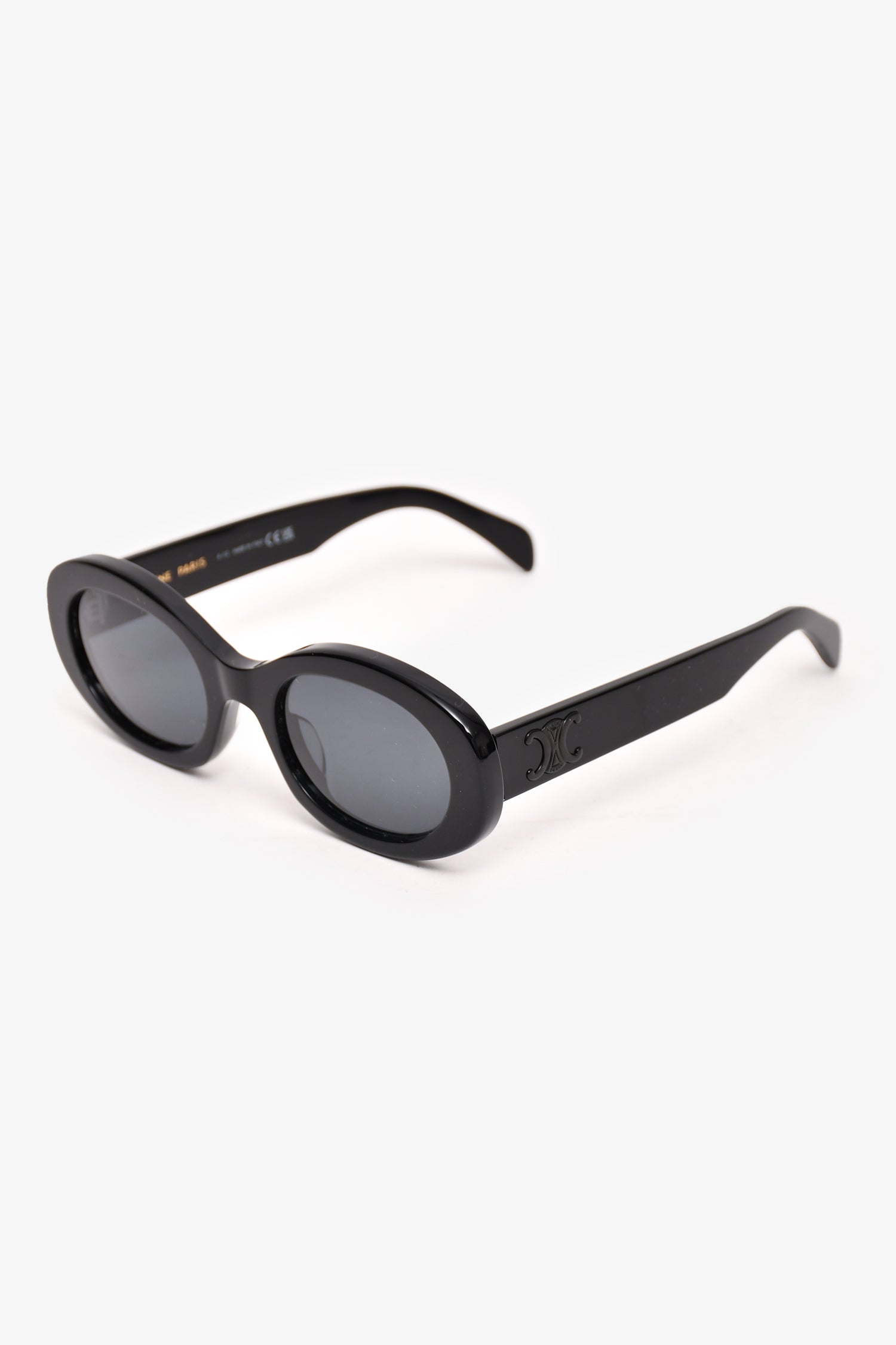 Refresh availabilityCeline Black Triomphe Oval Sunglasses. Built-in nose pads. Tonal hardware.