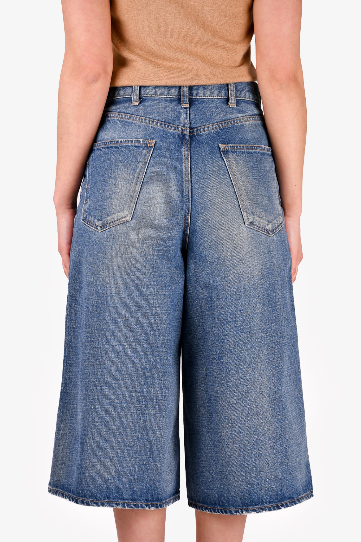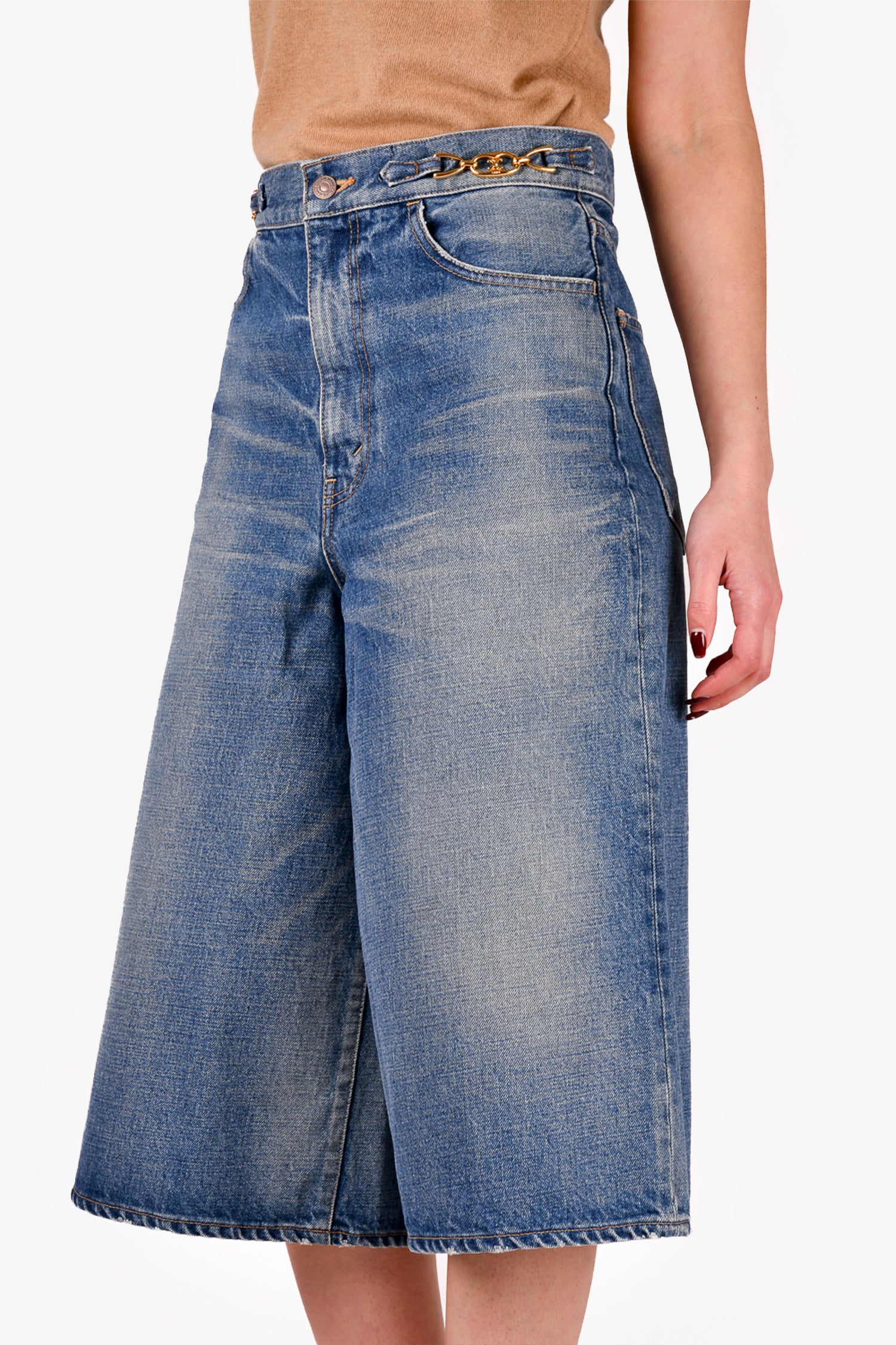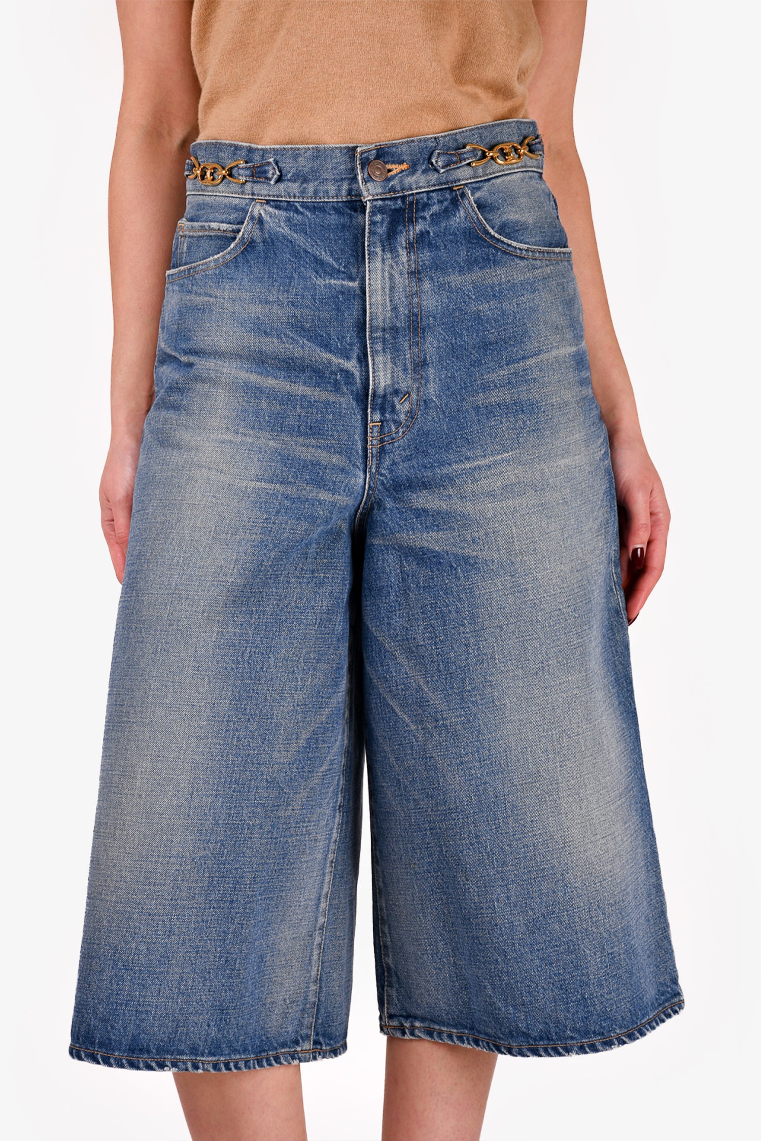 Celine Blue Denim Buckle Detailed Knee Length Shorts Size 30