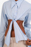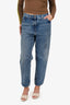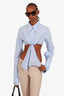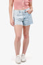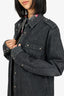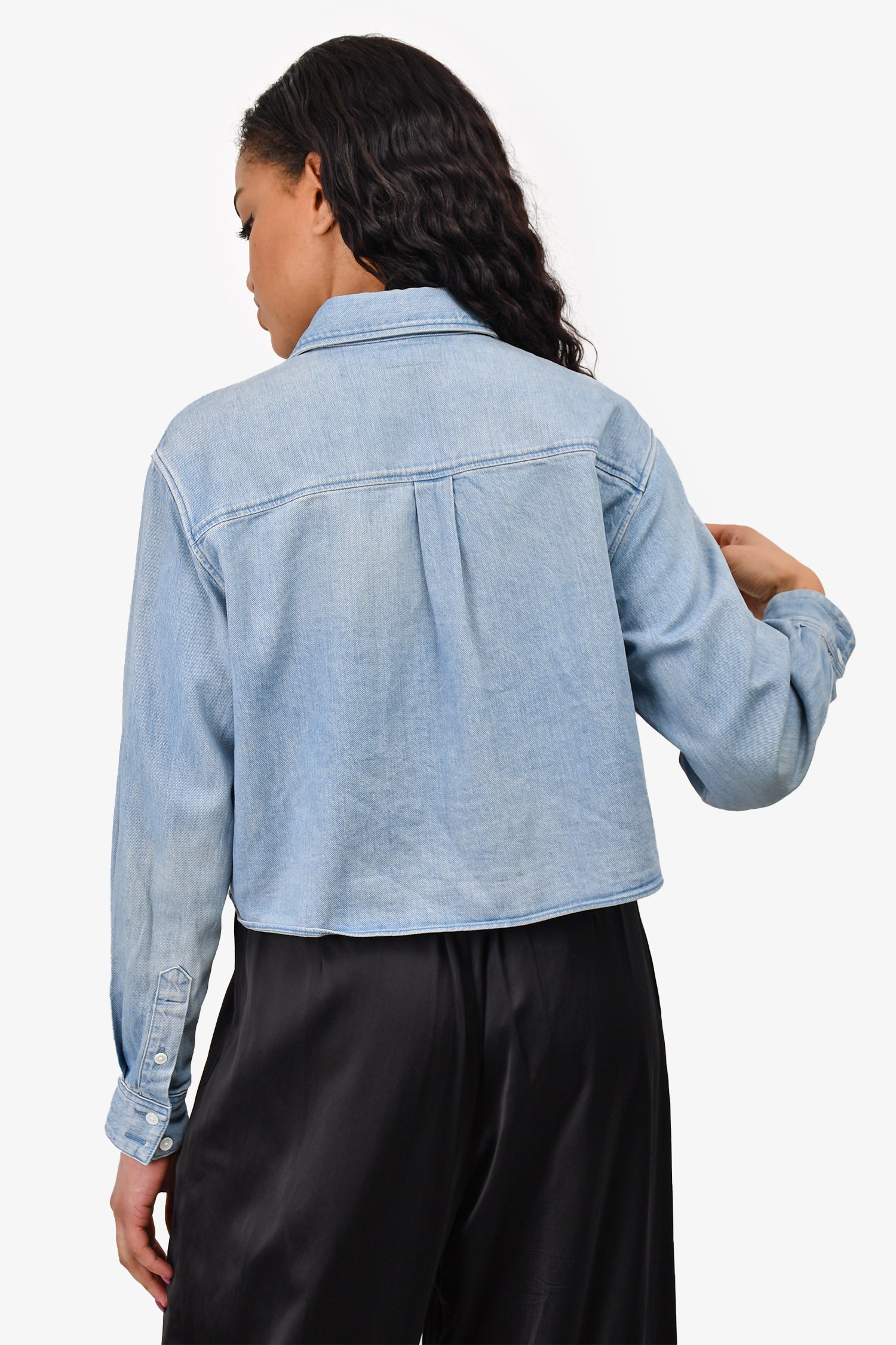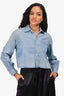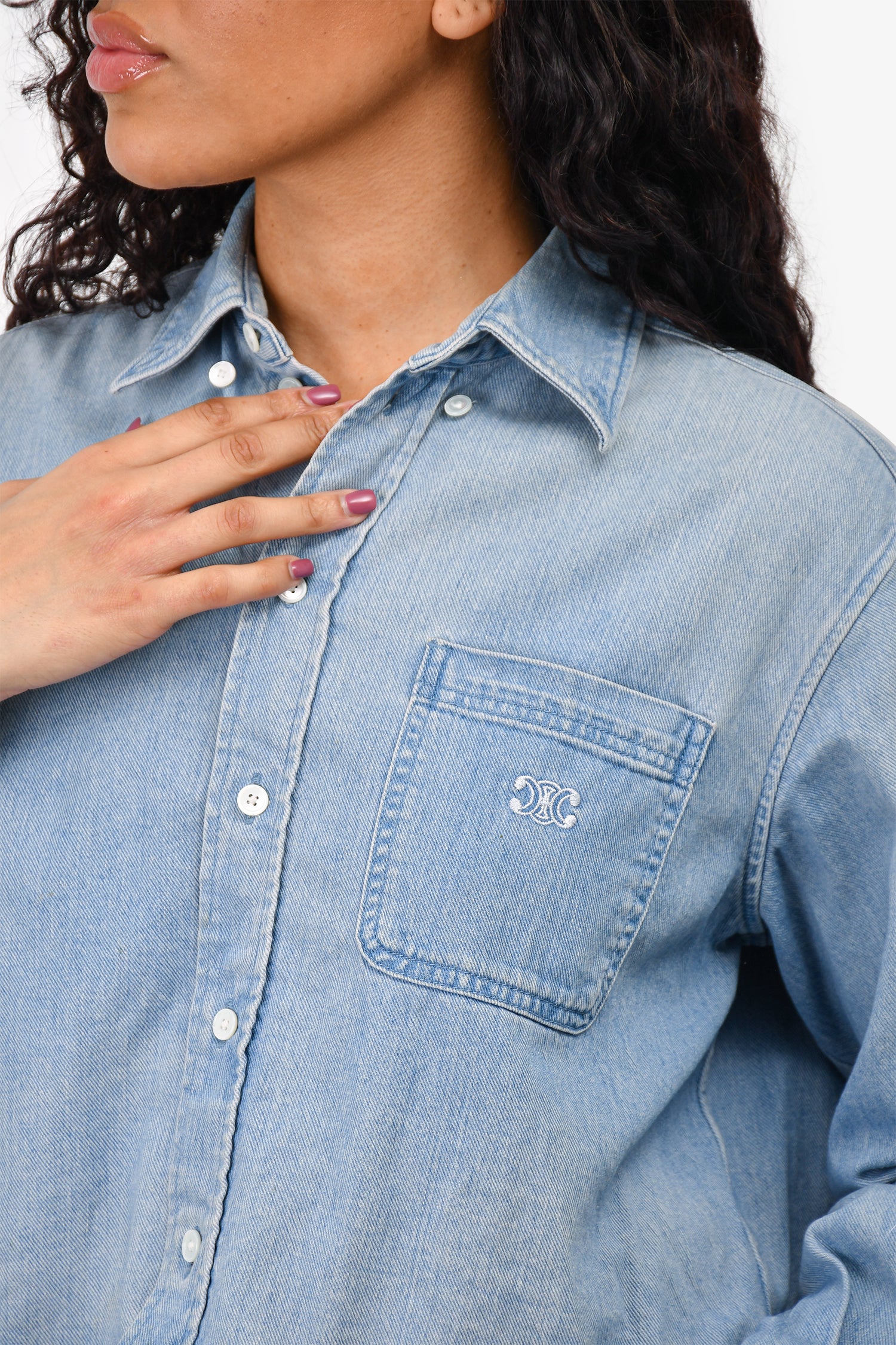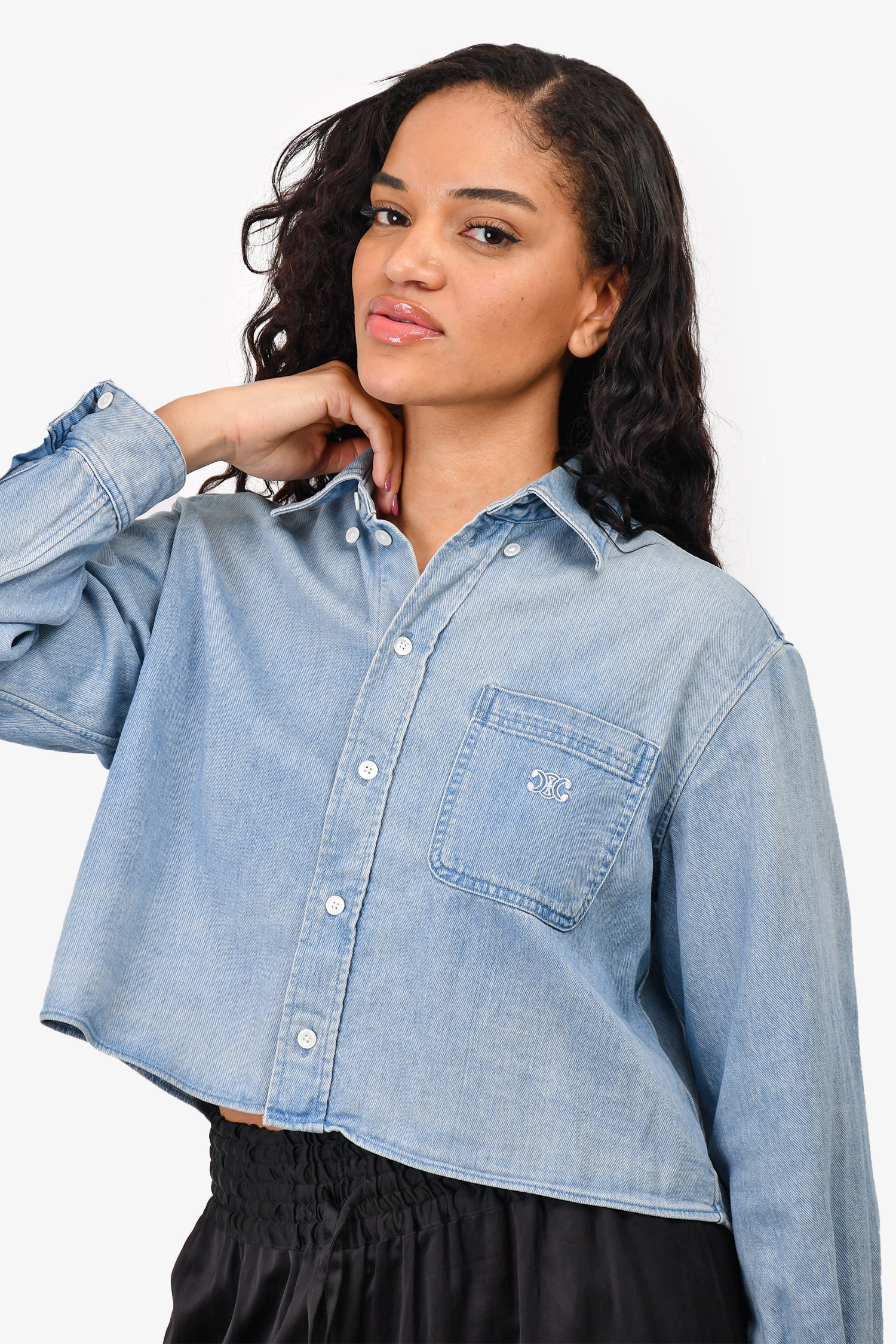 Celine Blue Denim Logo Embroidered Cropped Button-Up Shirt Size S