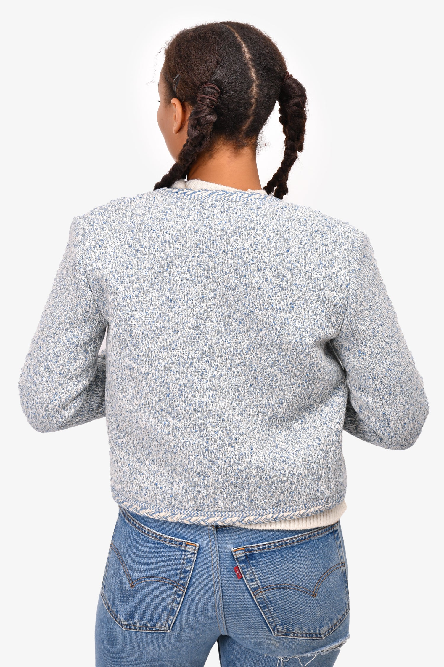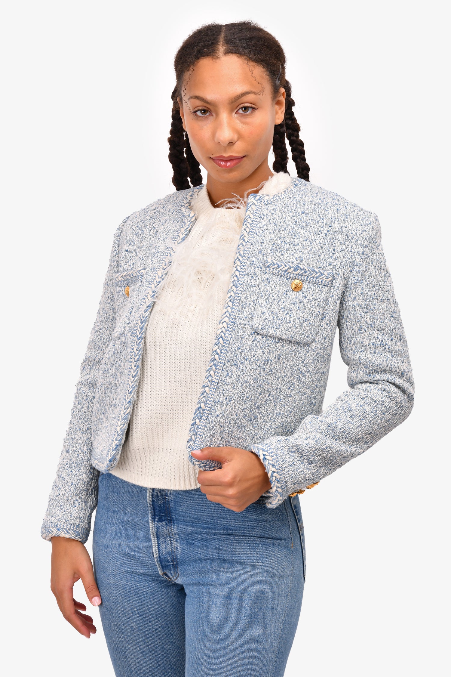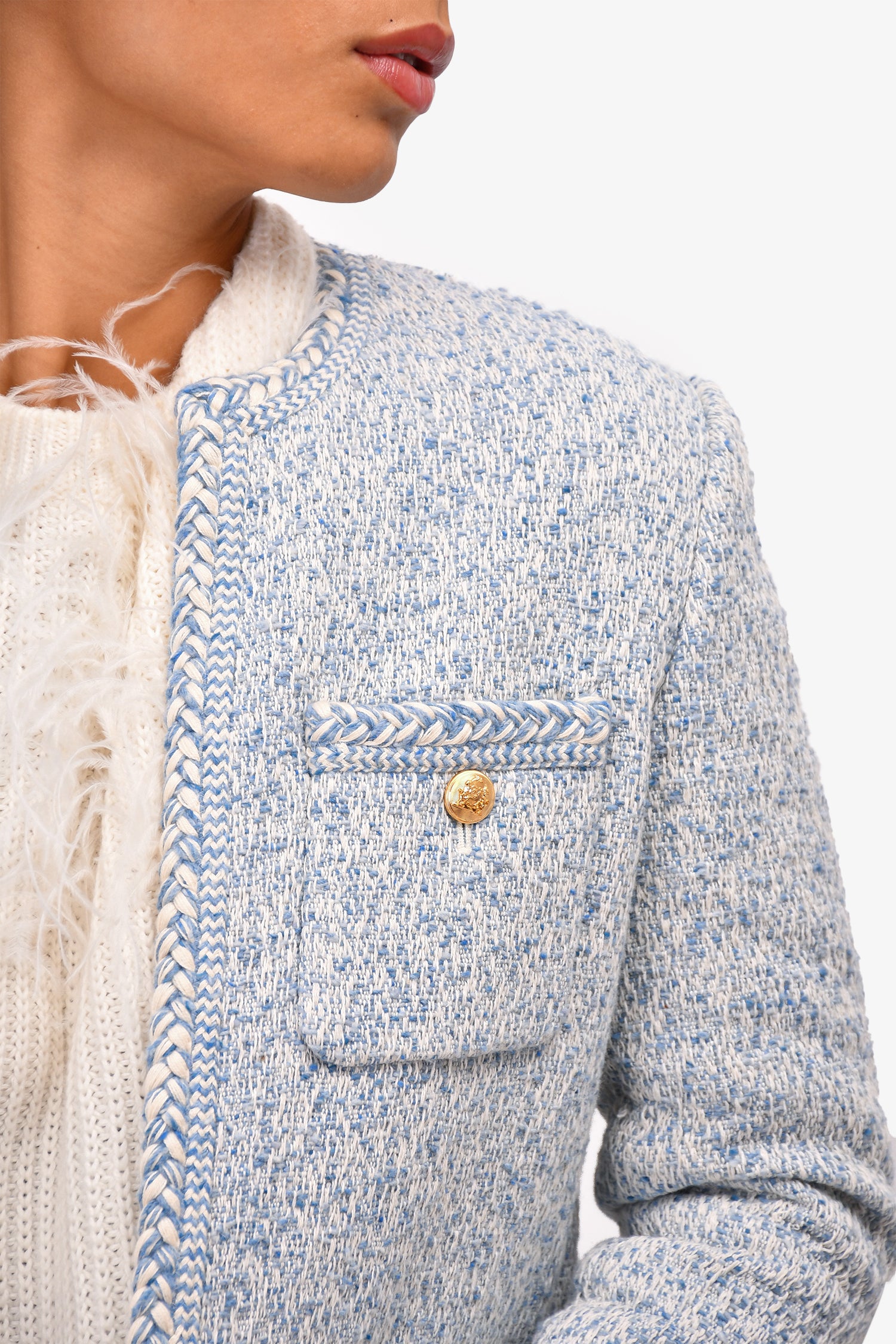 Celine Blue Tweed Wool Blend Jacket Size 38
