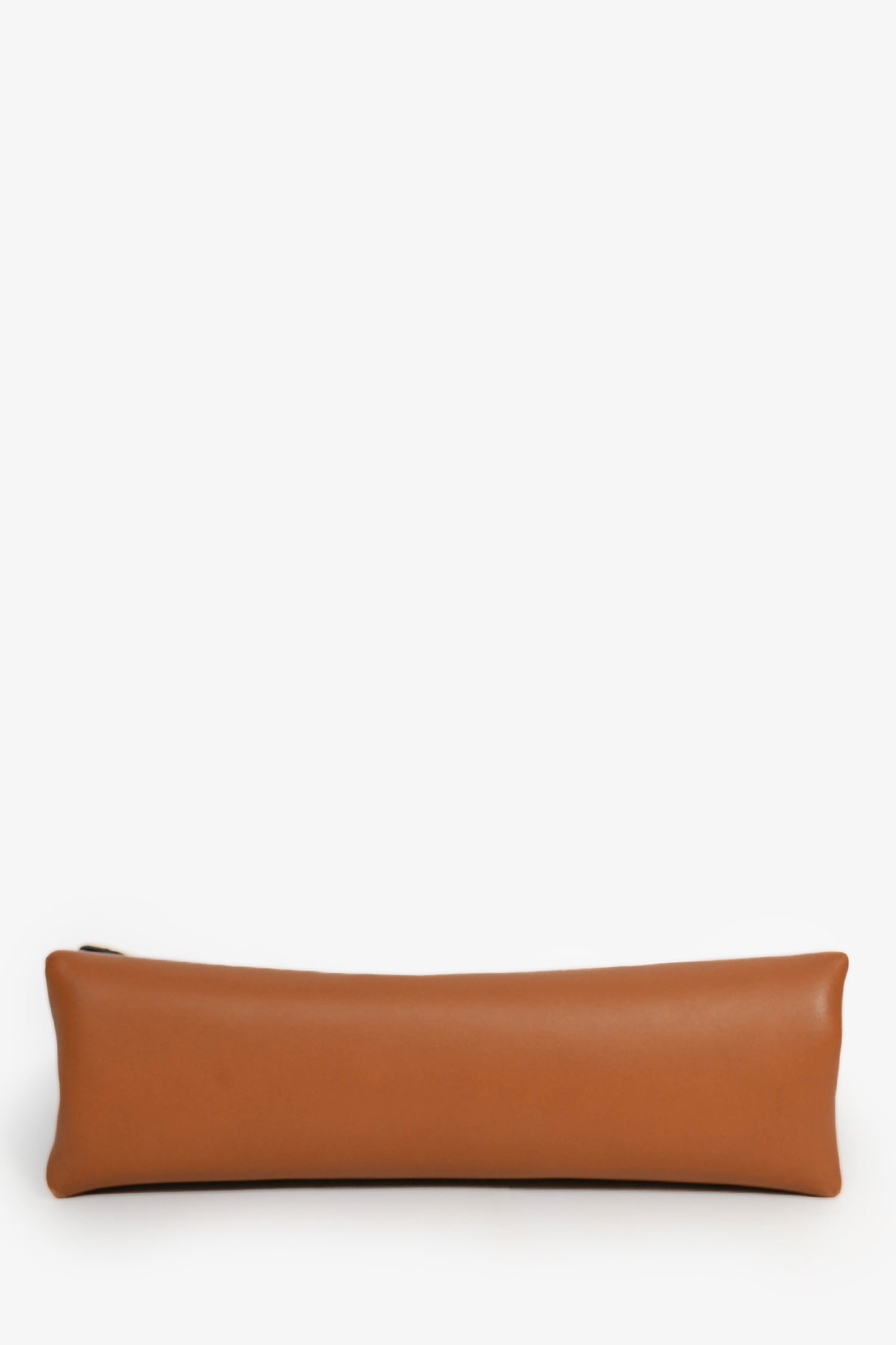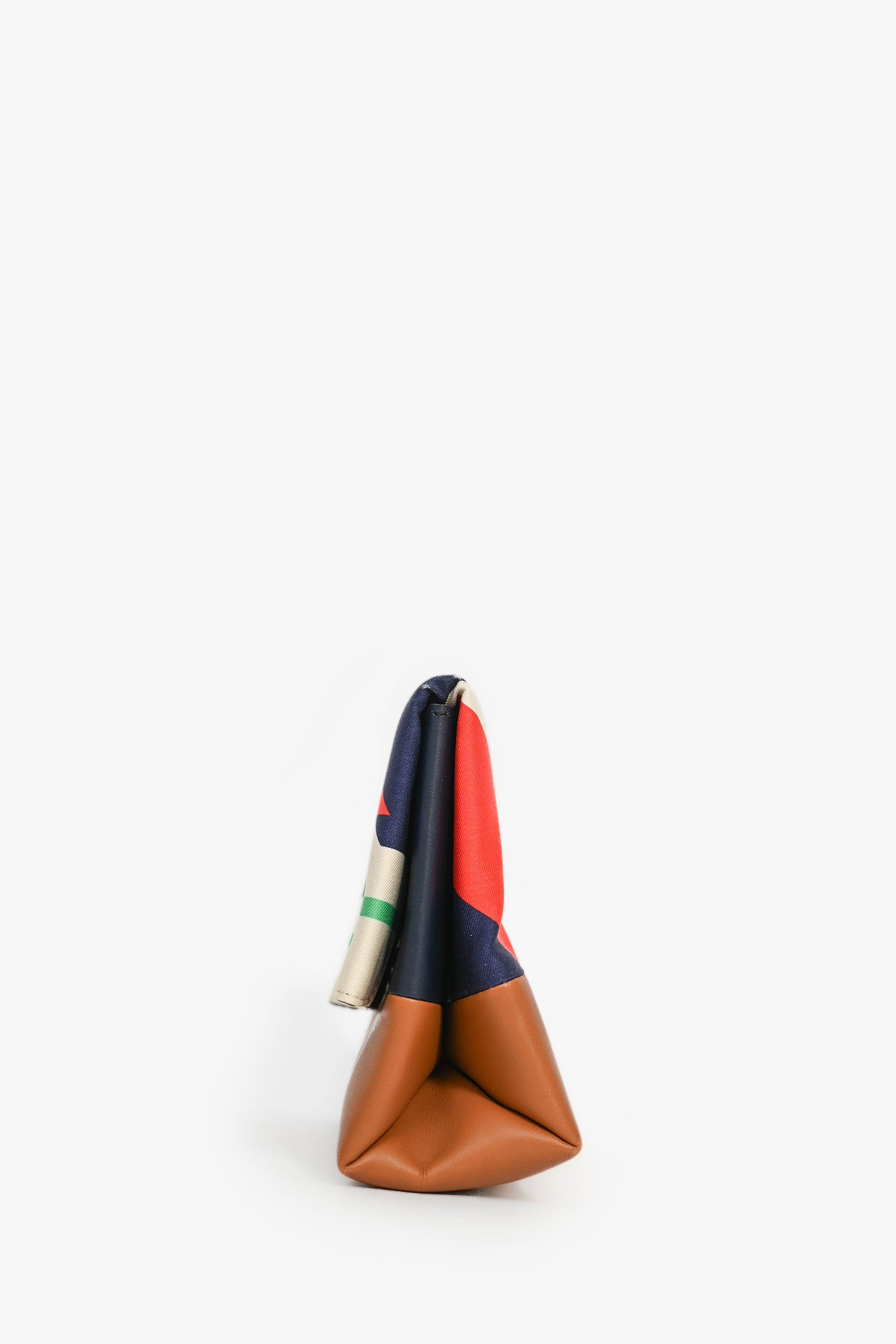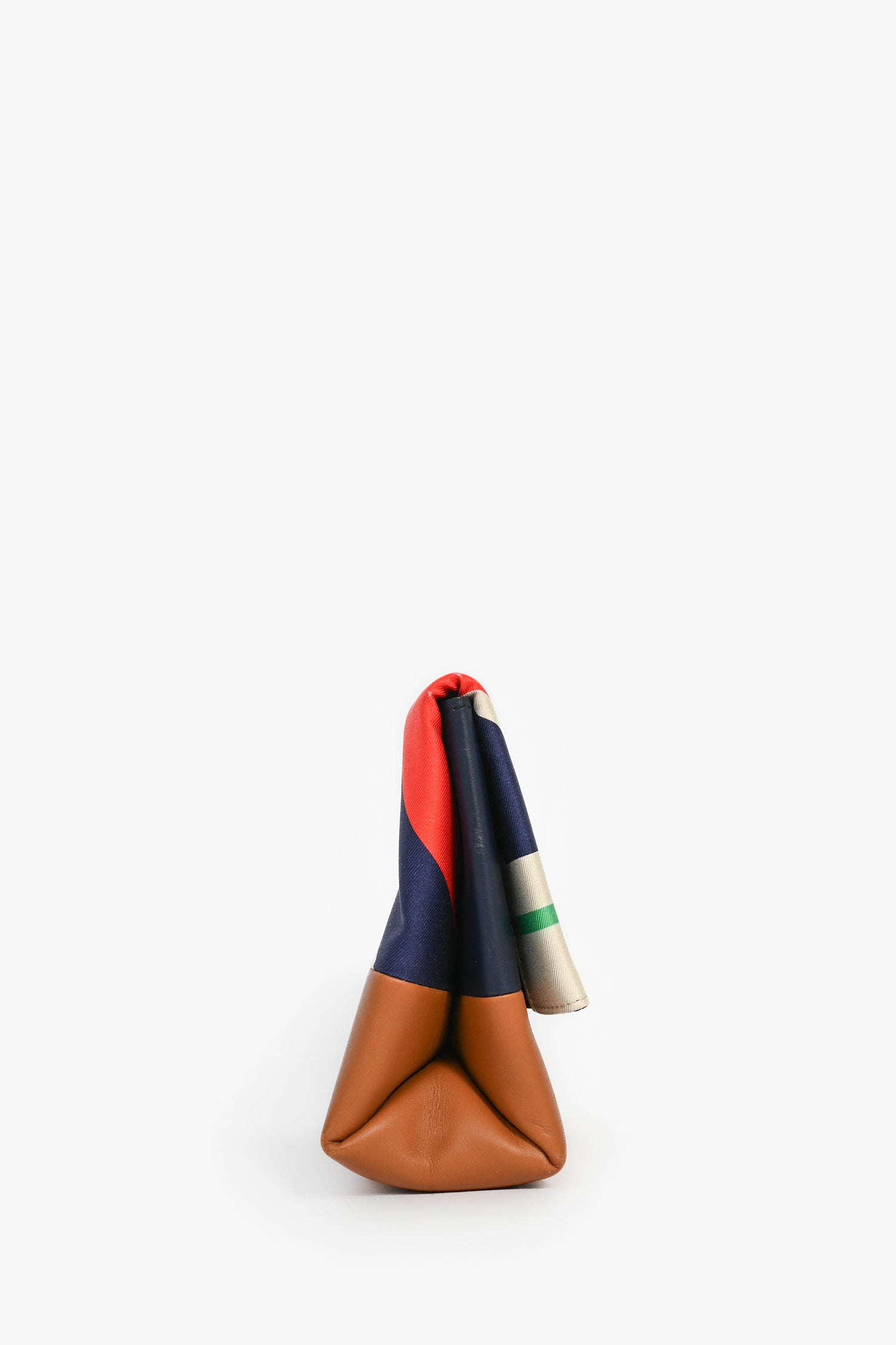 Celine Brown Leather Striped Canvas Pouch (As Is)