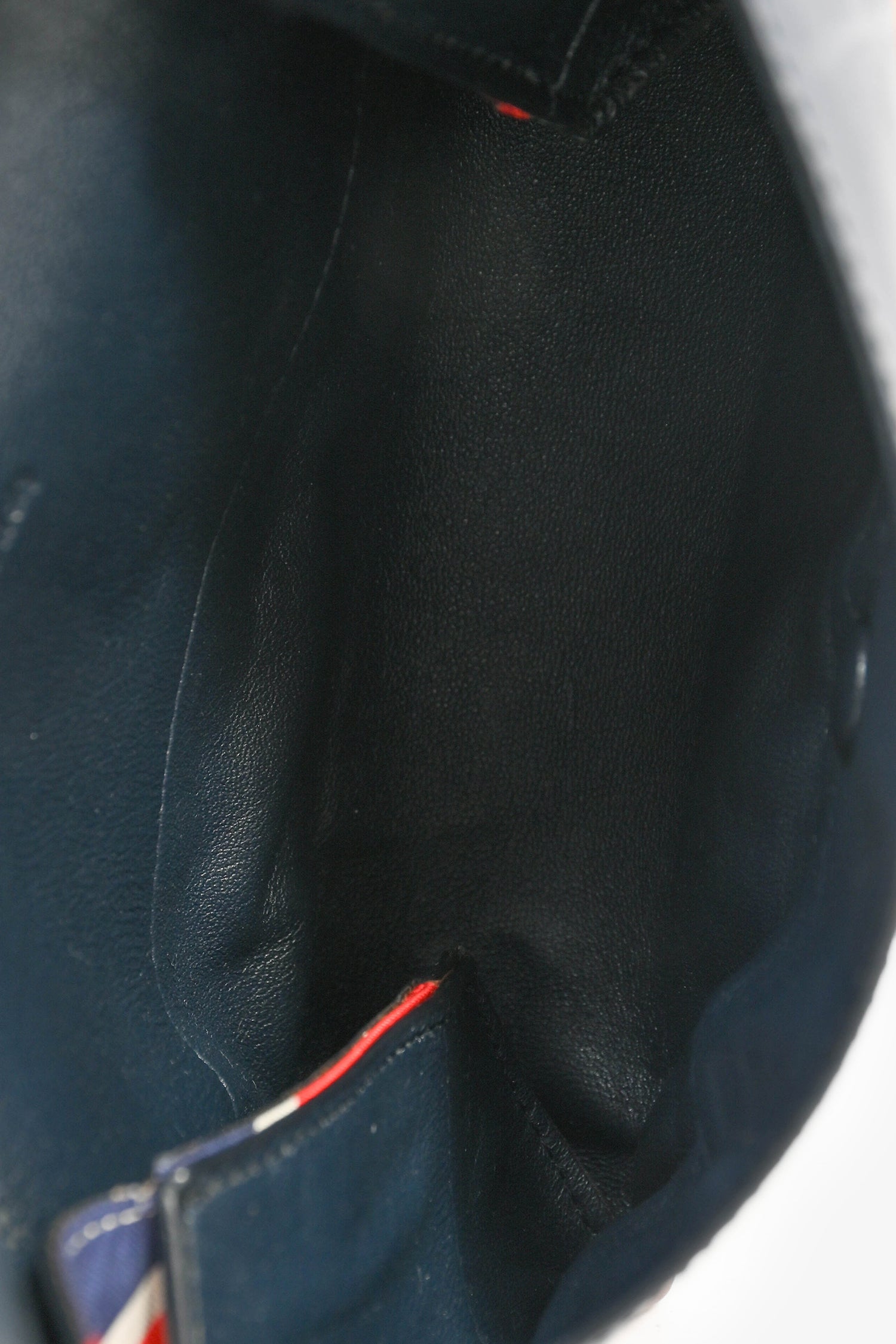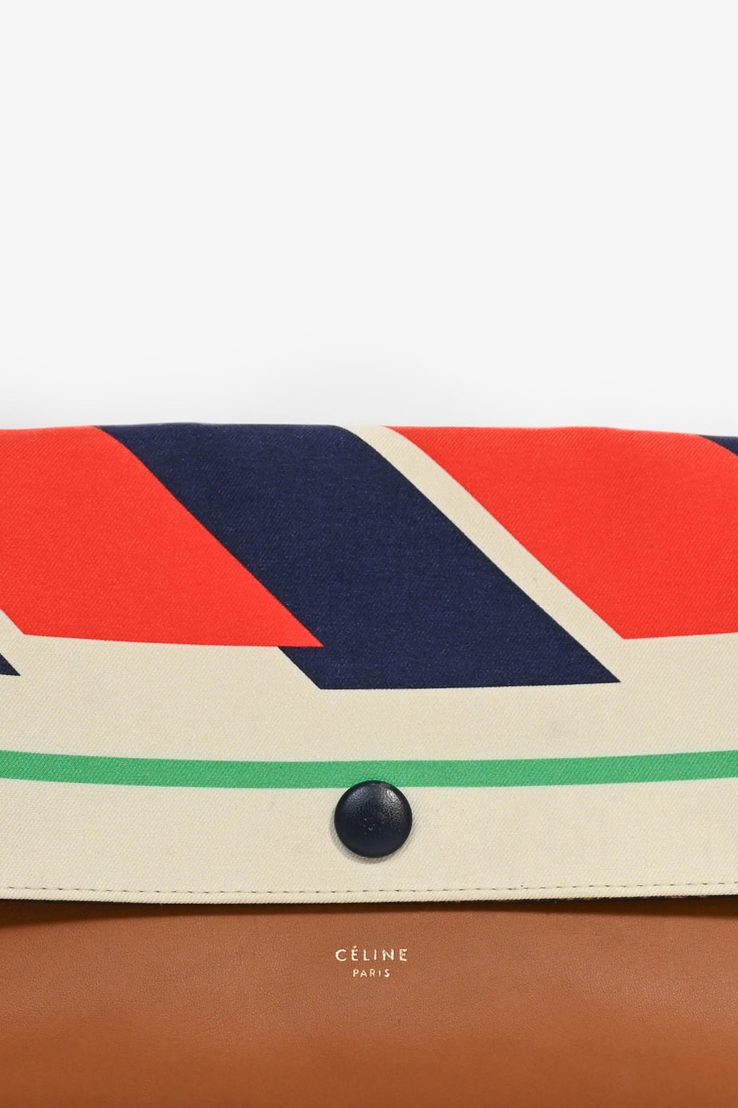 Refresh availabilityCeline Brown Leather Striped Canvas Pouch. Fold-over canvas flap with a snap closure. Leather exterior. Leather lined interior. Tonal stitching.