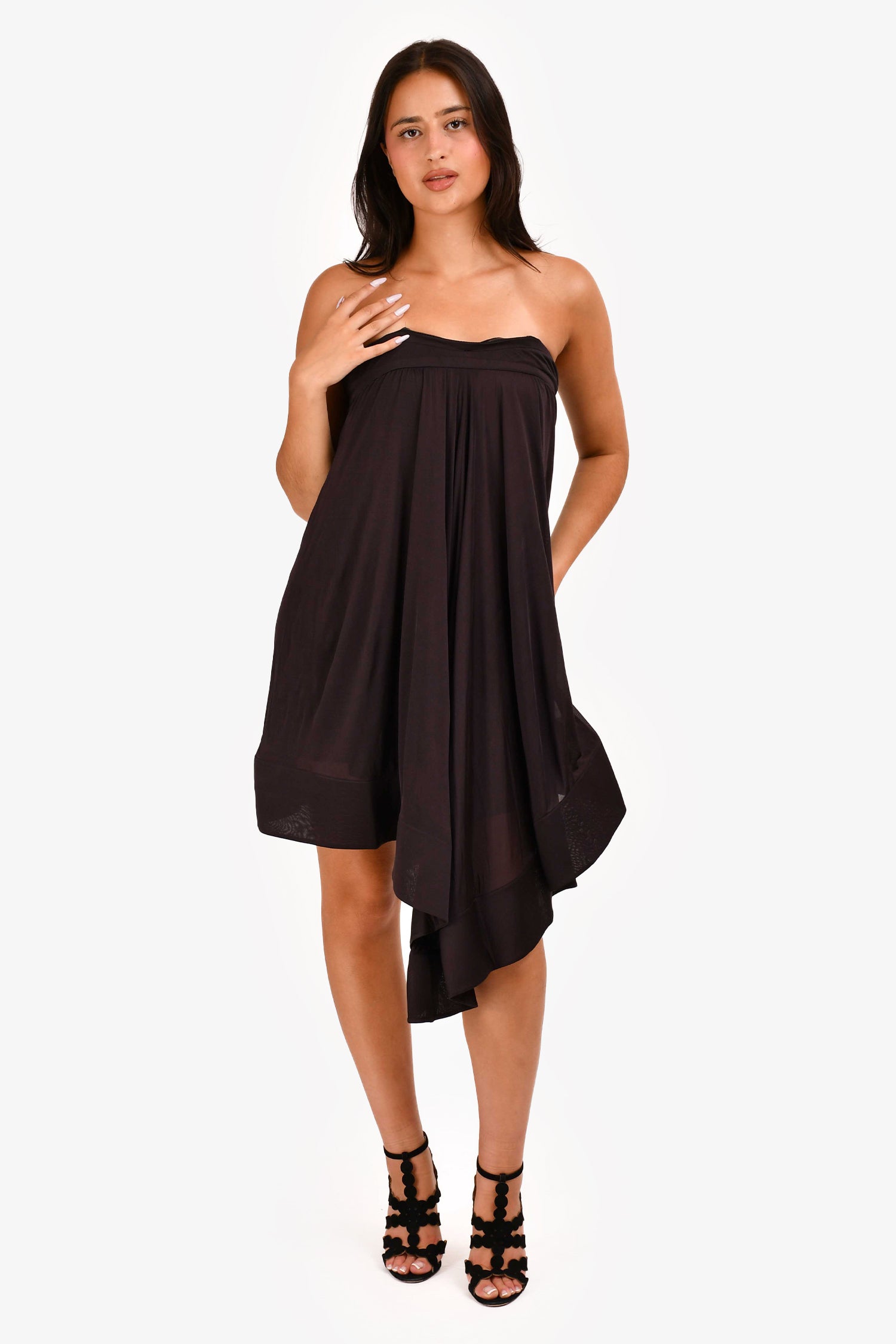 Refresh availabilityCeline Brown Strapless Circle Dress. Strapless neckline. Hidden back zip closure. Structured silhouette. Fully lined. Tonal stitching.