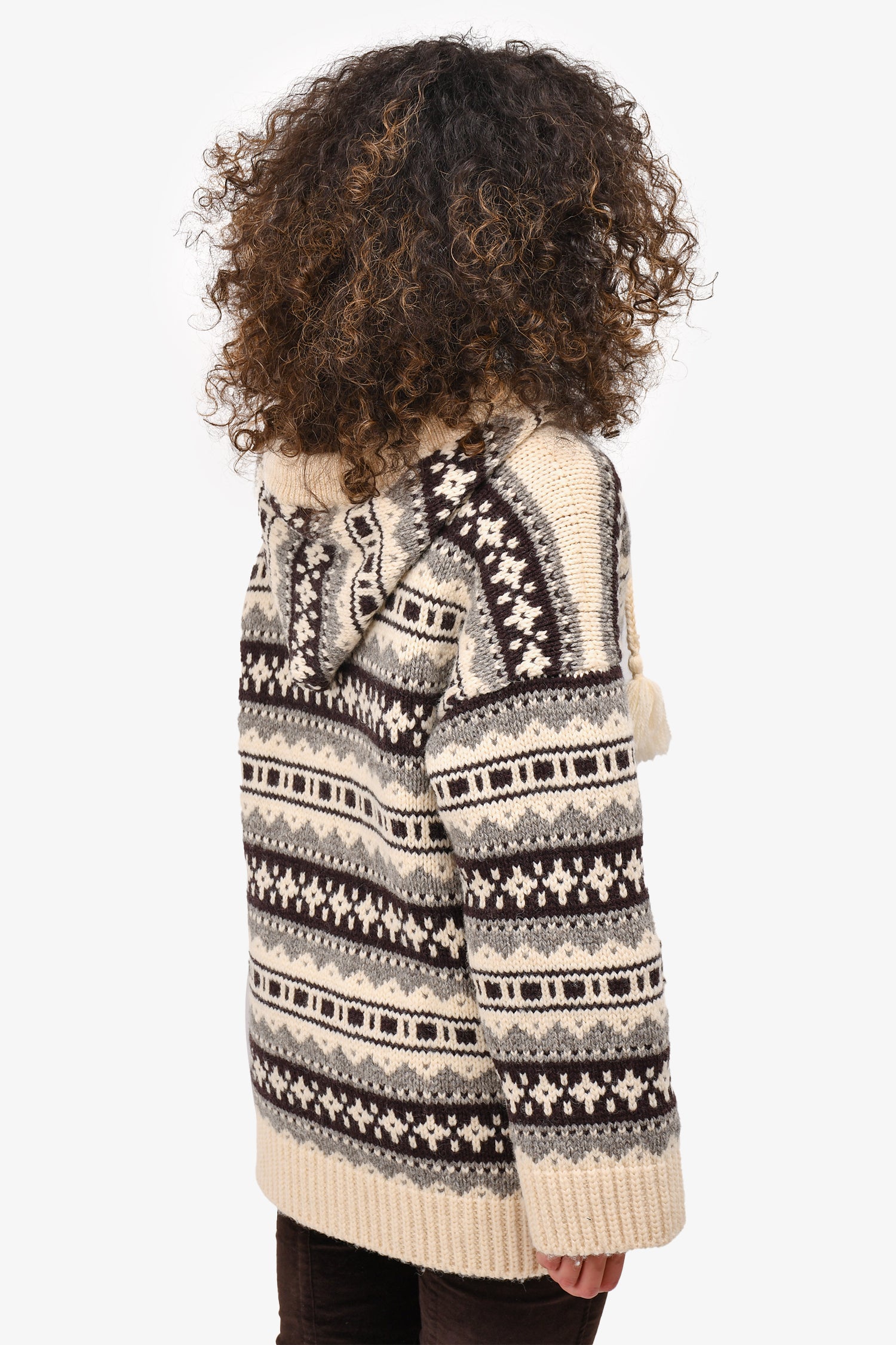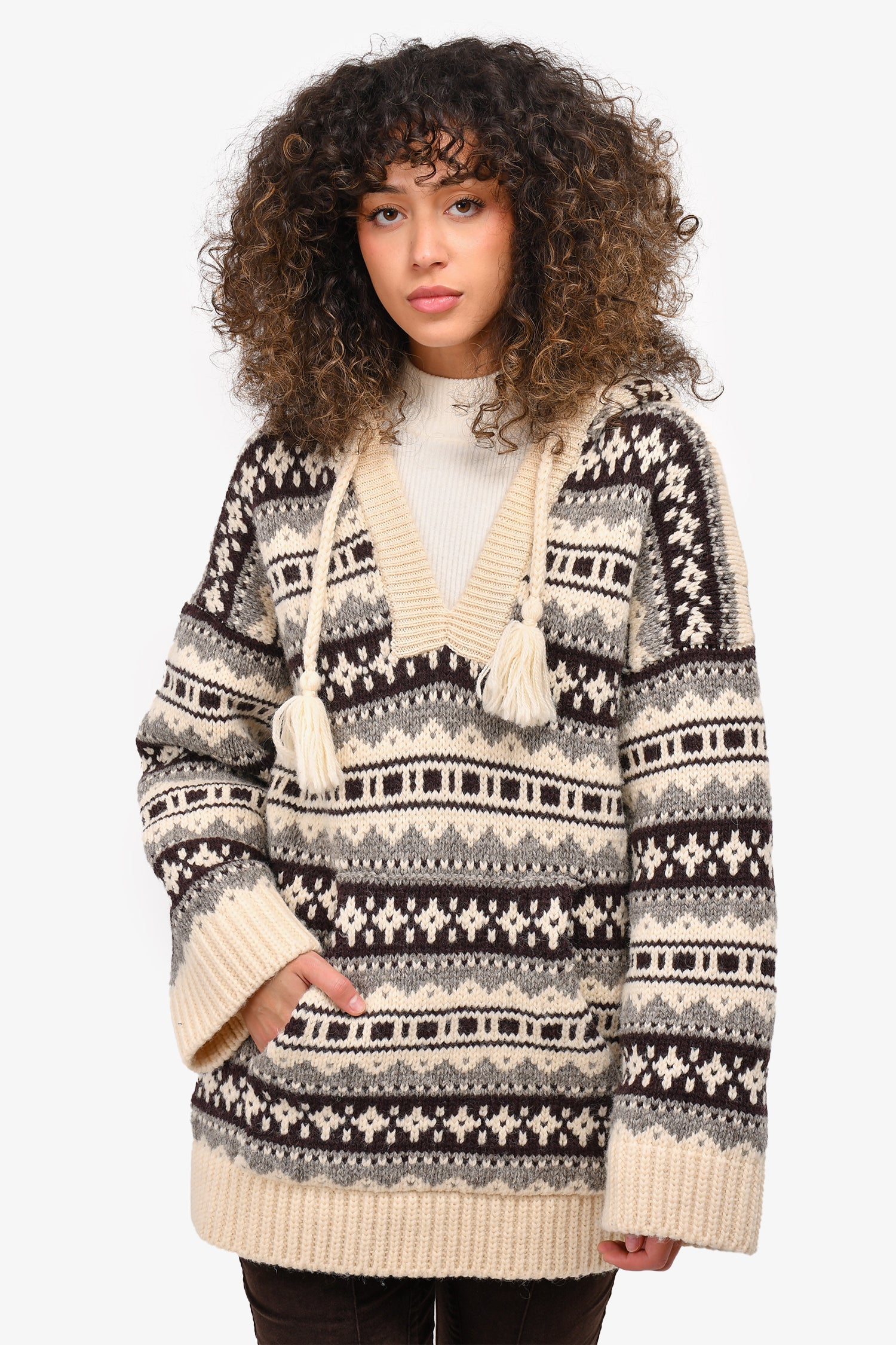 Celine Cream/Brown Baja Fair Isle Shetland Wool Oversized Hoodie Size XS