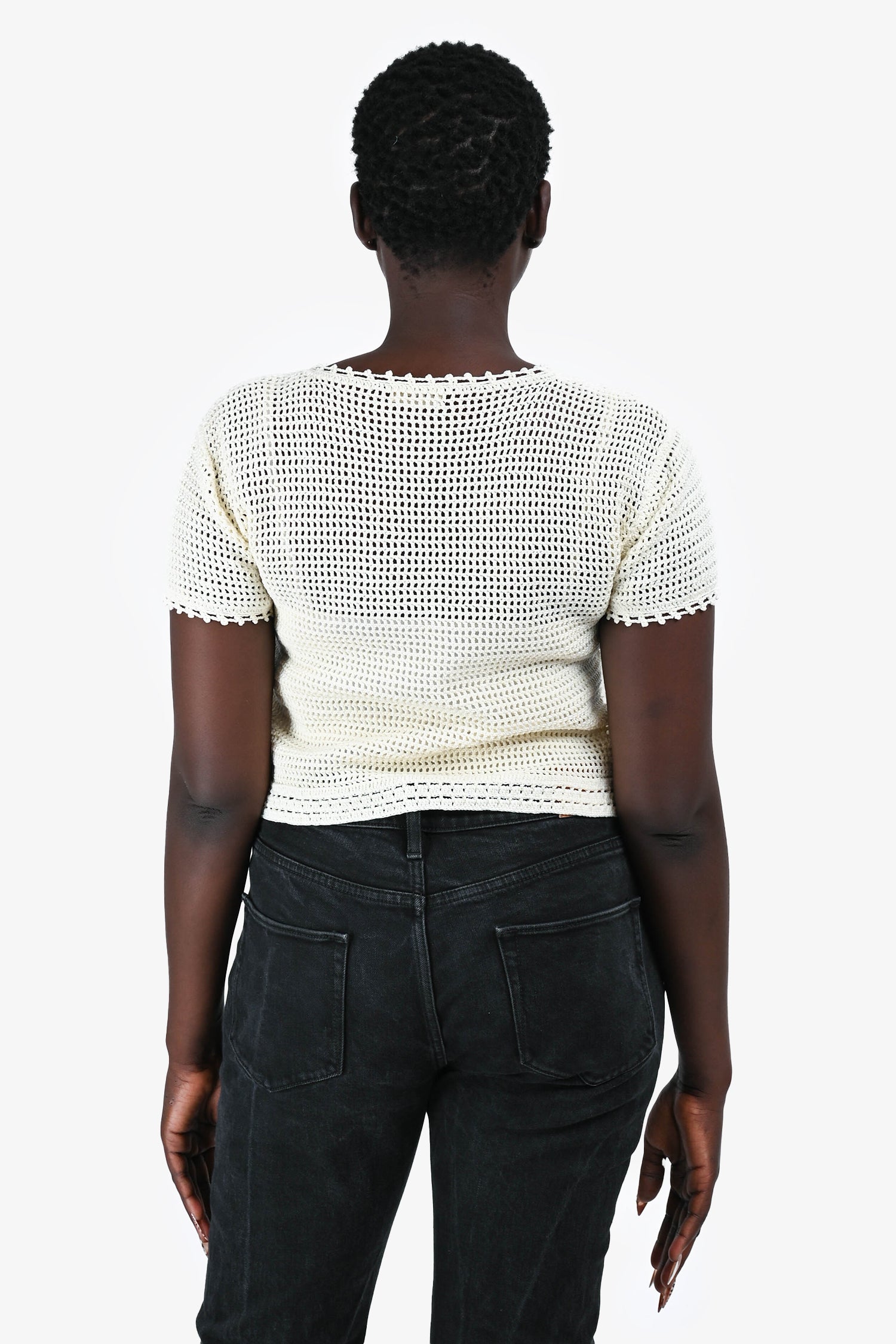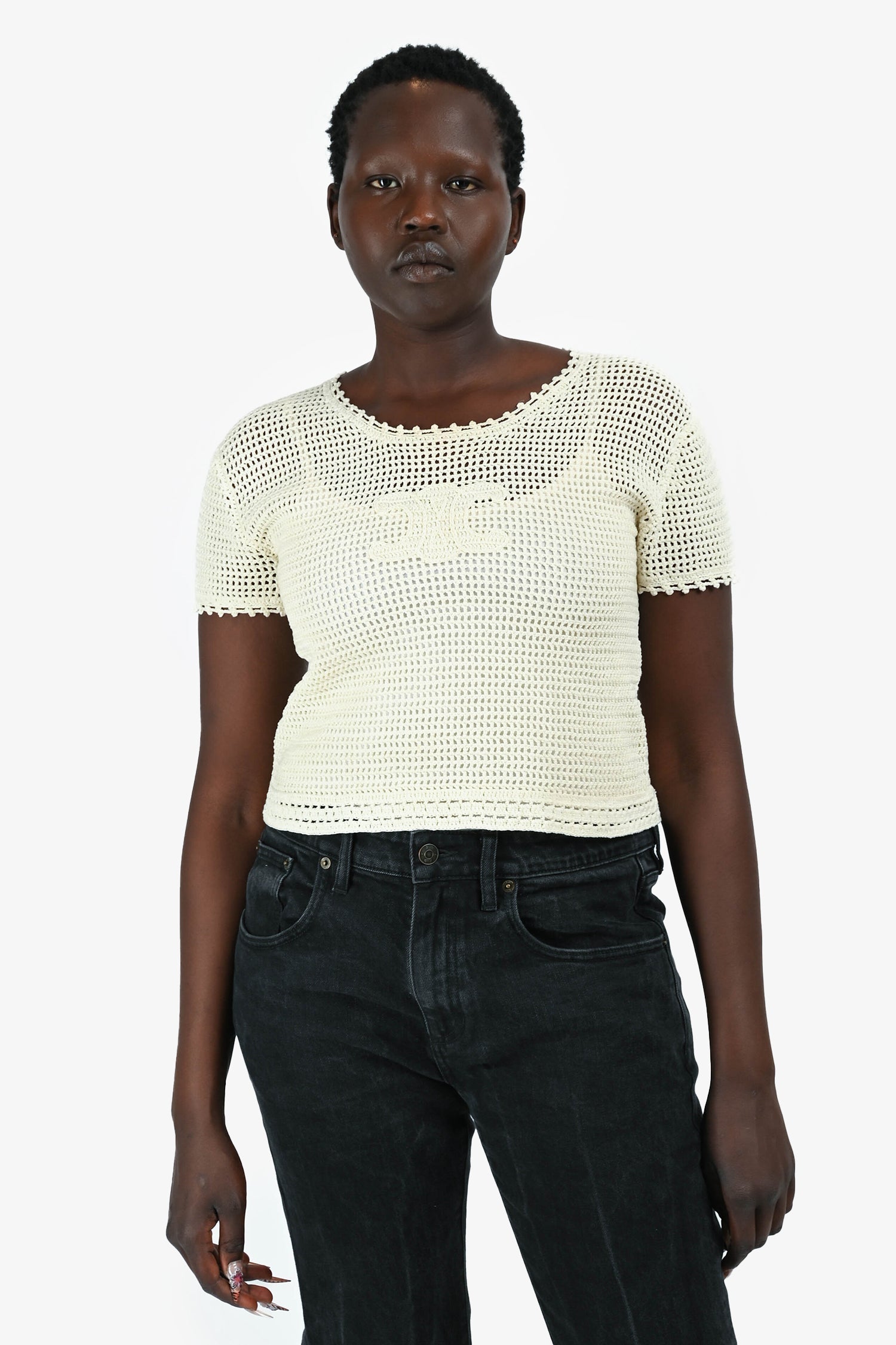 Refresh availabilityCeline Cream Logo Open Knit Top. Pull-over design. Round neck. Tonal stitching.