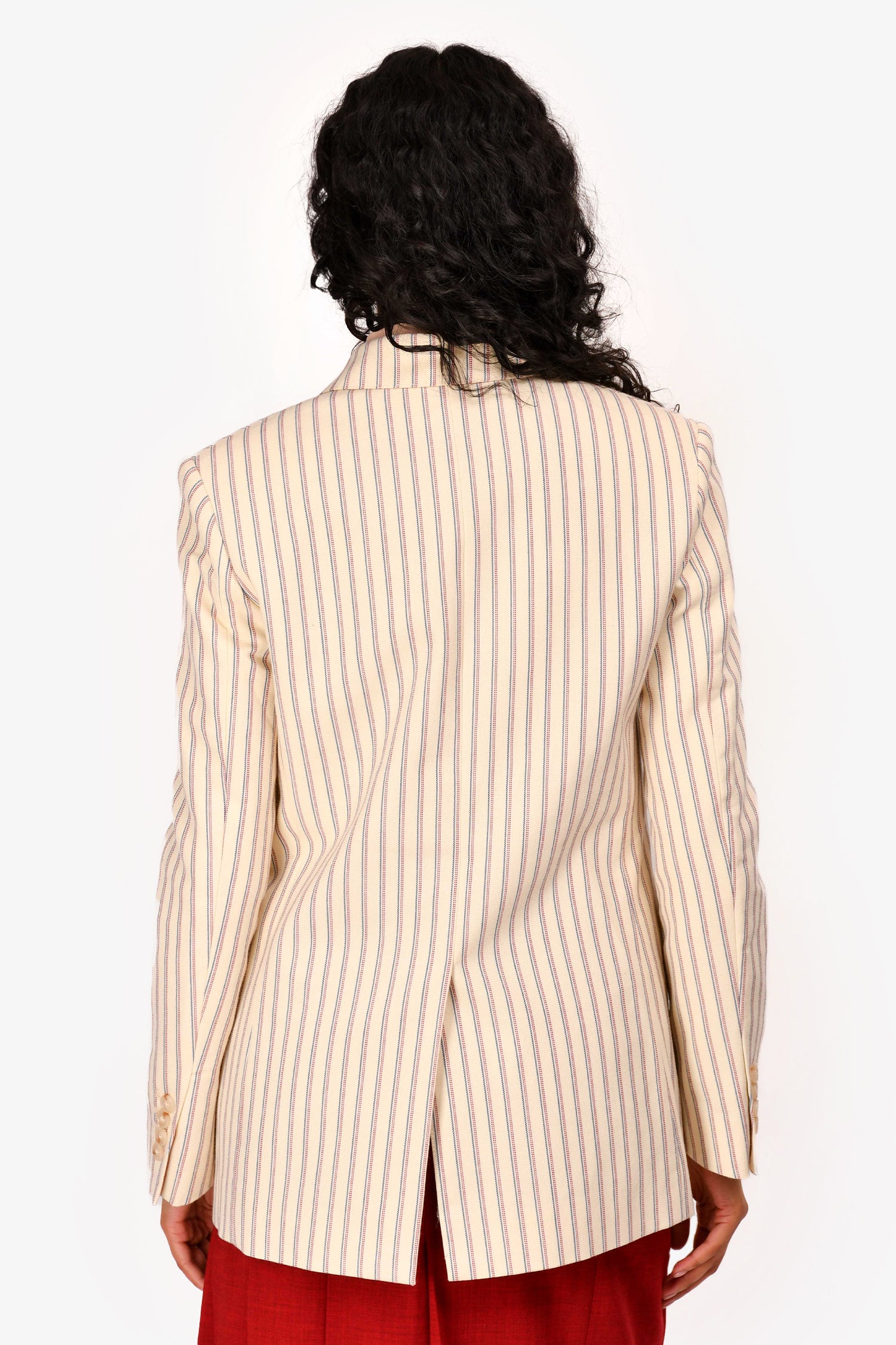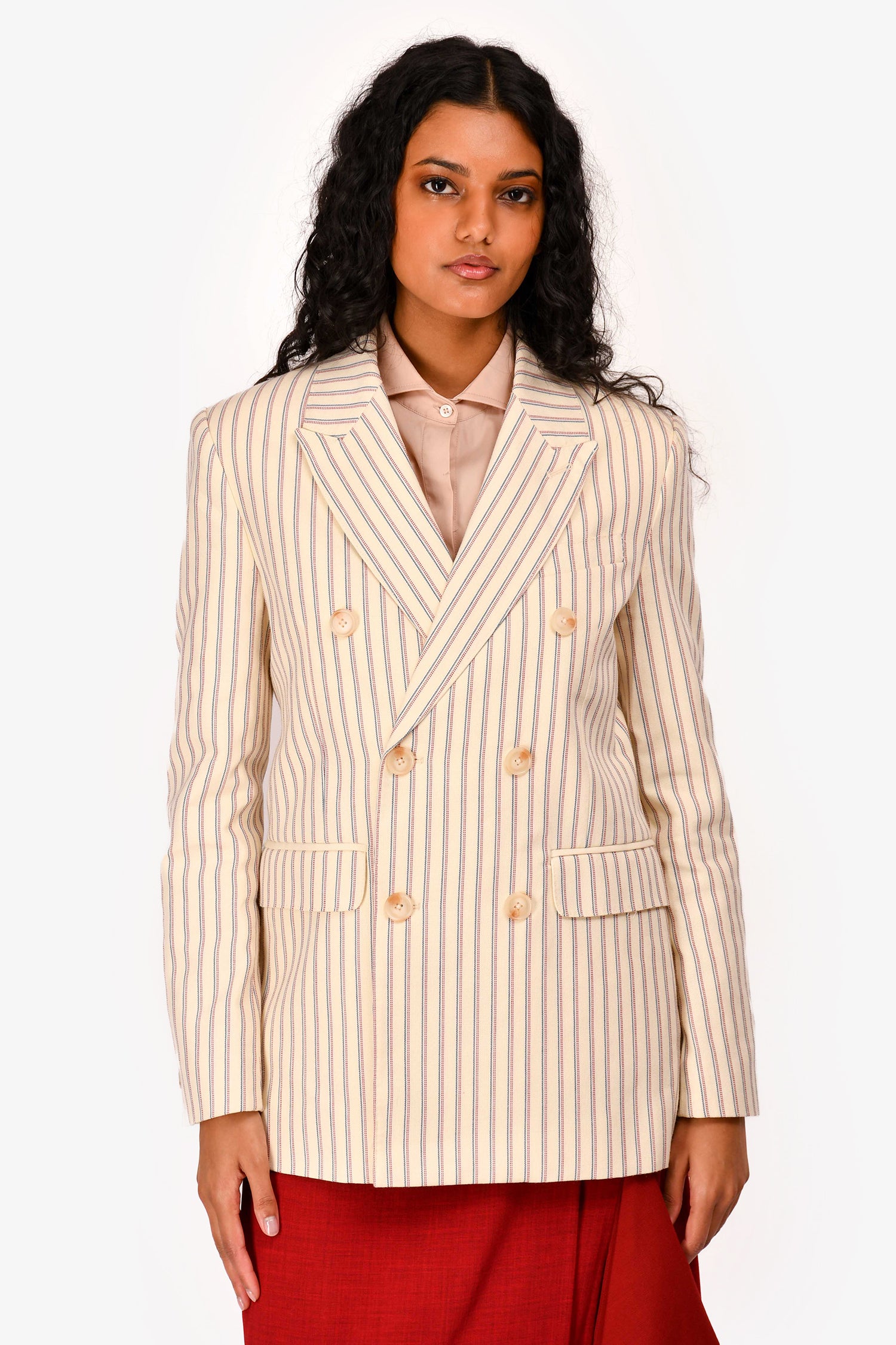 Celine Cream/Red/Blue Wool Pinstriped Double Breasted Blazer Size 38