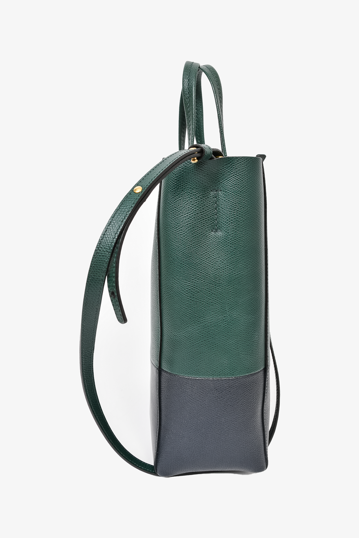 Refresh availabilityCeline Forest Green/Black Leather Cabas Vertical Tote Bag. Twin top handles. Removable adjustable strap. Open interior. Interior zip pocket. Gold tone hardware. Tonal stitching.