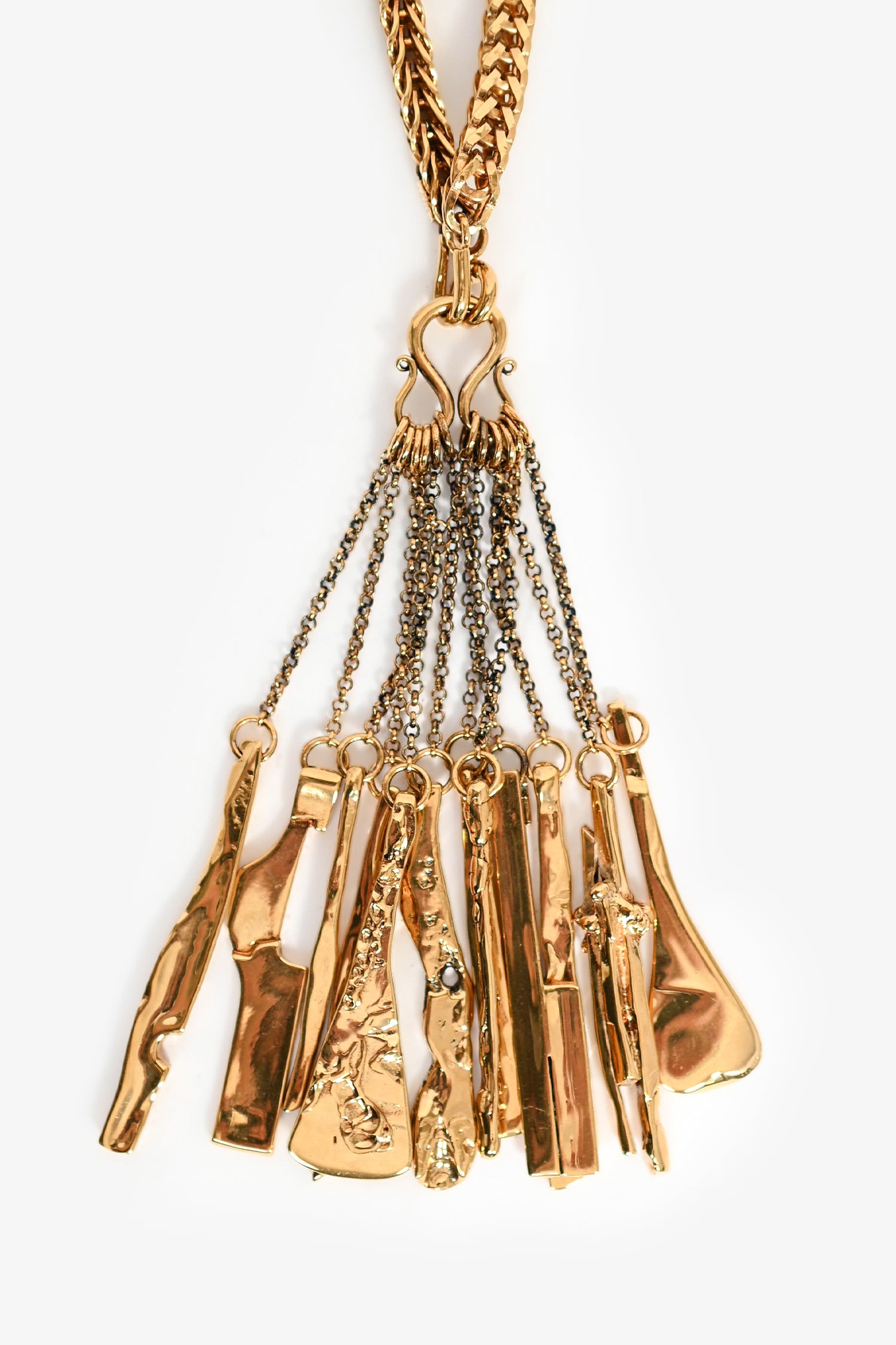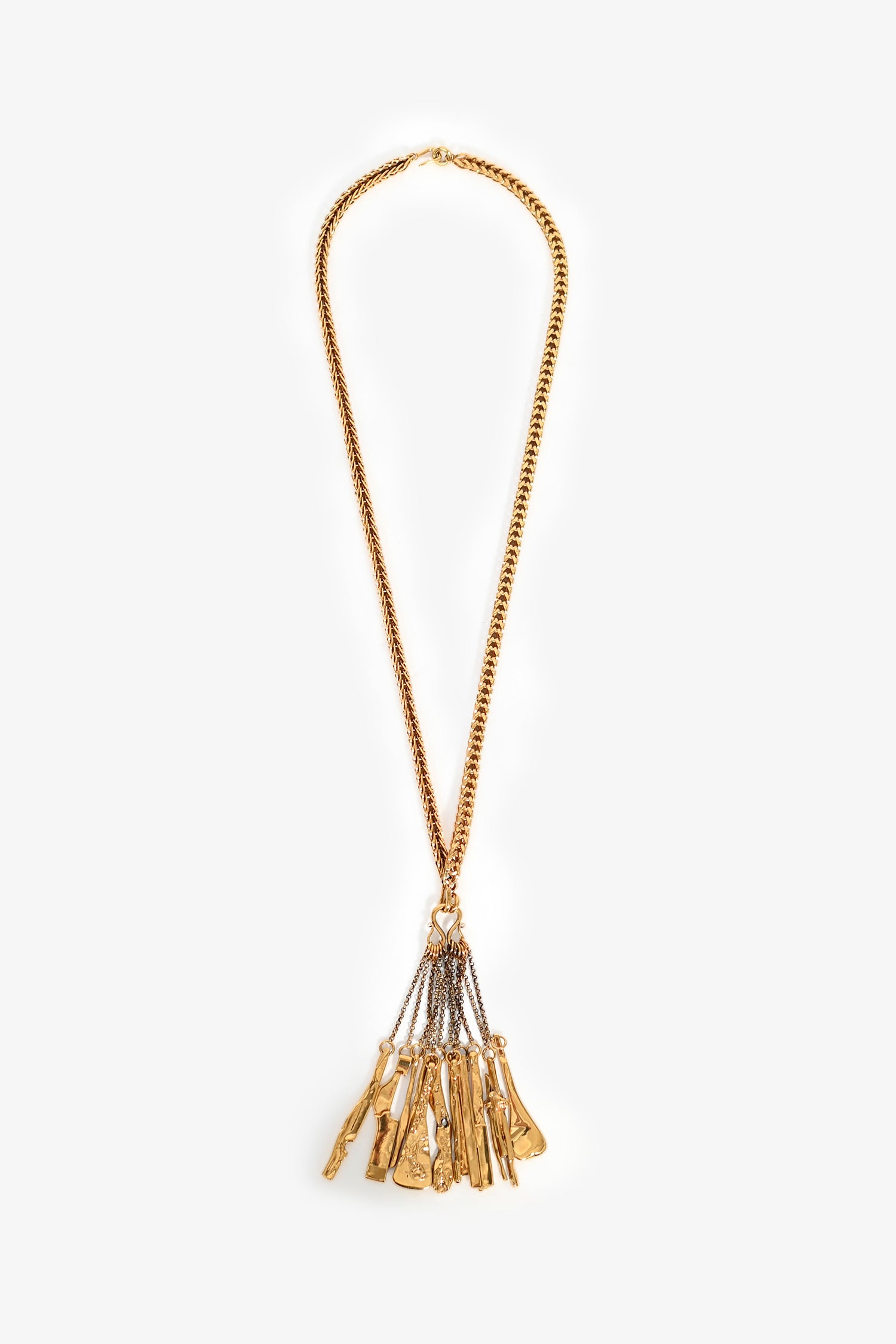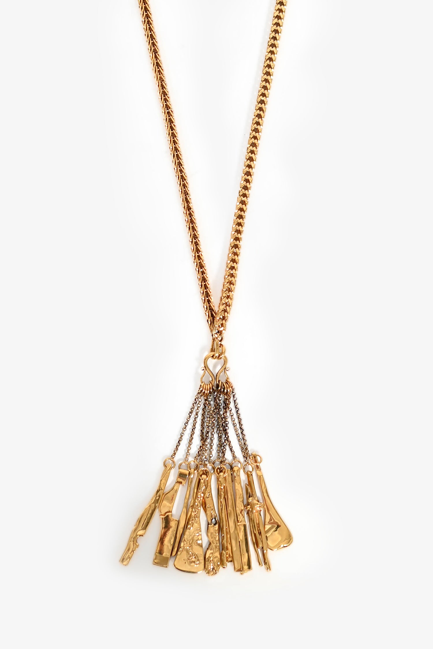 Refresh availabilityCeline Gold Tone Long Lariat Pendant Necklace. Hoop and hook closure. Detachable chains.