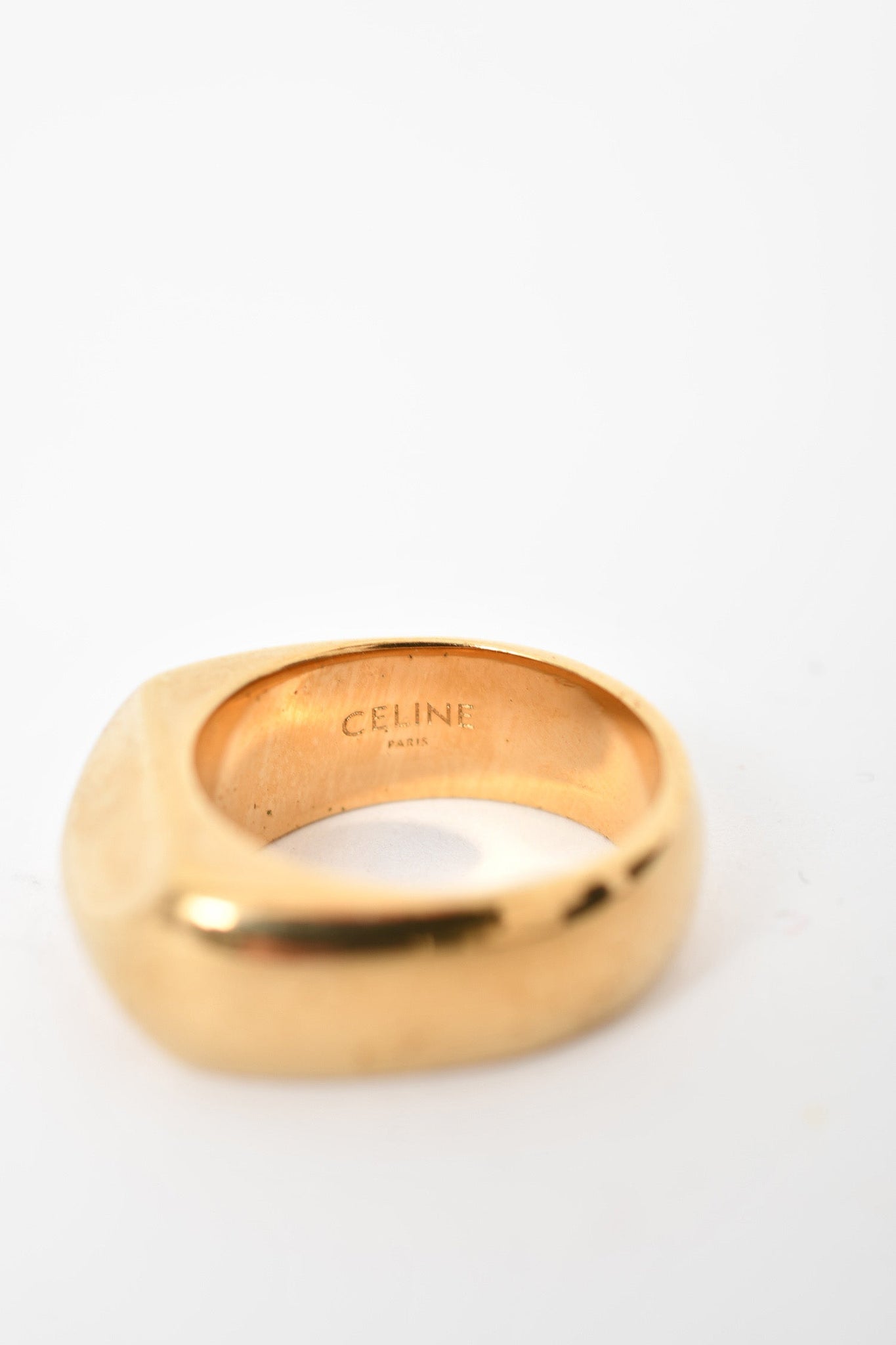 Celine Gold Toned Brass 'Chaîne Triomphe Large Diamanté' Ring Size 50