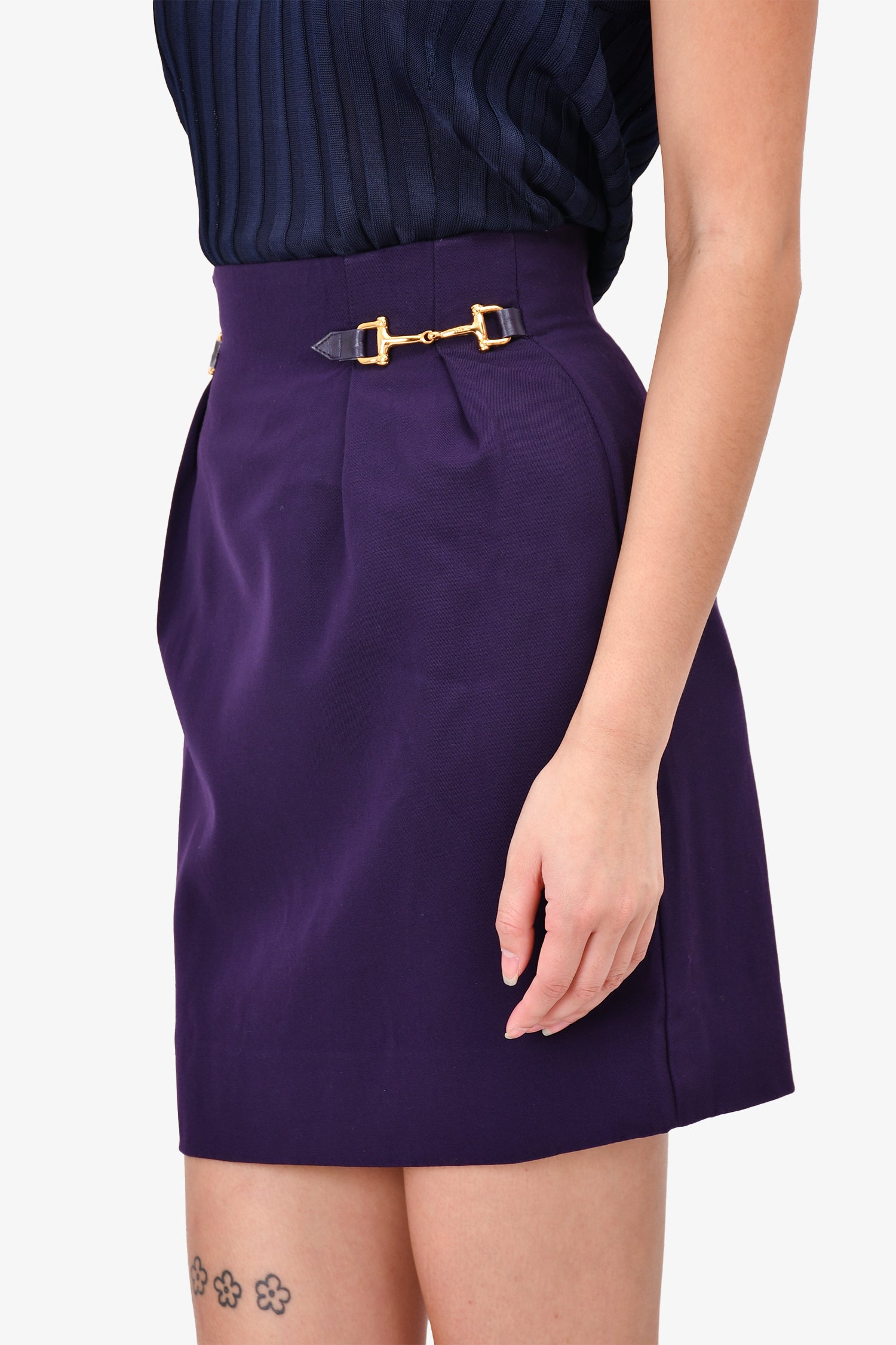 Celine Purple Wool Buckle Detailed Mini Skirt Size 36
