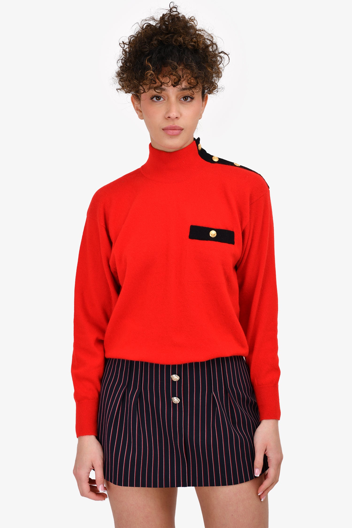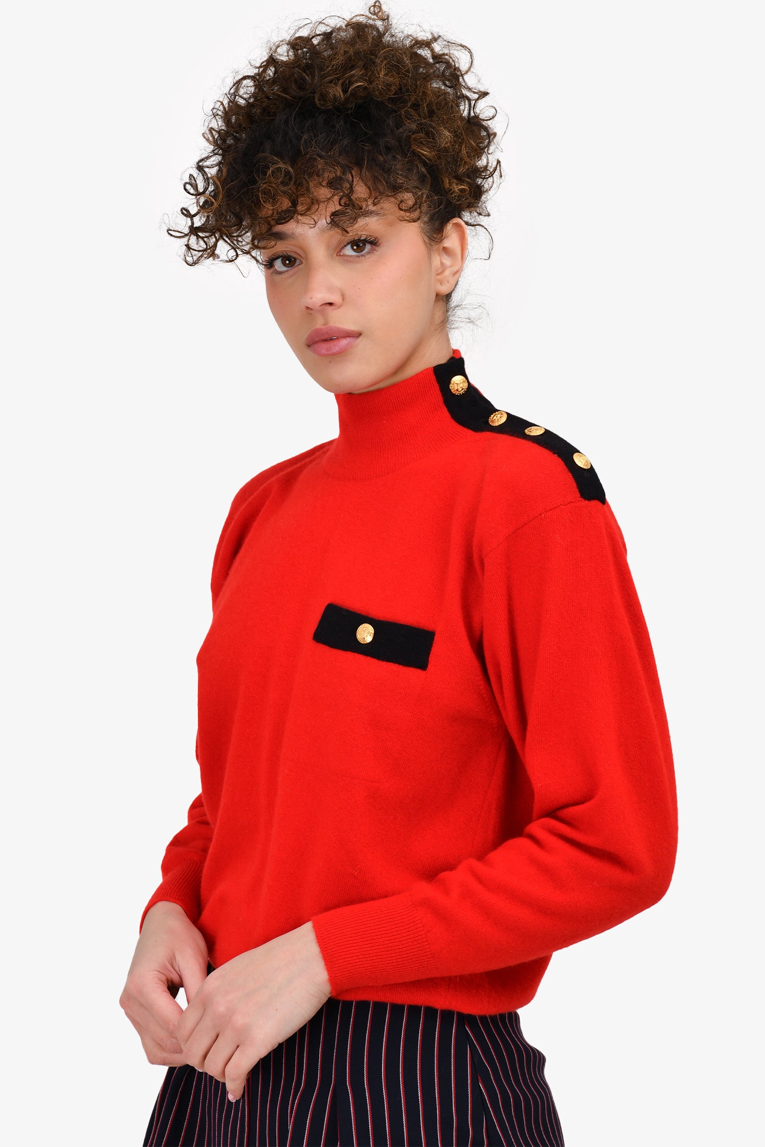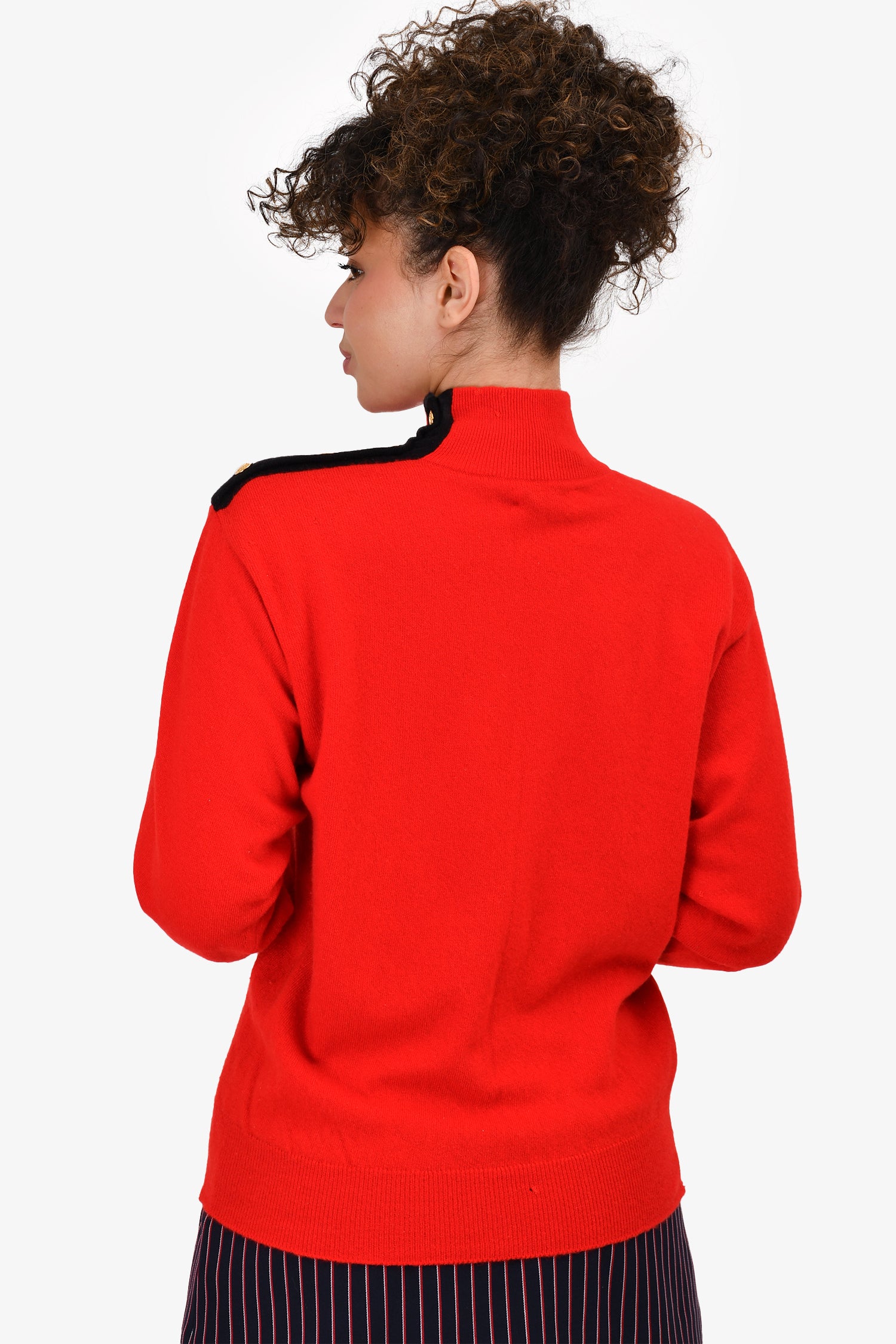 Refresh availabilityCeline Red/Black Gold Button Detailed Sweater. Pull-on. Button closure on the left shoulder. Ribbed neck, cuffs and hem.
