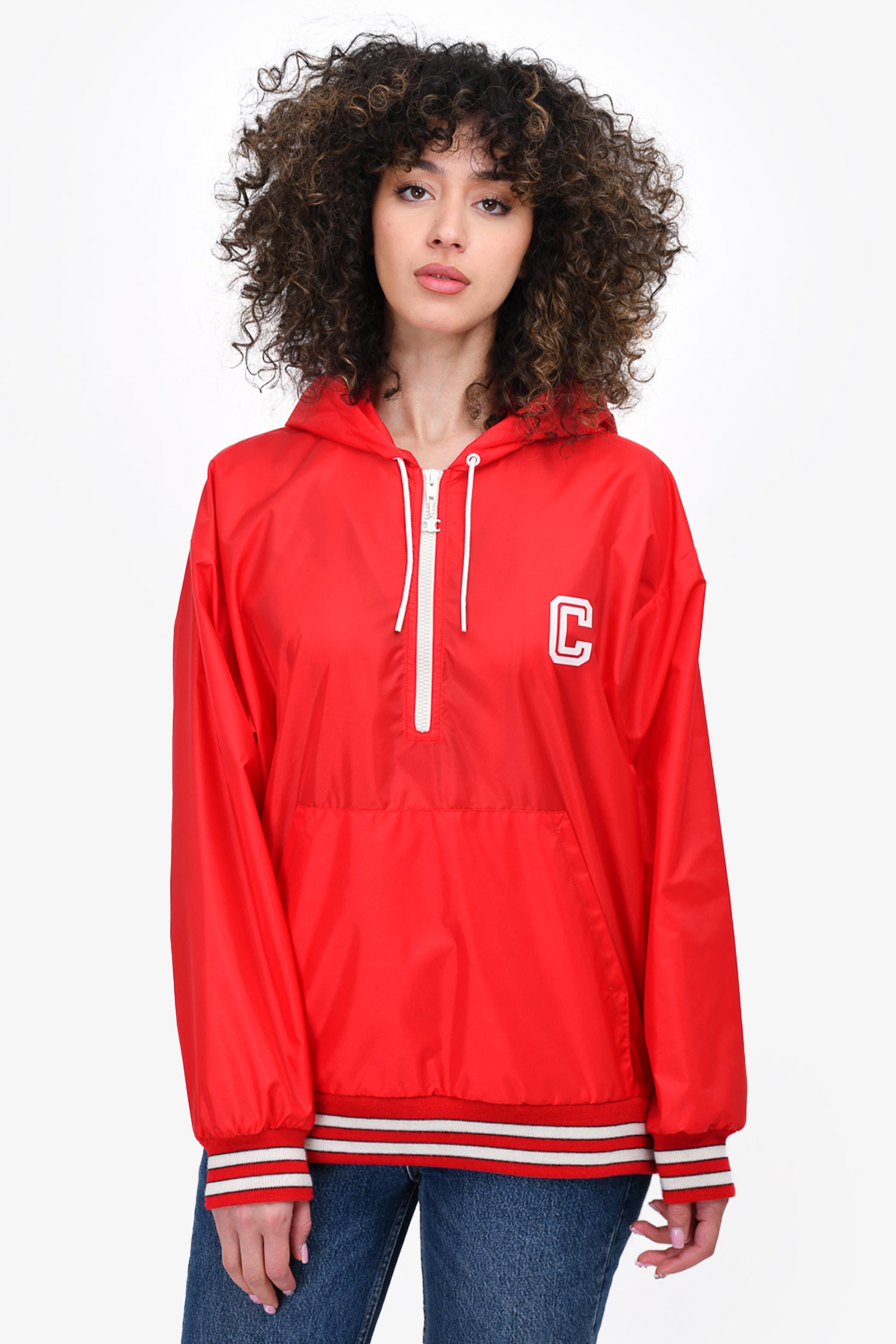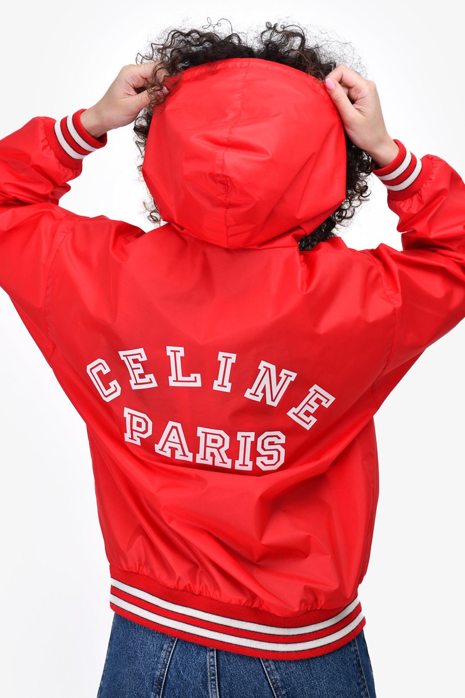 Refresh availabilityCeline Red Nylon Quarter Zip 'Celine Paris' Logo Windbreaker. Front pockets. Ribbed cuffs and hem.