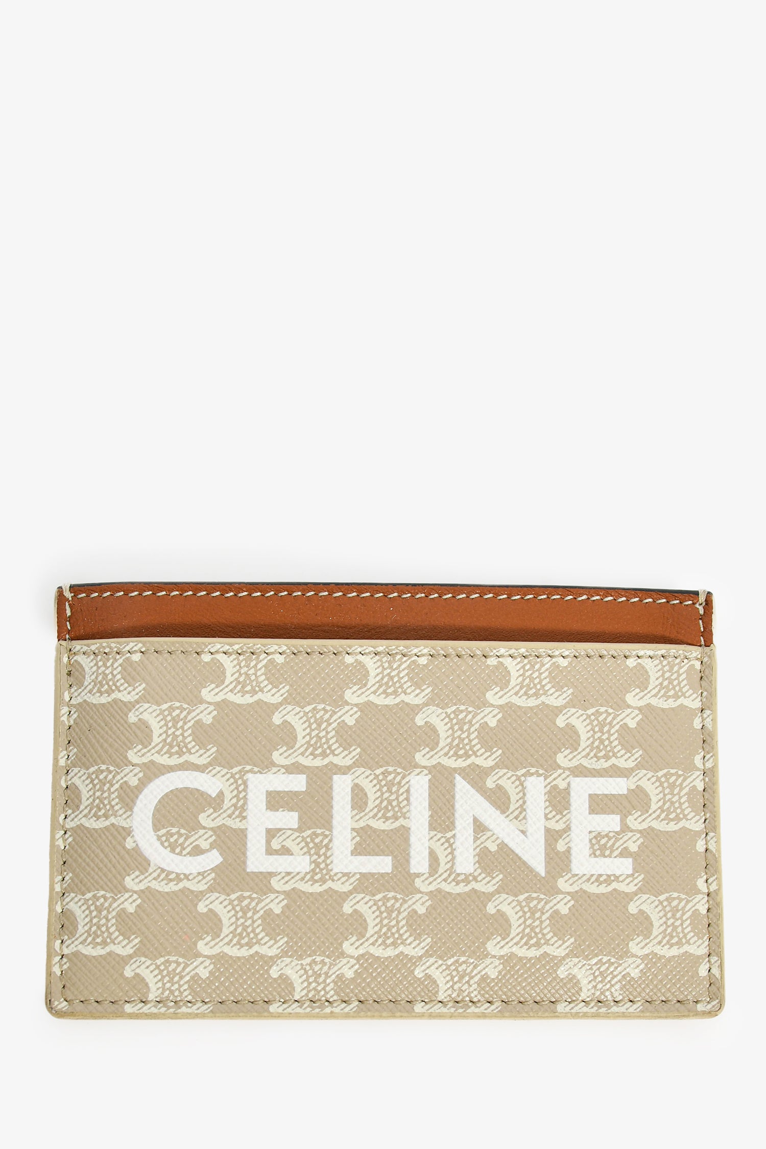 Refresh availabilityCeline Tan/Beige Triomphe Logo Card Holder. Three card slots.