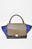 Celine Taupe Grained Leather/Blue Suede Large Trapeze Top Handle Bag