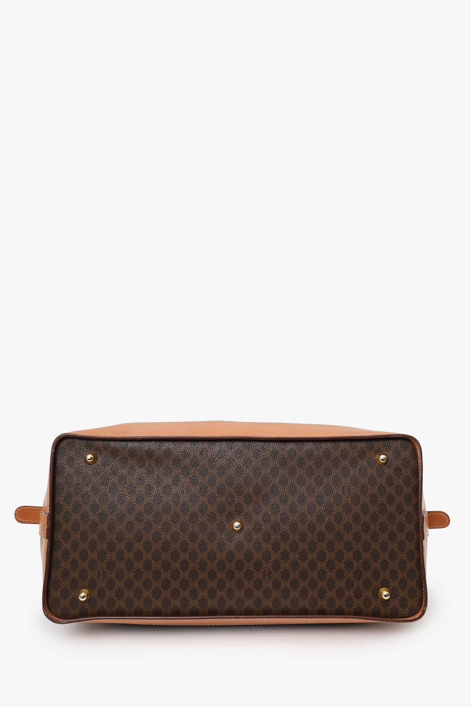 Celine Vintage Brown Macadam Canvas Large Zip Travel Bag