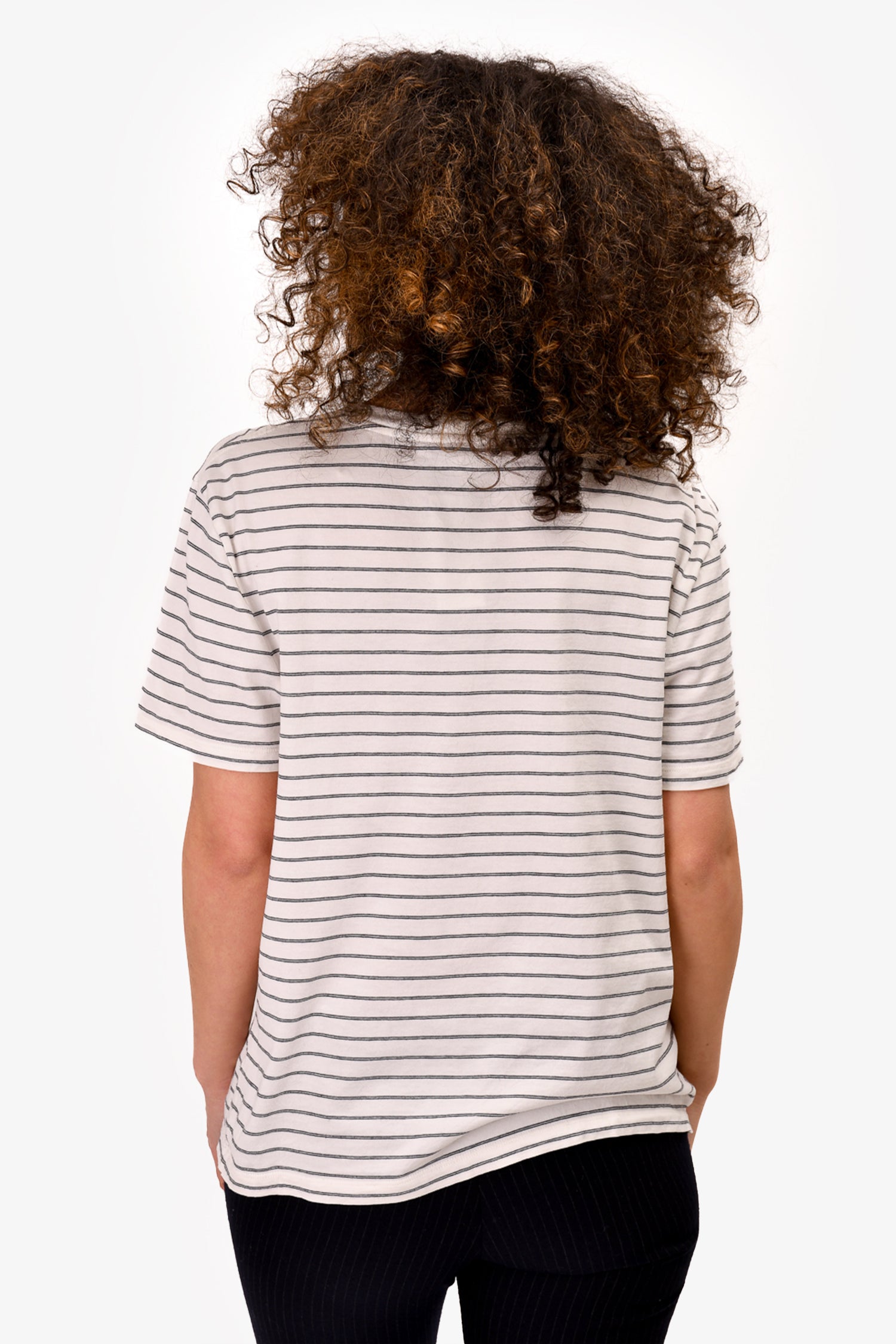 Celine White Striped Triomphe Logo T-Shirt Size L
