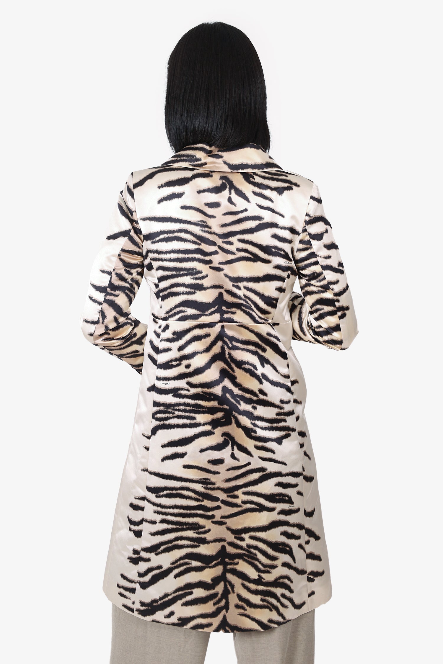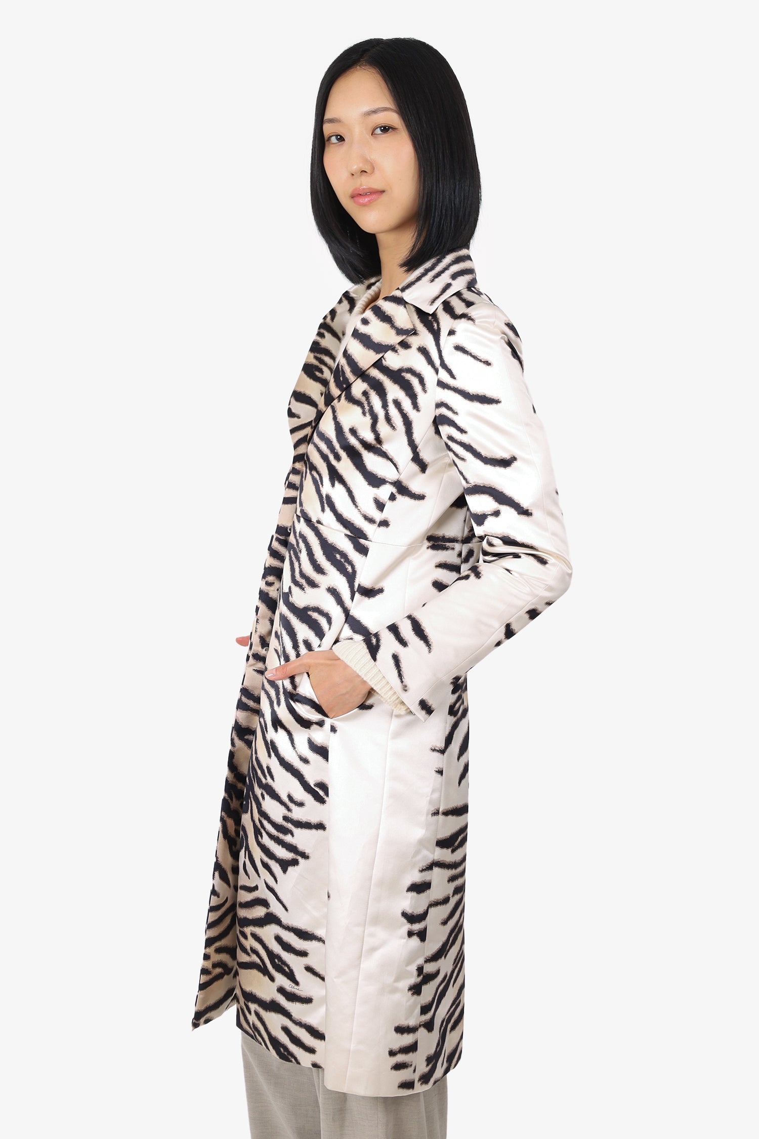 Celine White/Black Silk Zebra Printed Single Breasted Coat Size 38