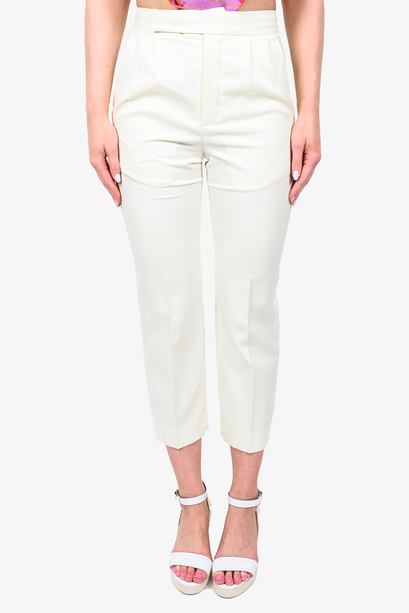 Refresh availabilityCeline Cream Cotton Trousers. Front zip, button and hook closure. Front pockets. Tonal stitching.