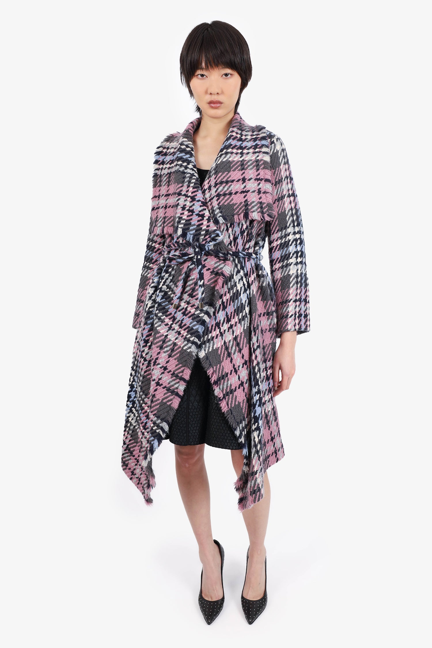 Refresh availabilityCH Carolina Herrera Pink/Black Wool Plaid Belted Coat. Shawl lapel. Pull-through tie-up closure around waist. 2 front slip pockets. Unlined. Tonal stitching.