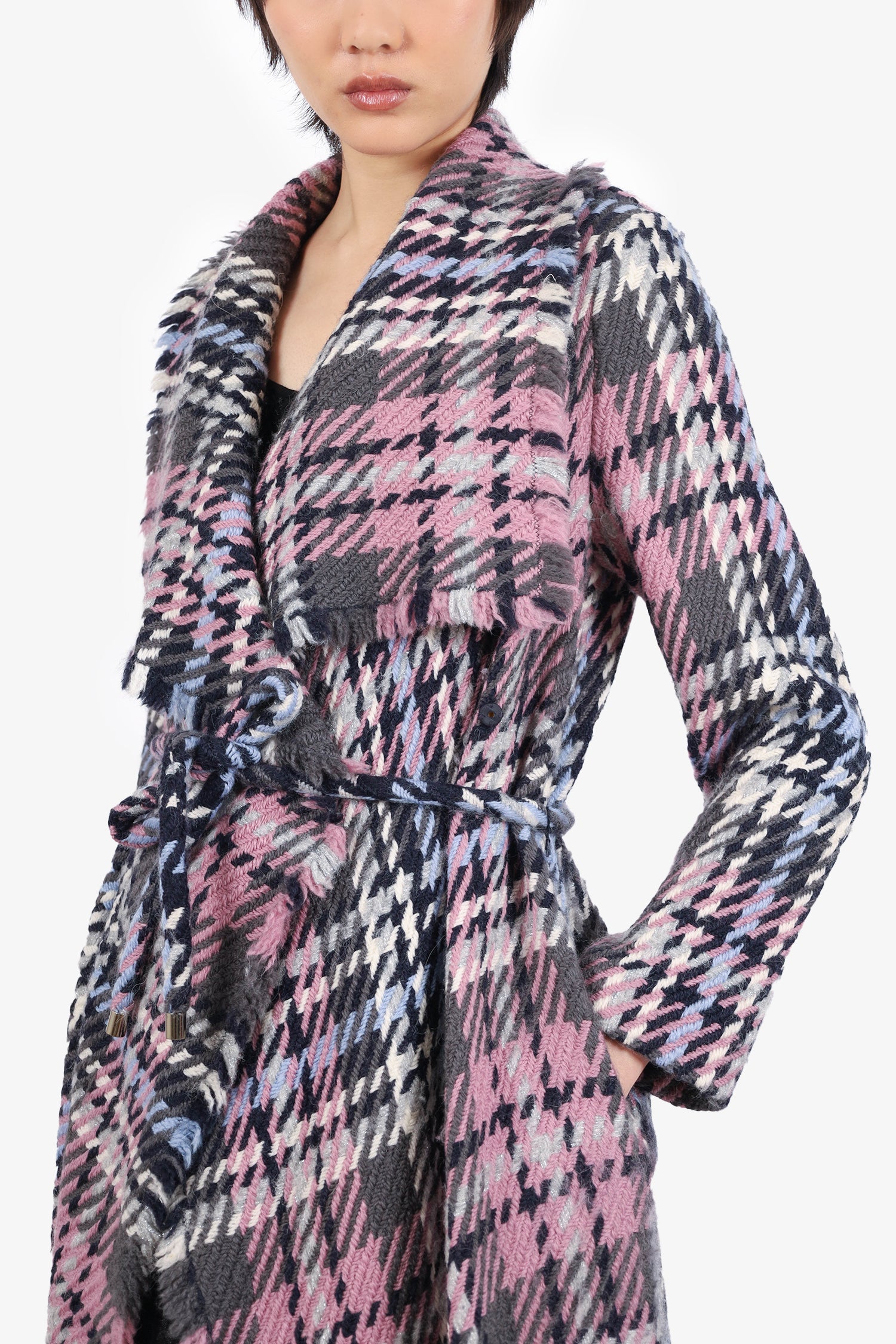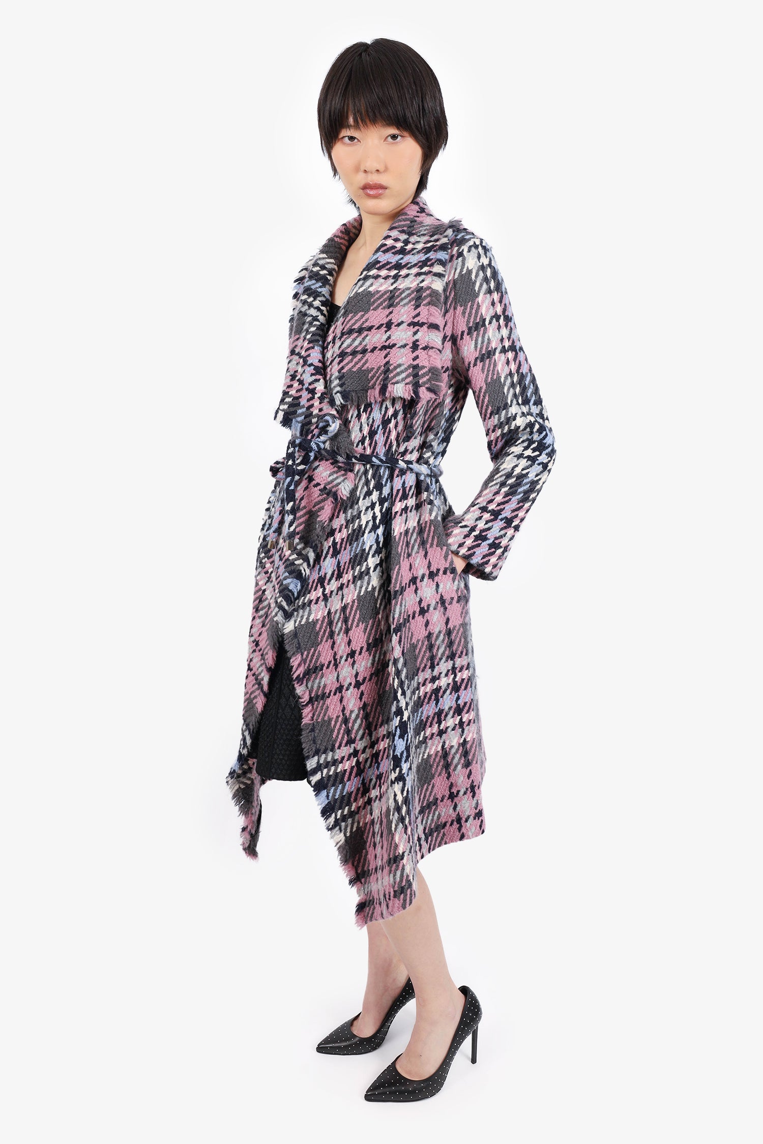 CH Carolina Herrera Pink/Black Wool Plaid Belted Coat Size XS 'As is'