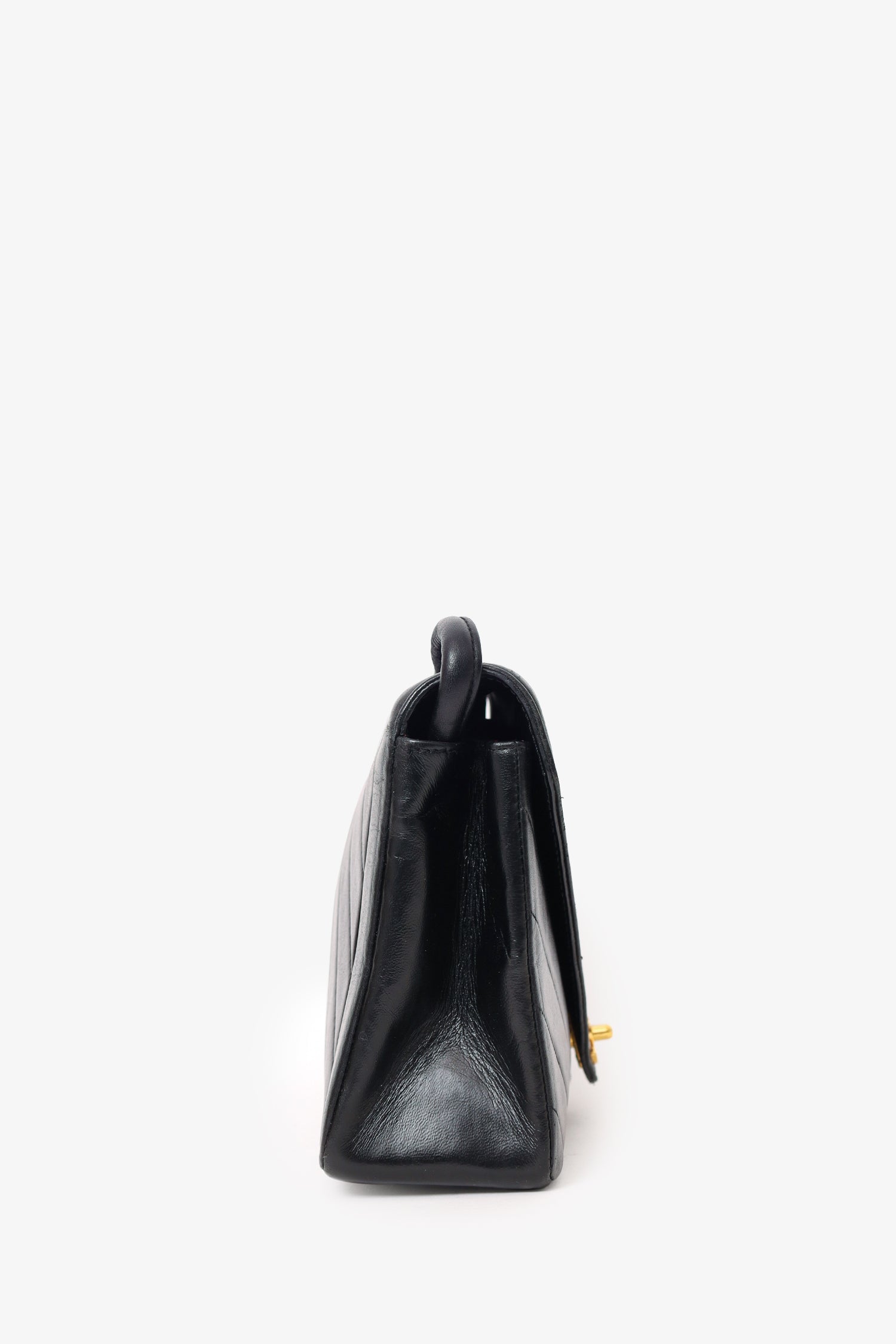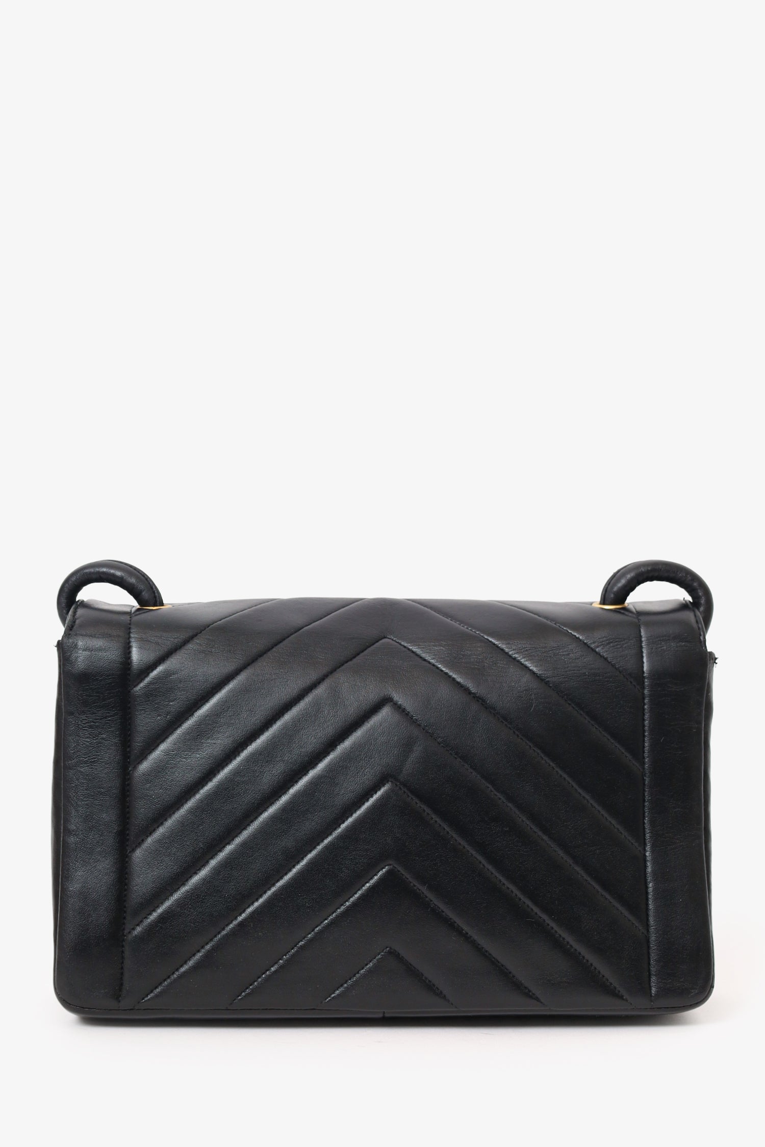 Pre-Loved Chanel™ 1991-94 Black Chevron Leather Medium Envelope Flap Bag (Refurbished)