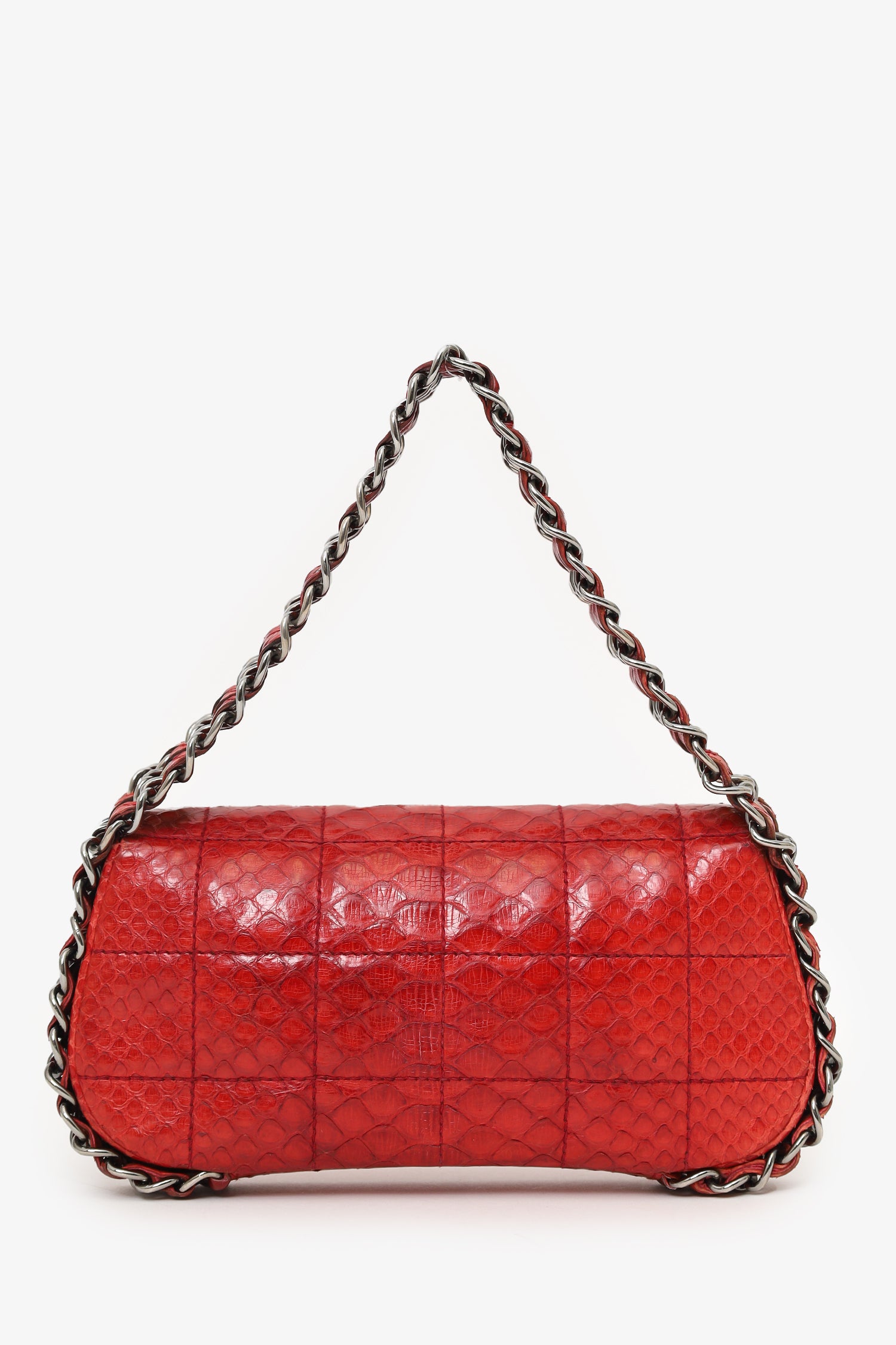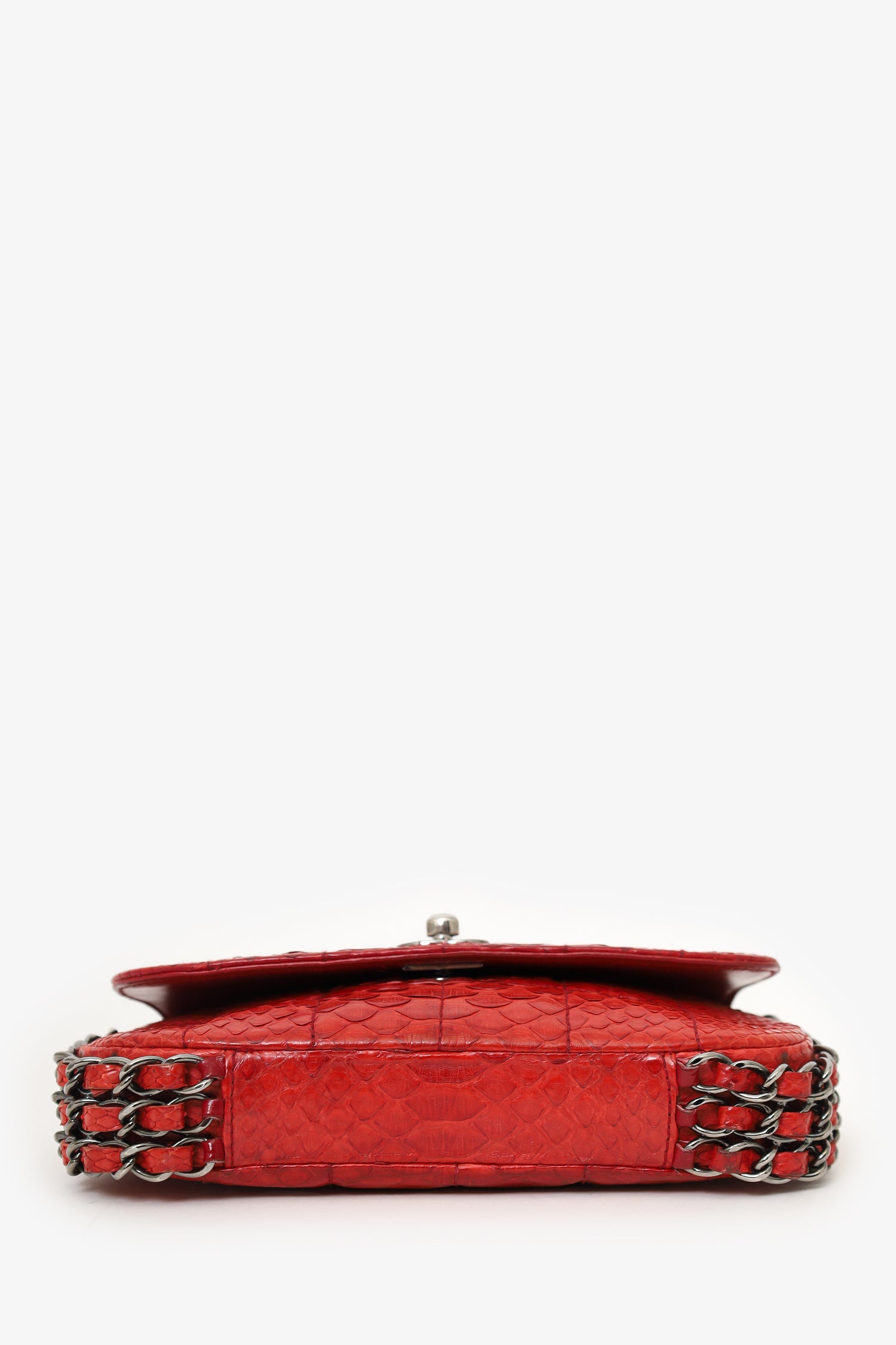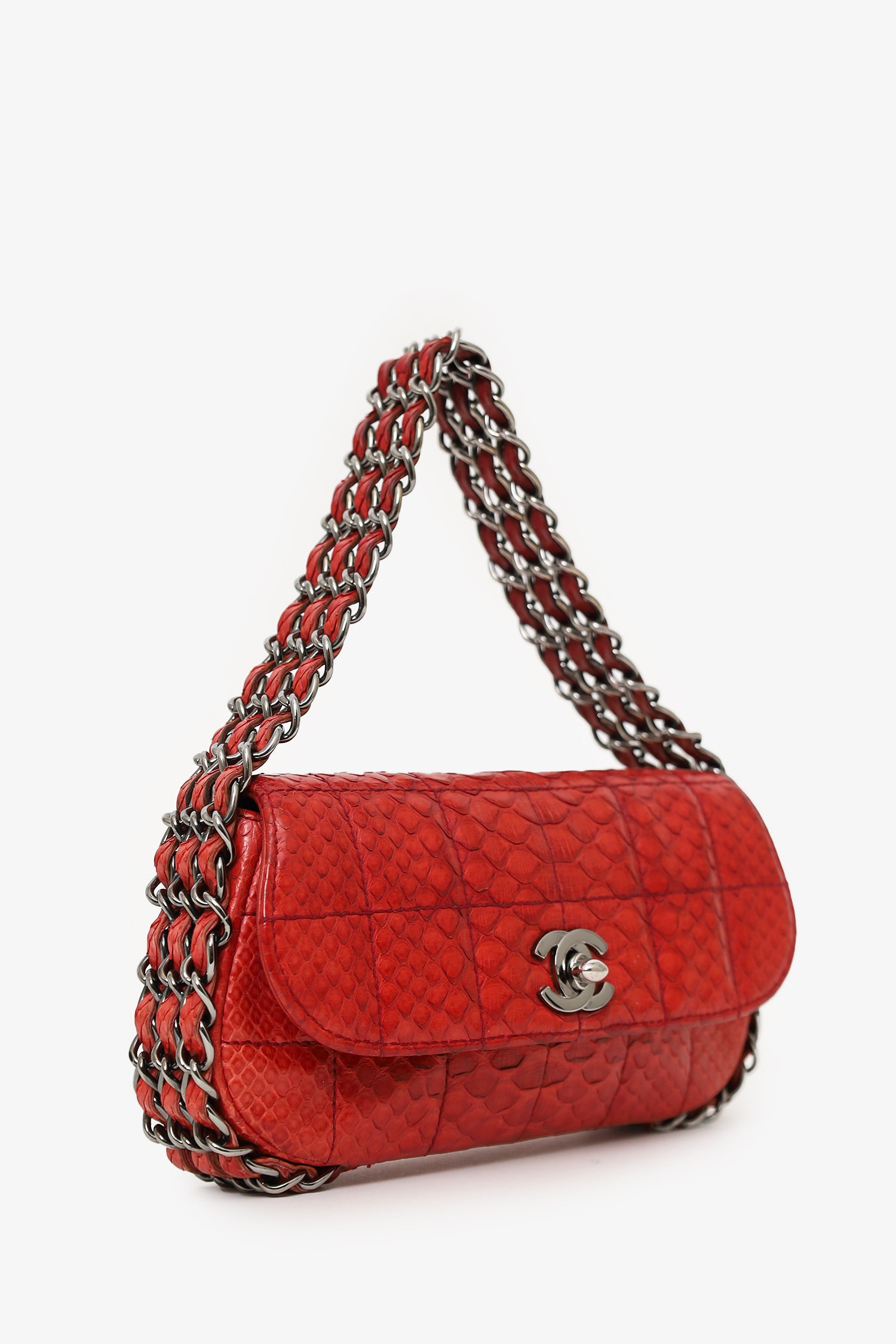 Pre-Loved Chanel™ 2004-05 Red Python Leather Tripe Chain CC Mini Flap Bag