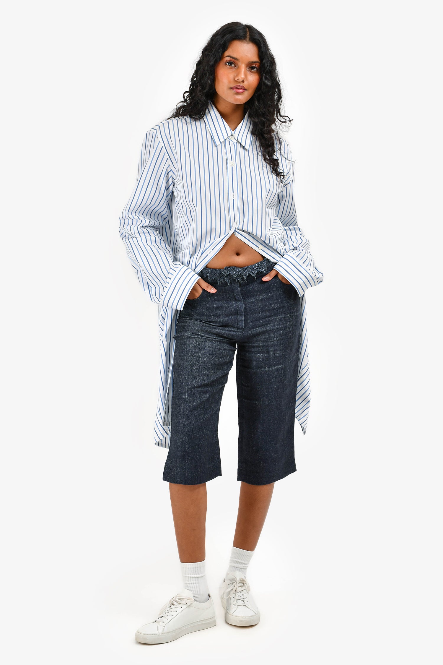 Pre-Loved Chanel™ 2004 Blue Linen Perforated Detail Bermuda Shorts Size 36