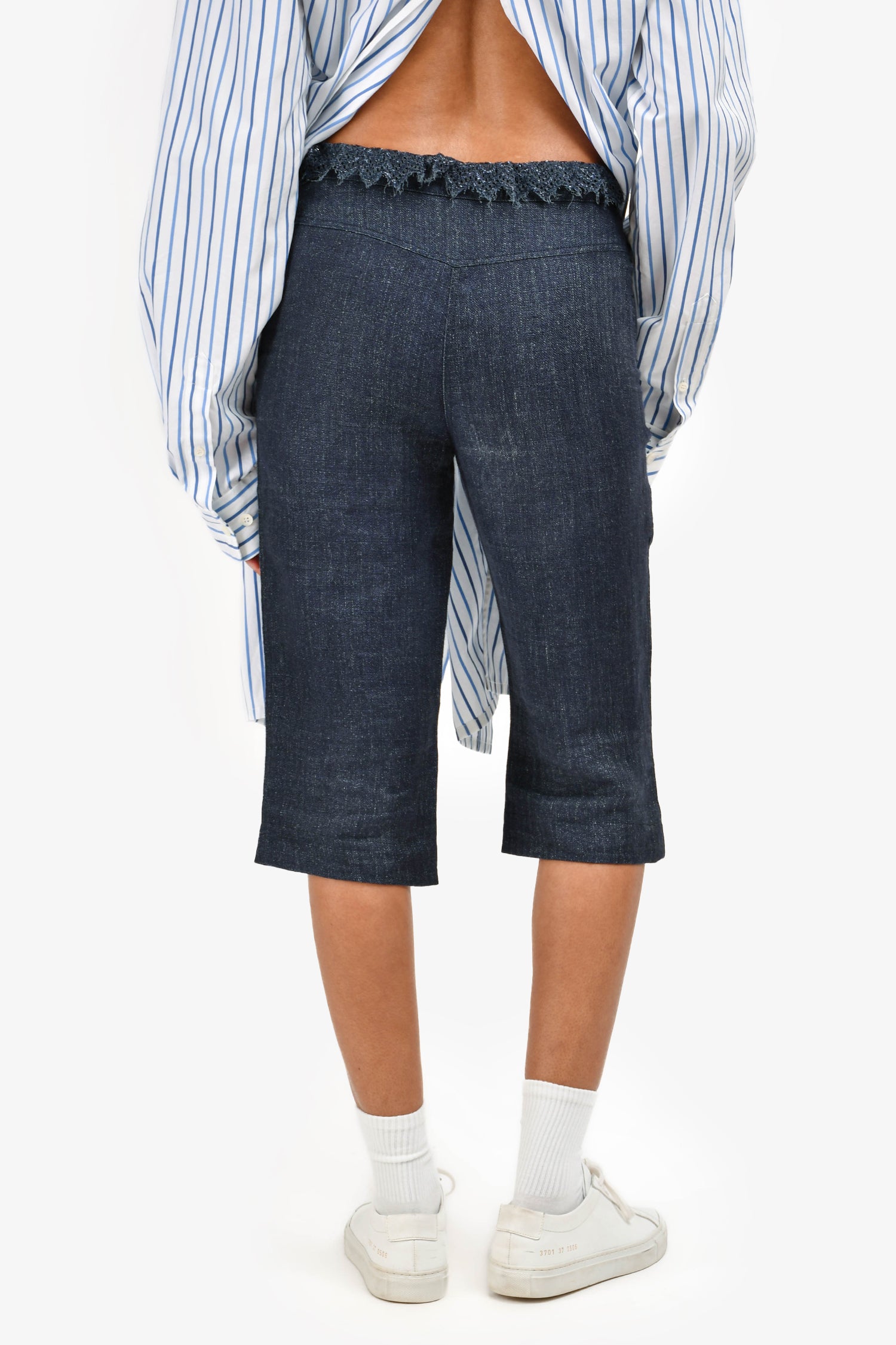 Refresh availabilityPre-Loved Chanel™ 2004 Blue Linen Perforated Detail Bermuda Shorts. Zip fly with button closure. Three front slip pockets. Tonal stitching.