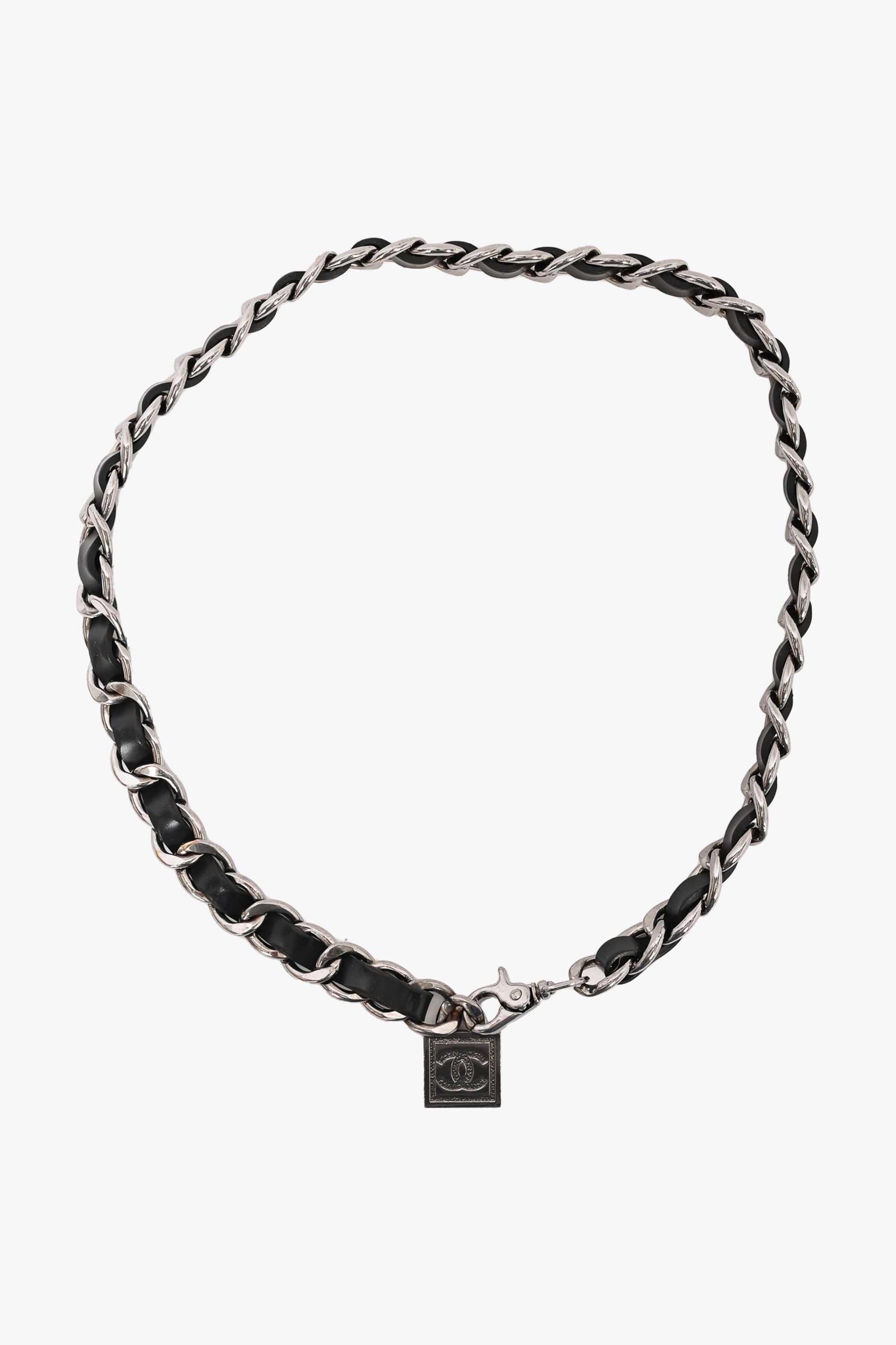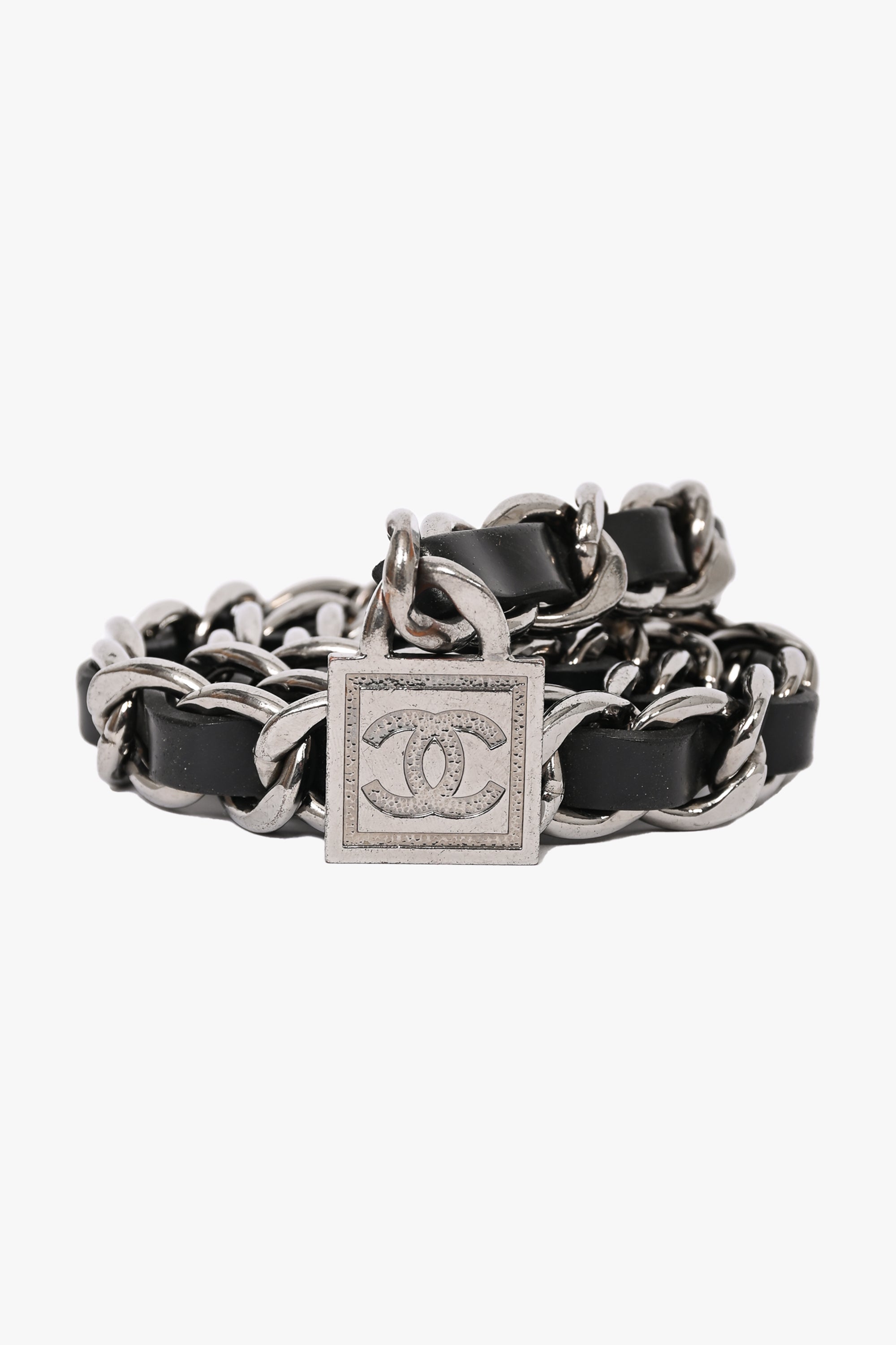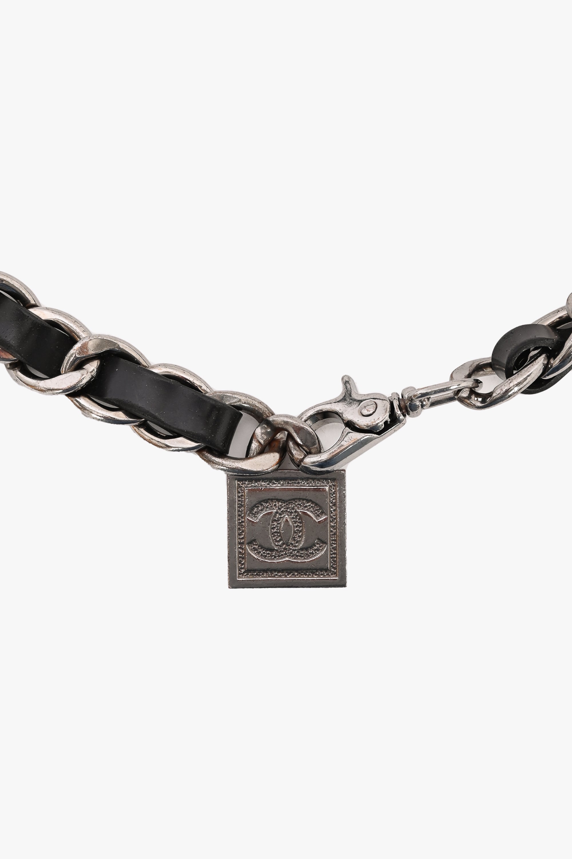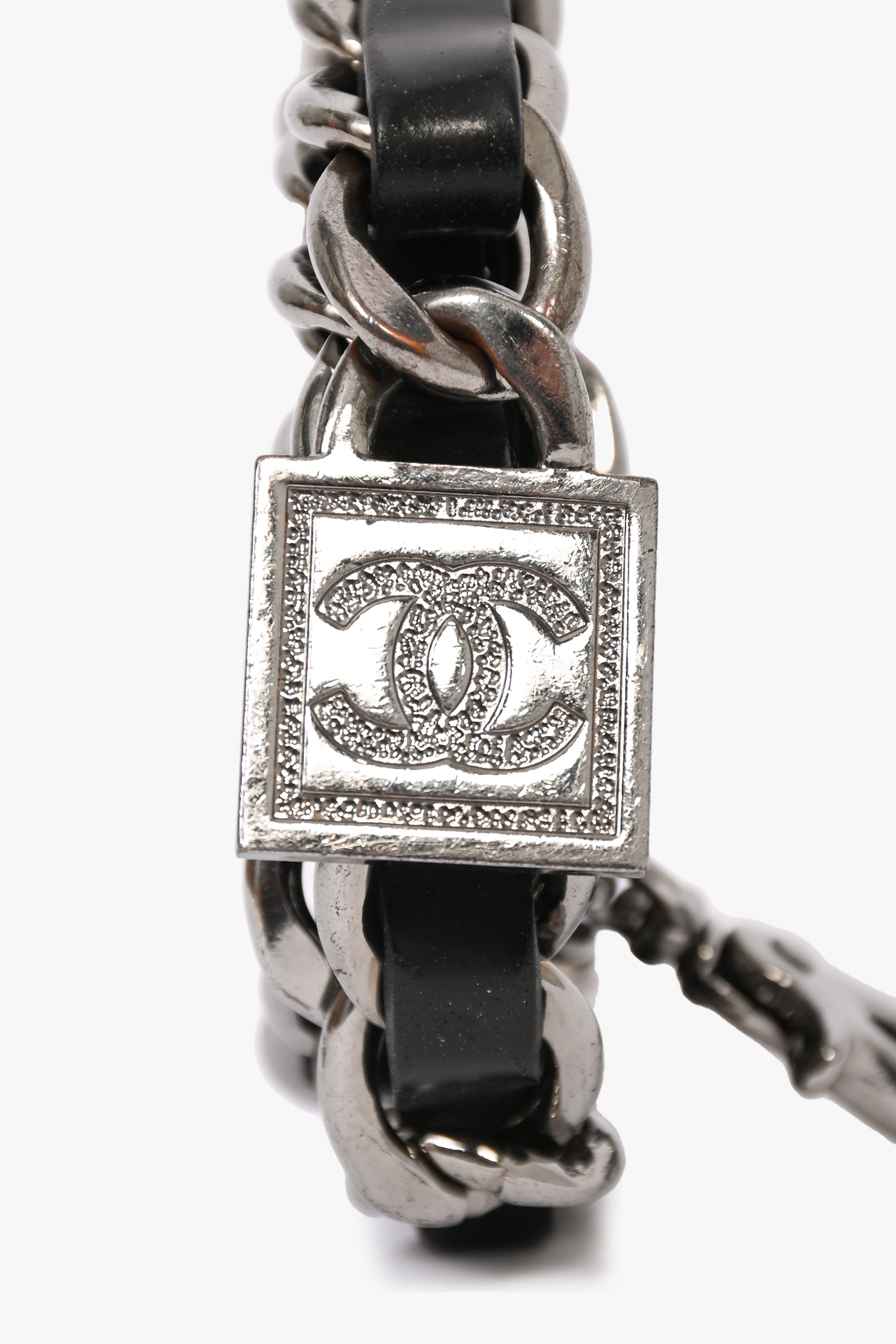Pre-Loved Chanel™ 2004 Silver Toned Black Leather Chain CC Belt