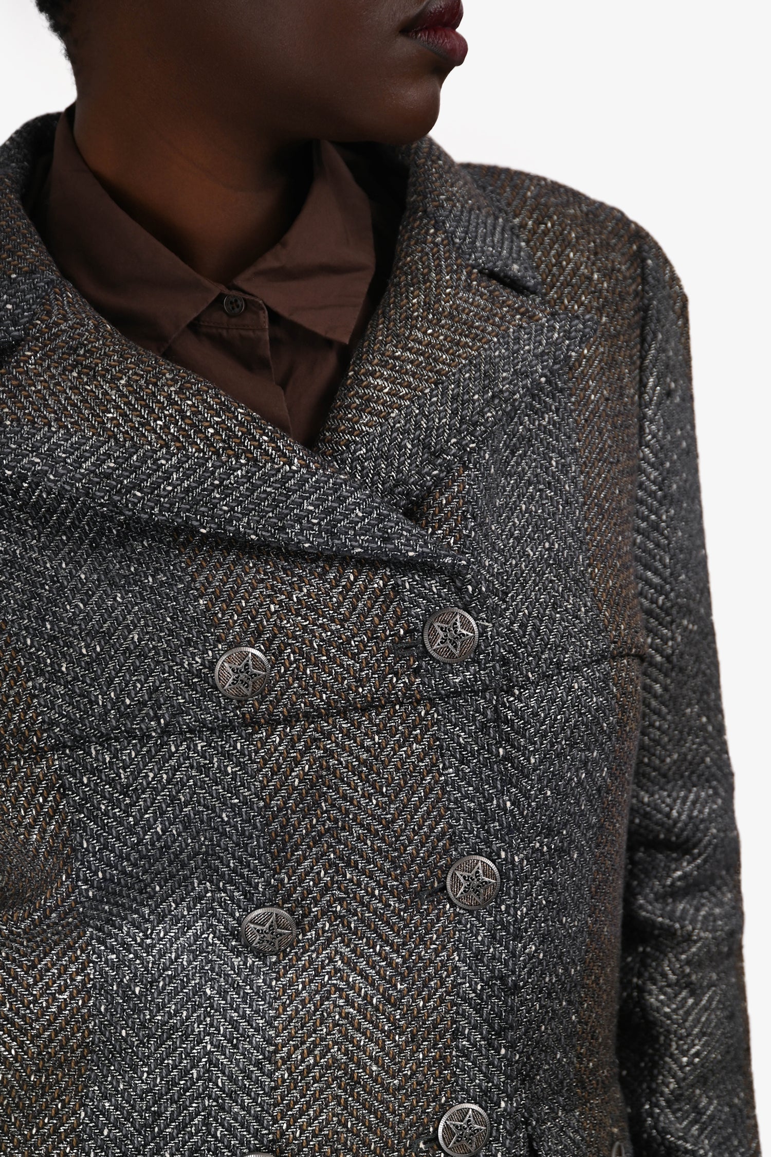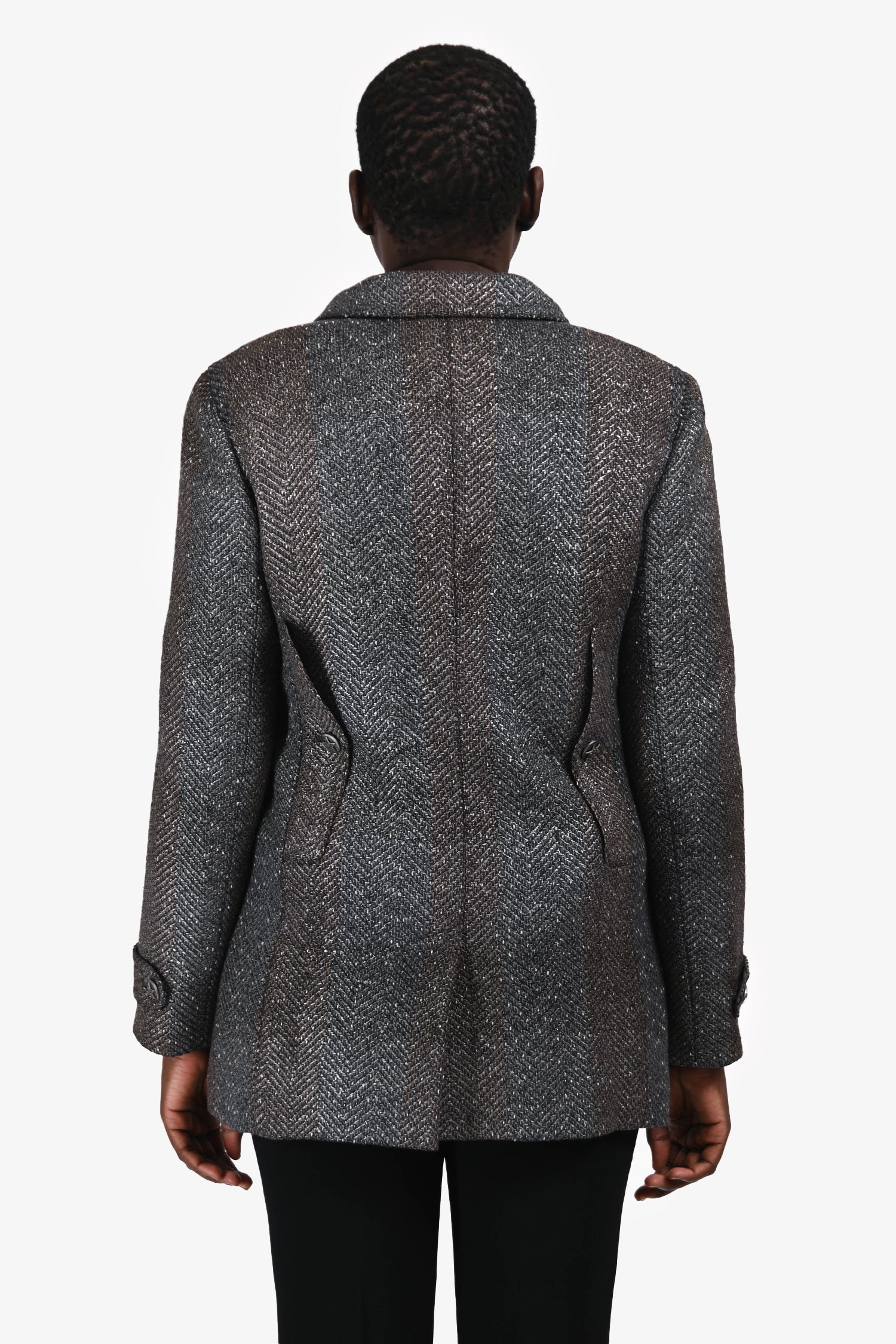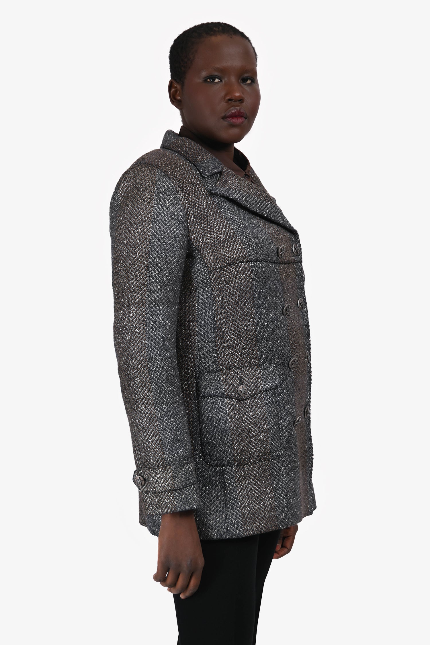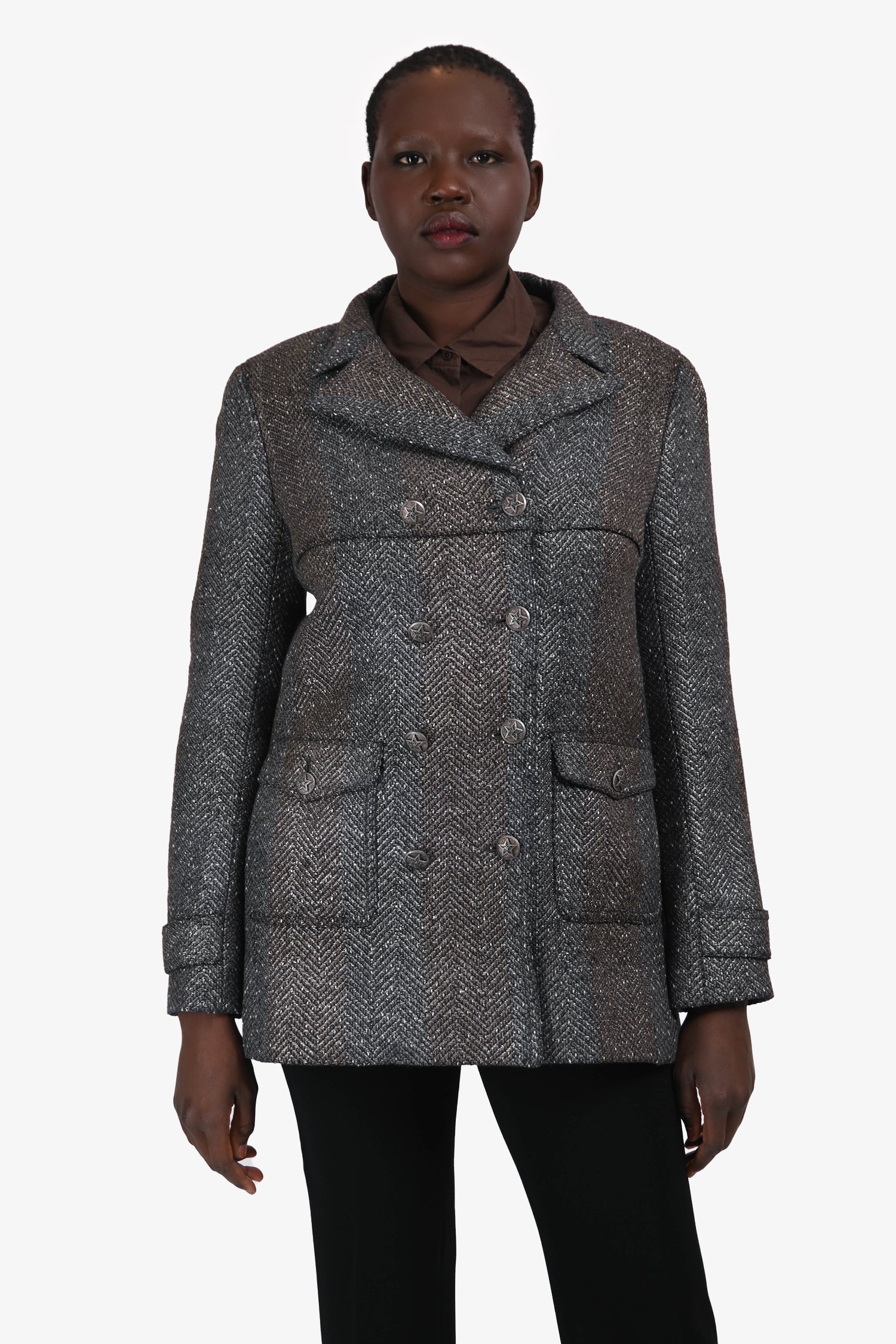 Pre-Loved Chanel™ 2007 Metallic Grey Wool Herringbone Double Breasted Jacket Size 44