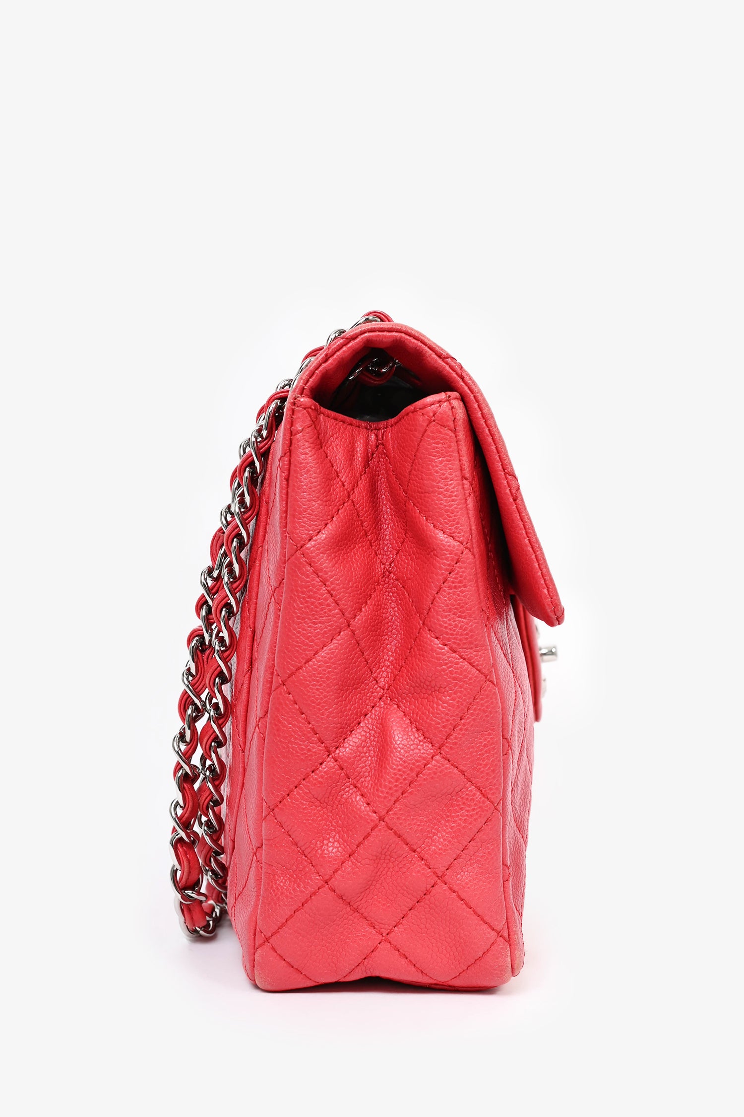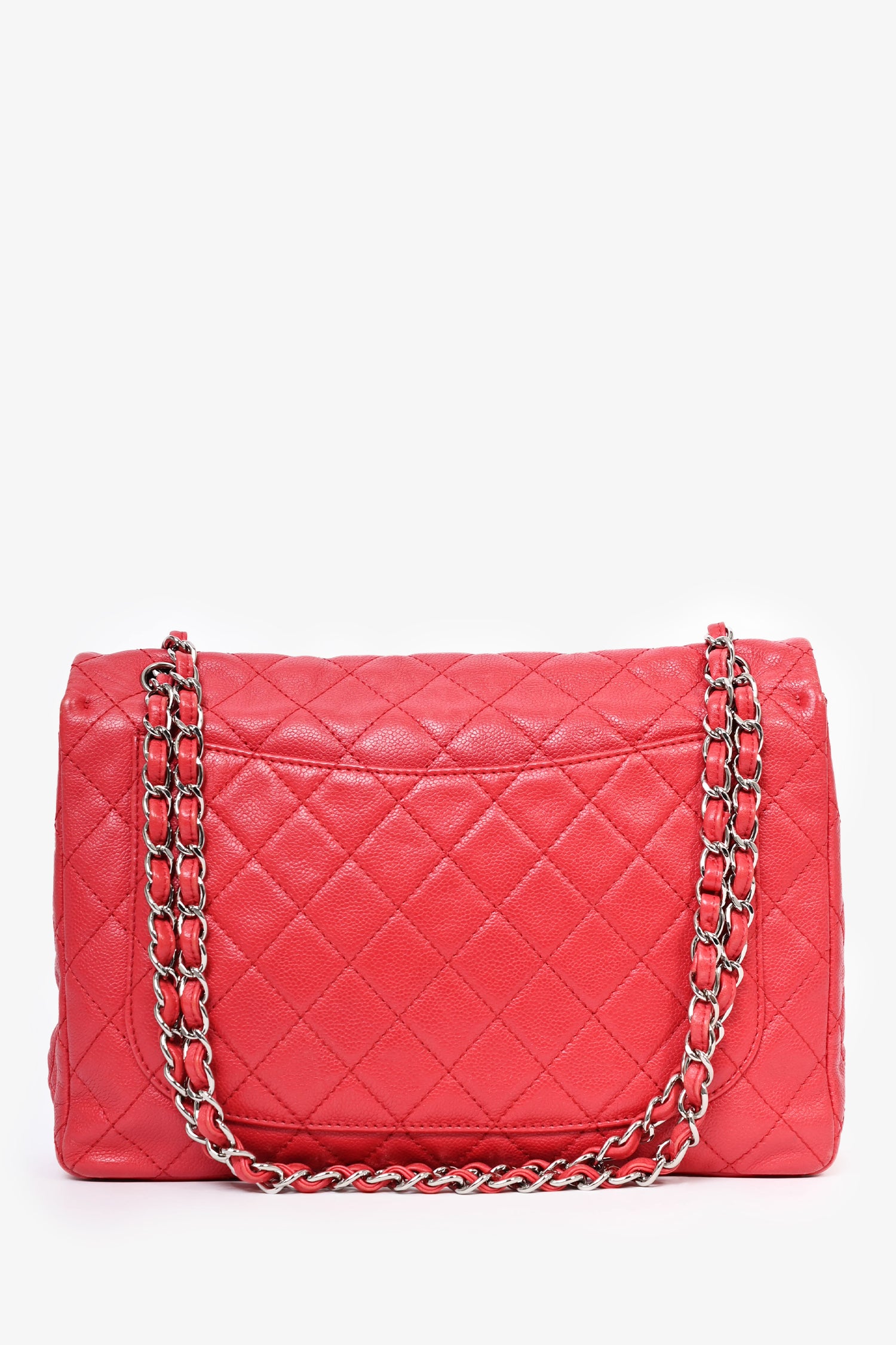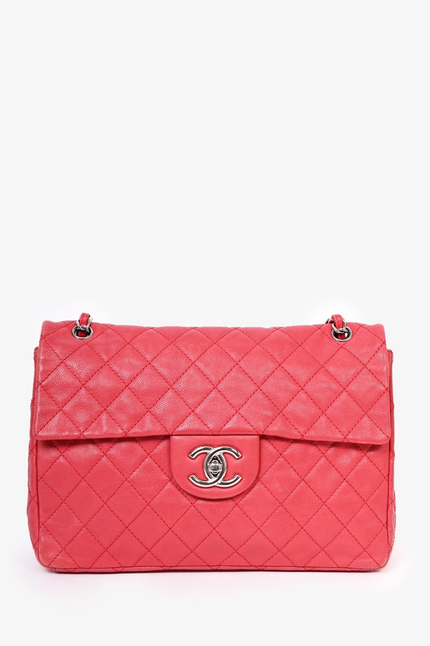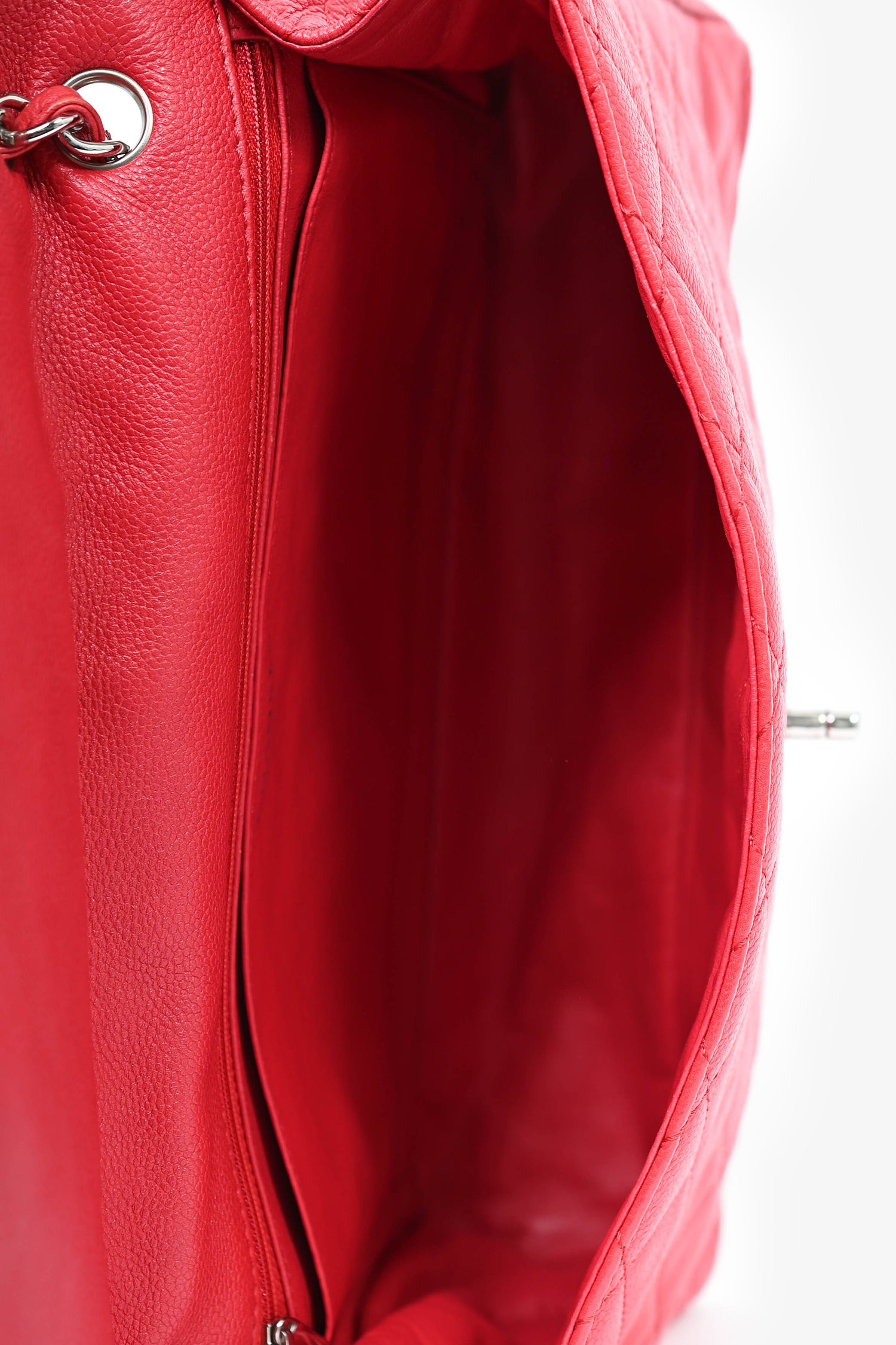 Refresh availabilityPre-Loved Chanel™ 2008/09 Red Caviar Leather CC Quilted Maxi Shoulder Bag. Front fold-over flap with turn-lock closure. Tonal interior. 2 interior wall pockets; 1 slip and 1 with zip closure. Outer rear slip pocket. Slide-around chain. Silver-tone hardware.