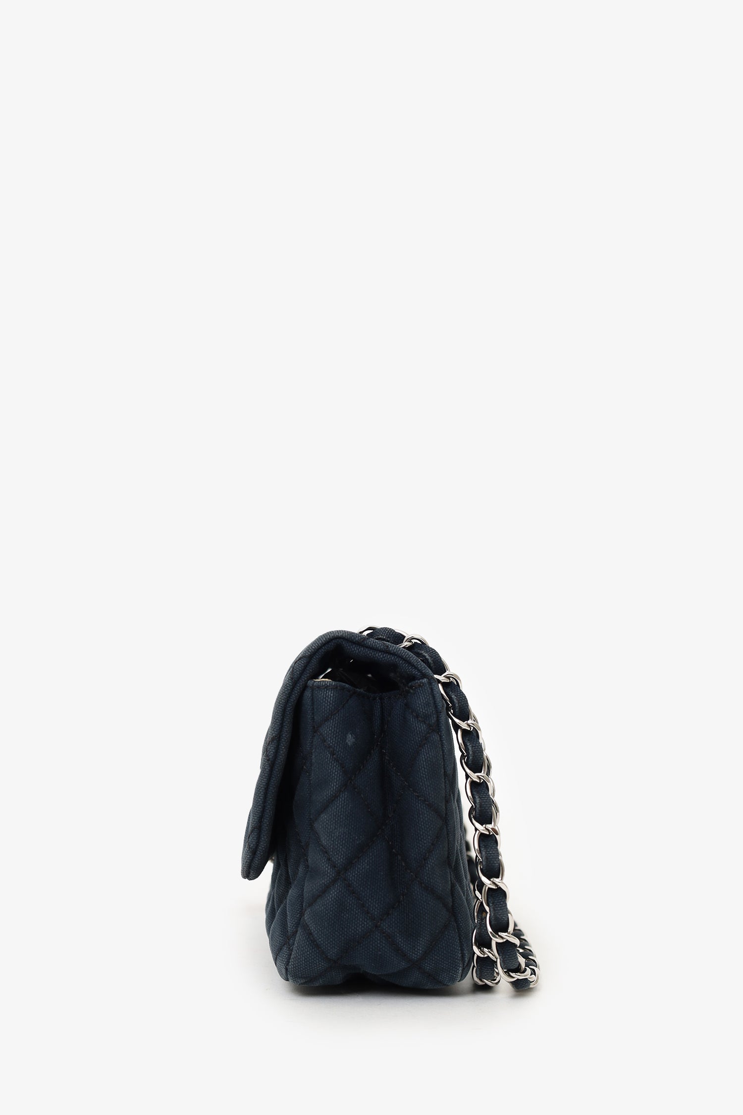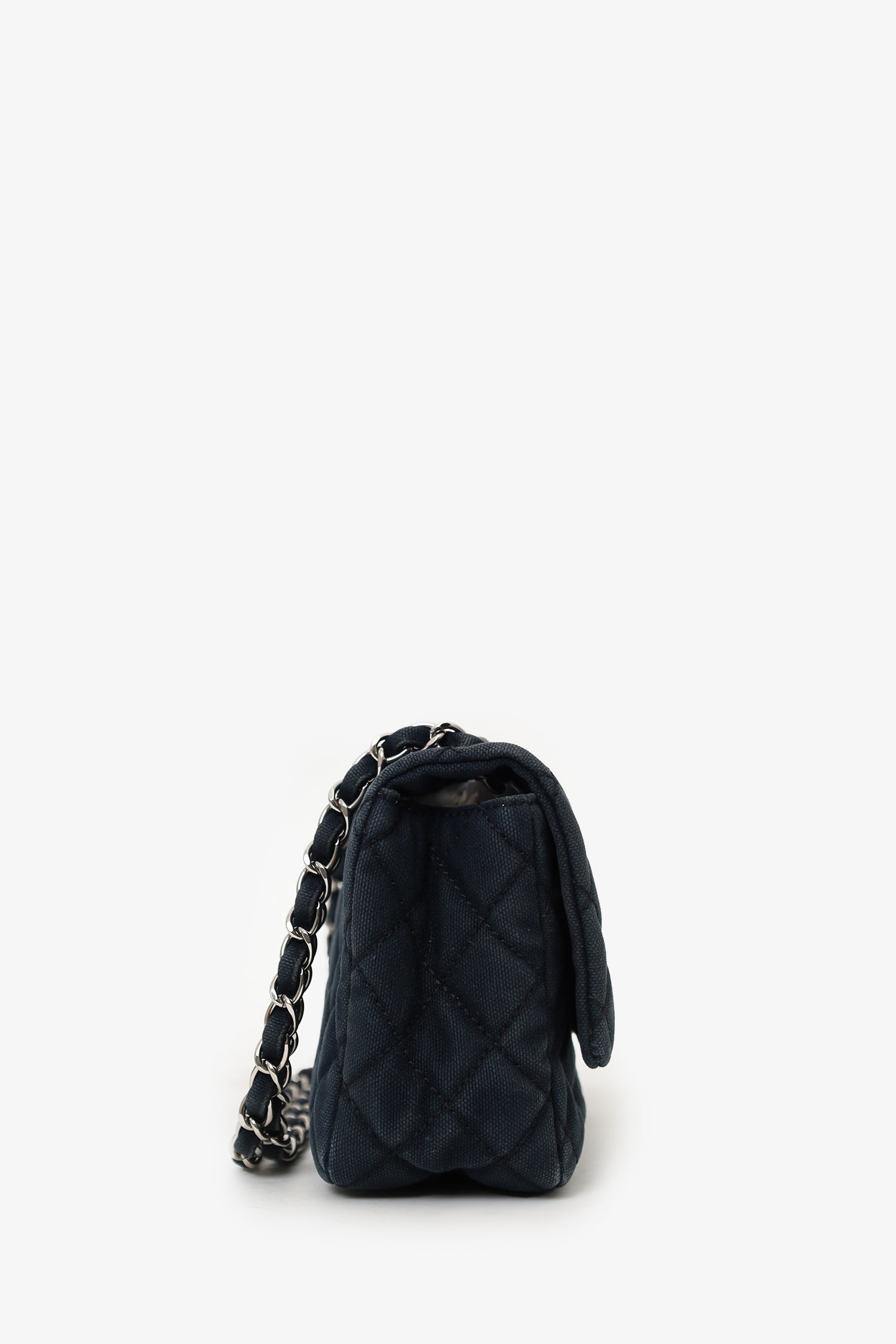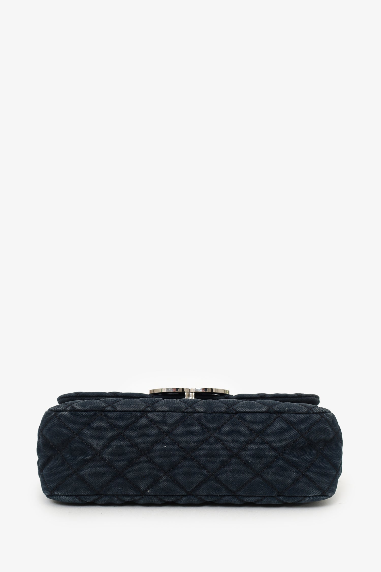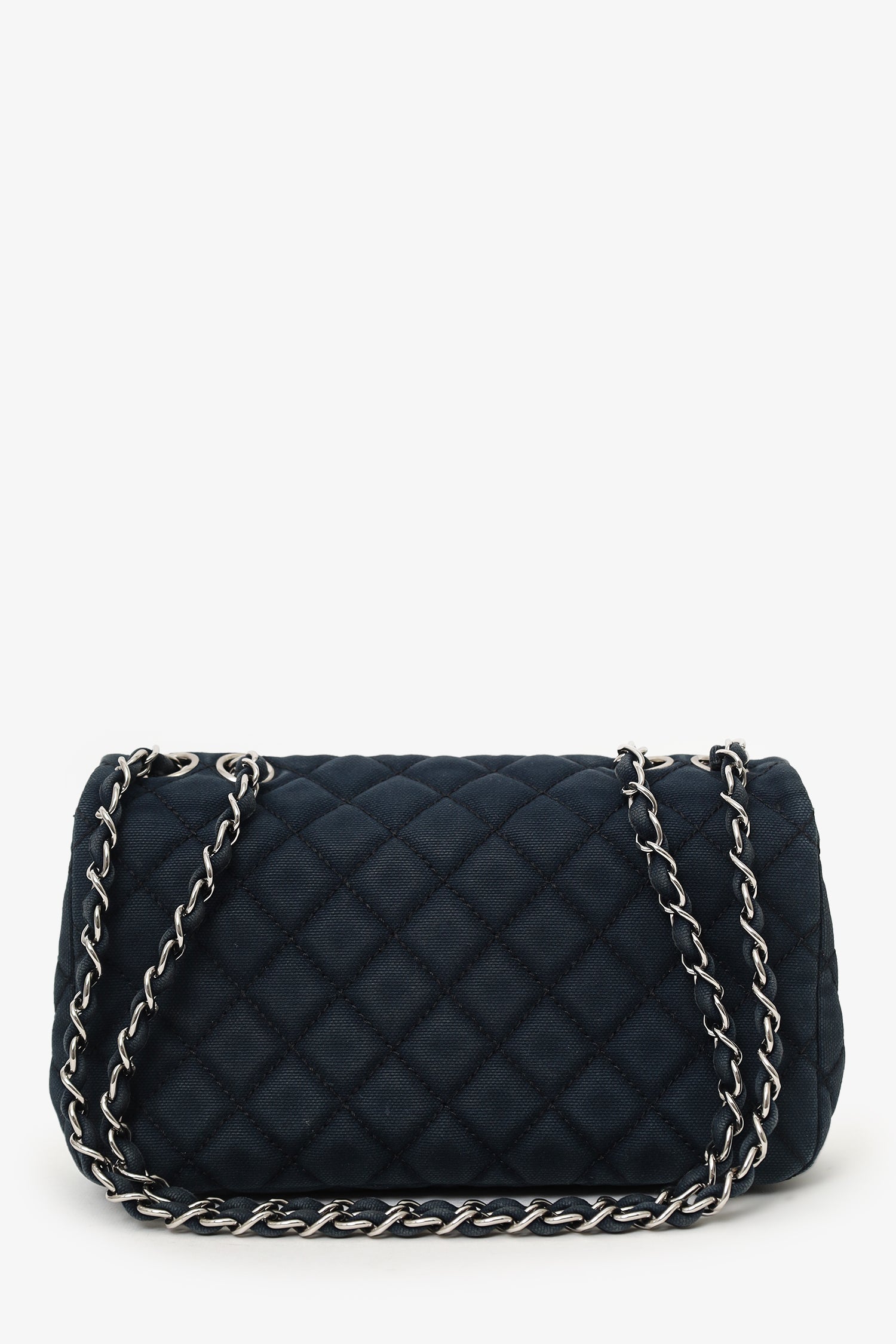 Refresh availabilityPre-Loved Chanel™ 2008/2009 Navy Canvas CC Cruise Shoulder Bag. Front fold-over flap with flip-lock closure. Chainlink straps that be pulled into one long strap. Lined interior. 2 interior pockets; 1 slip and 1 zip. Silver-tone hardware. Tonal stitching.