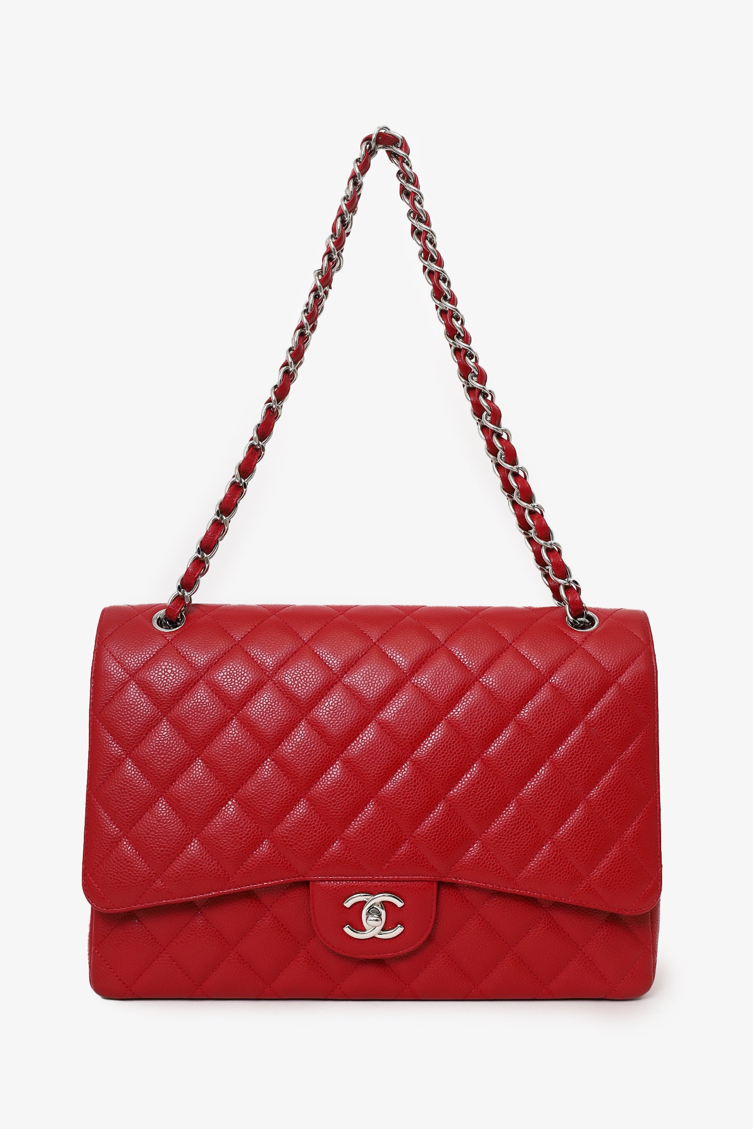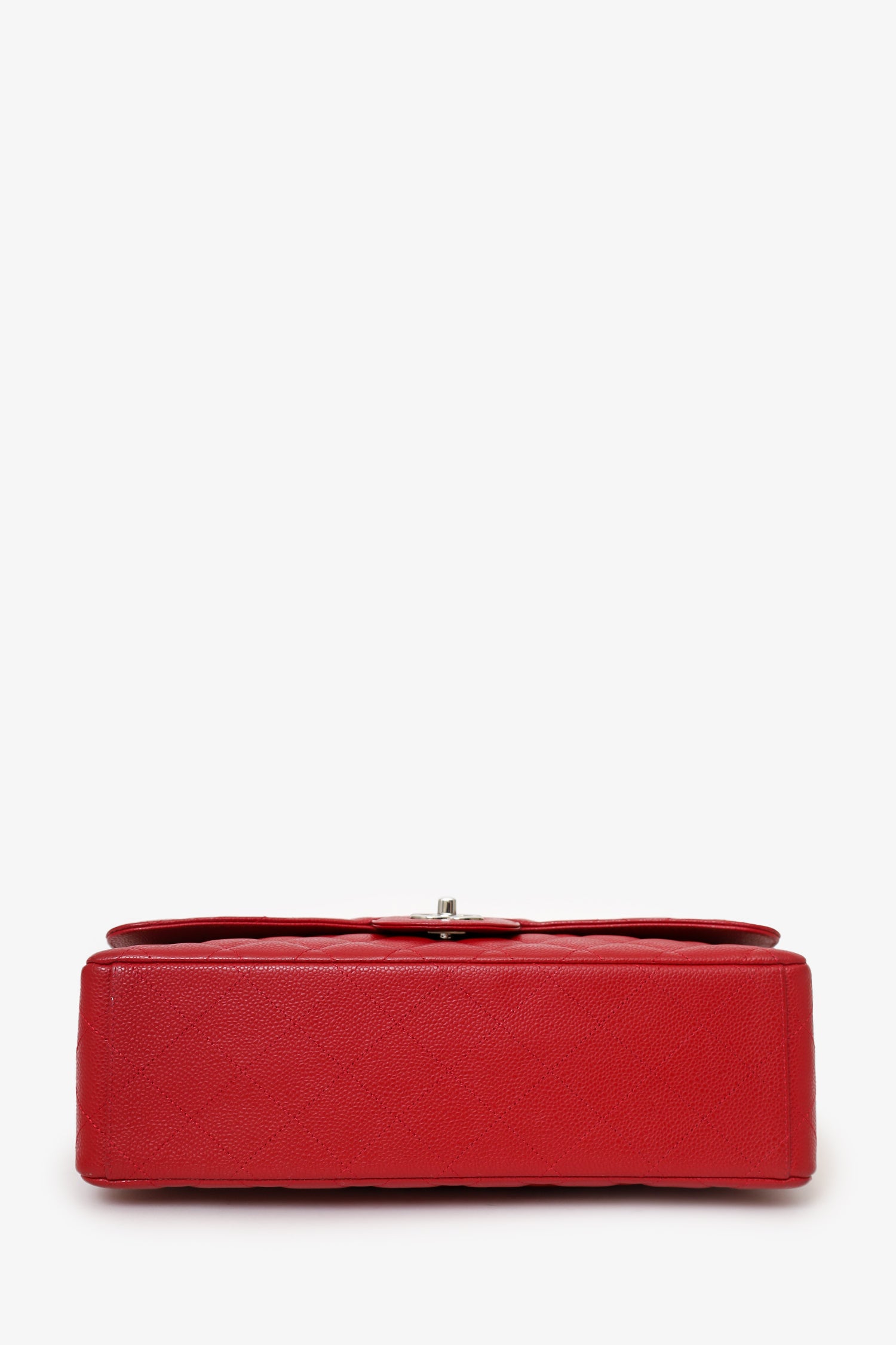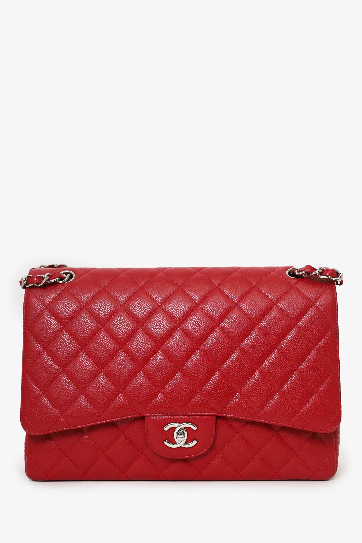 Refresh availabilityPre-Loved Chanel™ 2009-10 Red Caviar Maxi Double Flap Shoulder Bag. Front fold-over flap with turn-lock closure. Twin chainlink straps that can be pulled into one long one. Rear exterior slip pocket. Lined interior. 2 interior pockets; slip and zip. Gold-tone hardware. Tonal stitching.