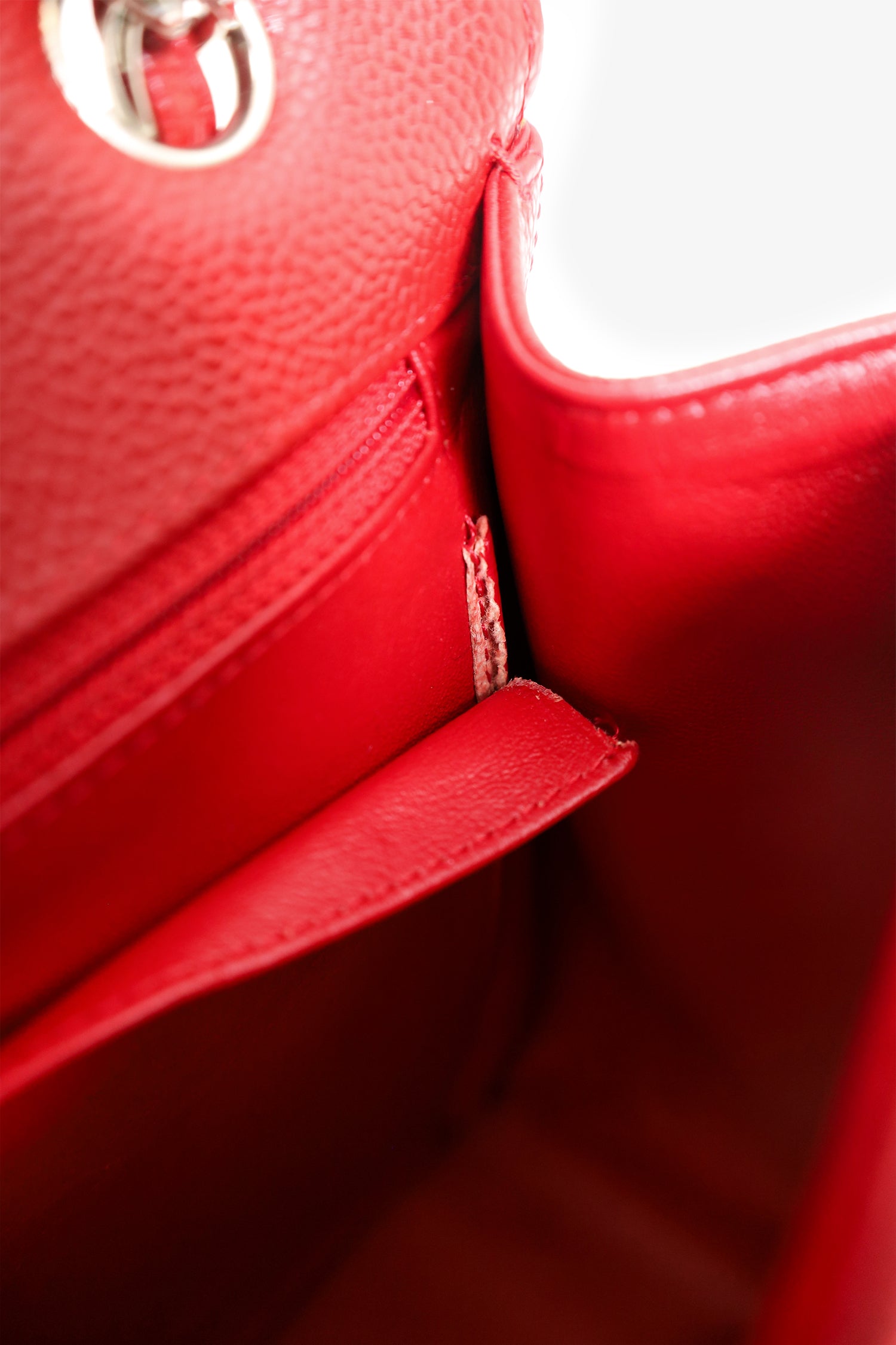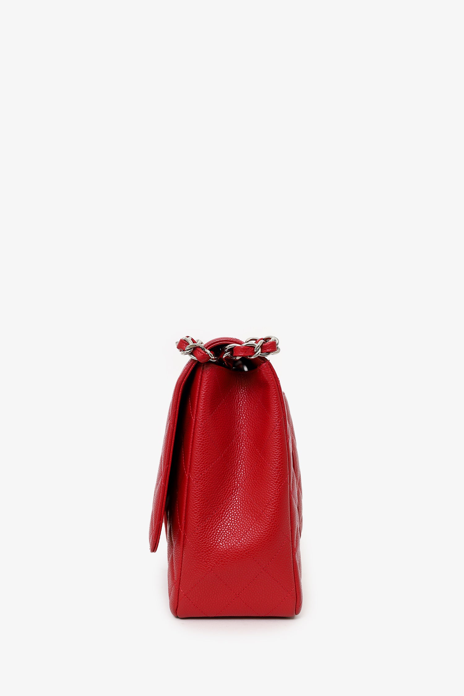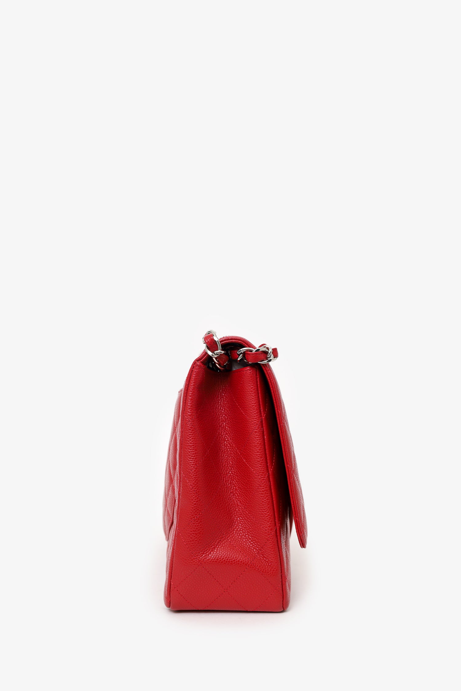 Refresh availabilityPre-Loved Chanel™ 2009-10 Red Caviar Maxi Double Flap Shoulder Bag. Front fold-over flap with turn-lock closure. Twin chainlink straps that can be pulled into one long one. Rear exterior slip pocket. Lined interior. 2 interior pockets; slip and zip. Gold-tone hardware. Tonal stitching.