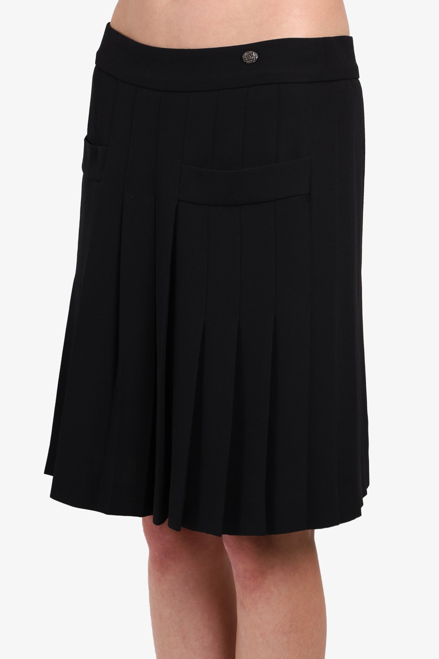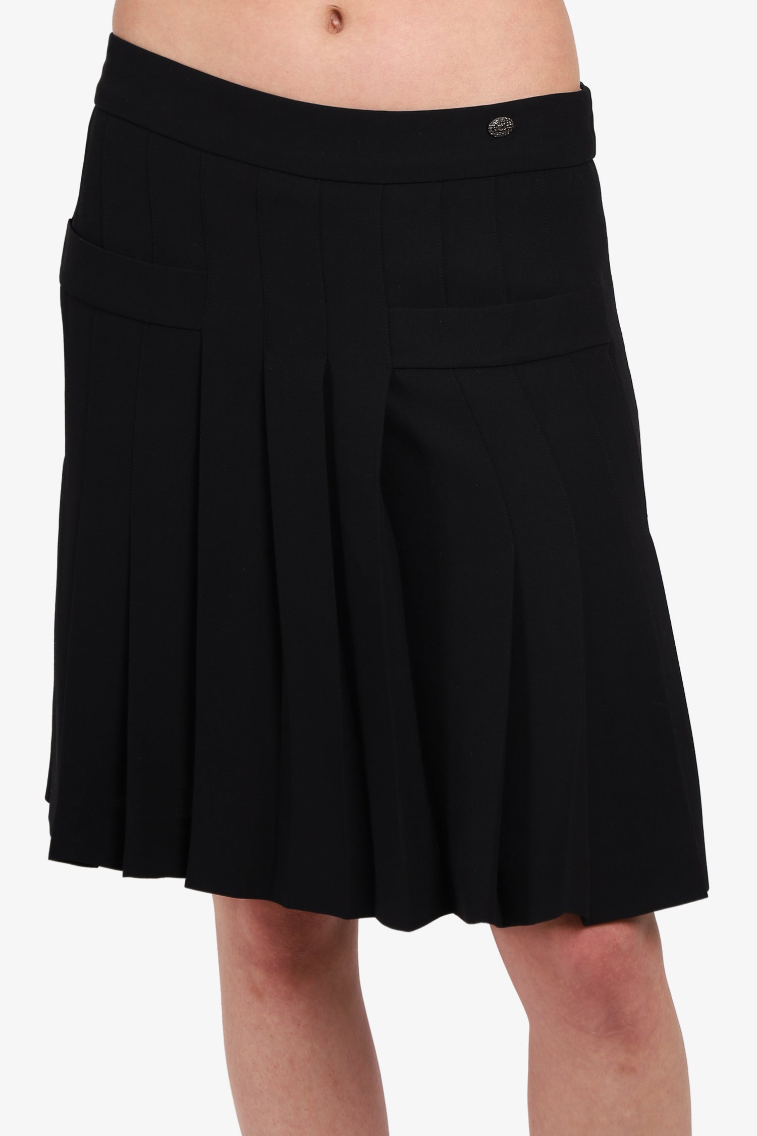 Refresh availabilityPre-loved Chanel™ 2012 Fall Black Silk Pleated Mini Skirt. Rear zip closure. Tonal stitching.