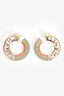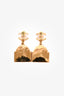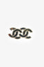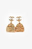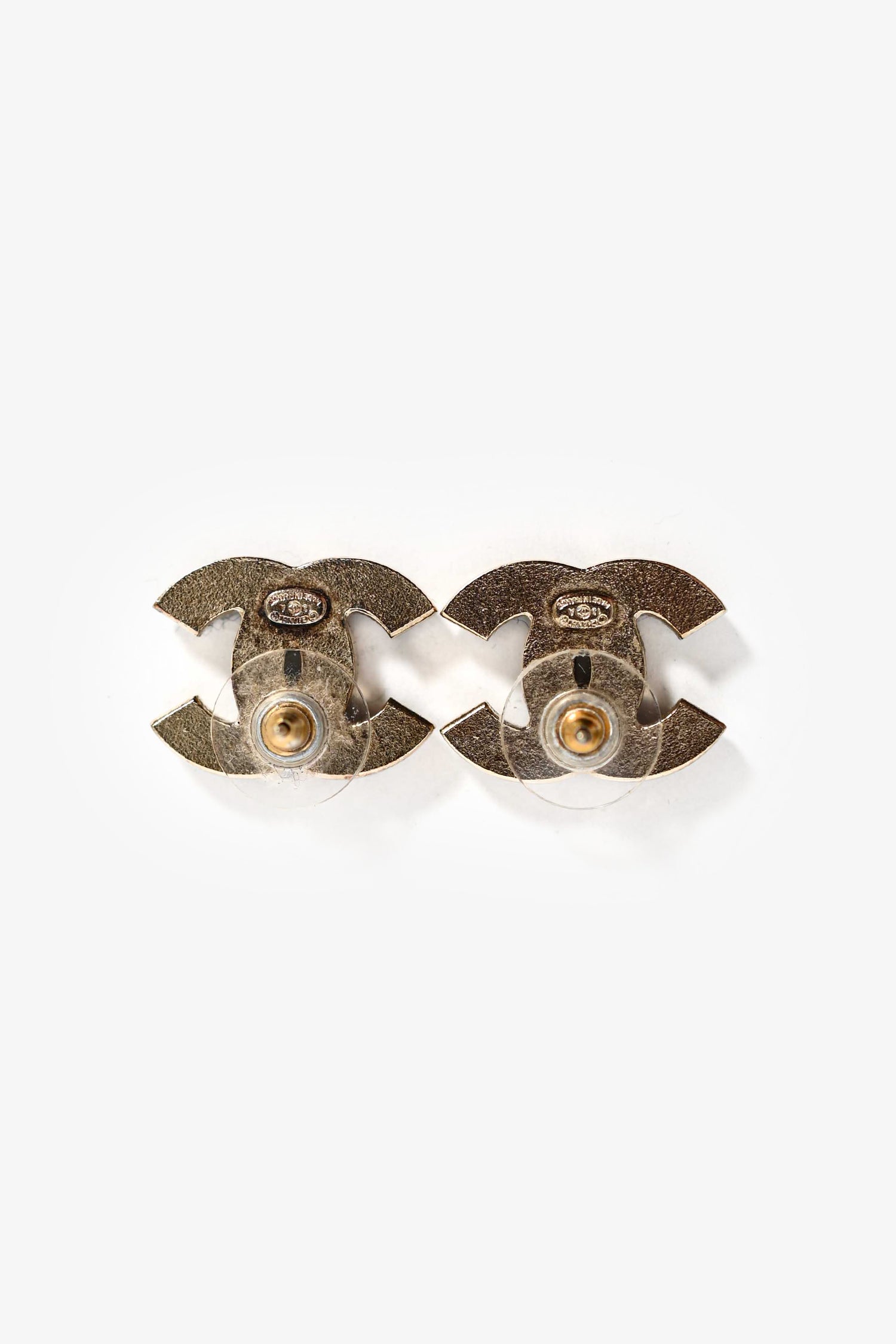 Pre-Loved Chanel™ 2013 Gold Toned Metal/Green Tweed CC Stud Earrings. Push-pin closure.