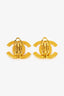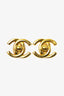 Pre-Loved Chanel™ 2013 Gold Toned Metal/Green Tweed CC Stud Earrings
