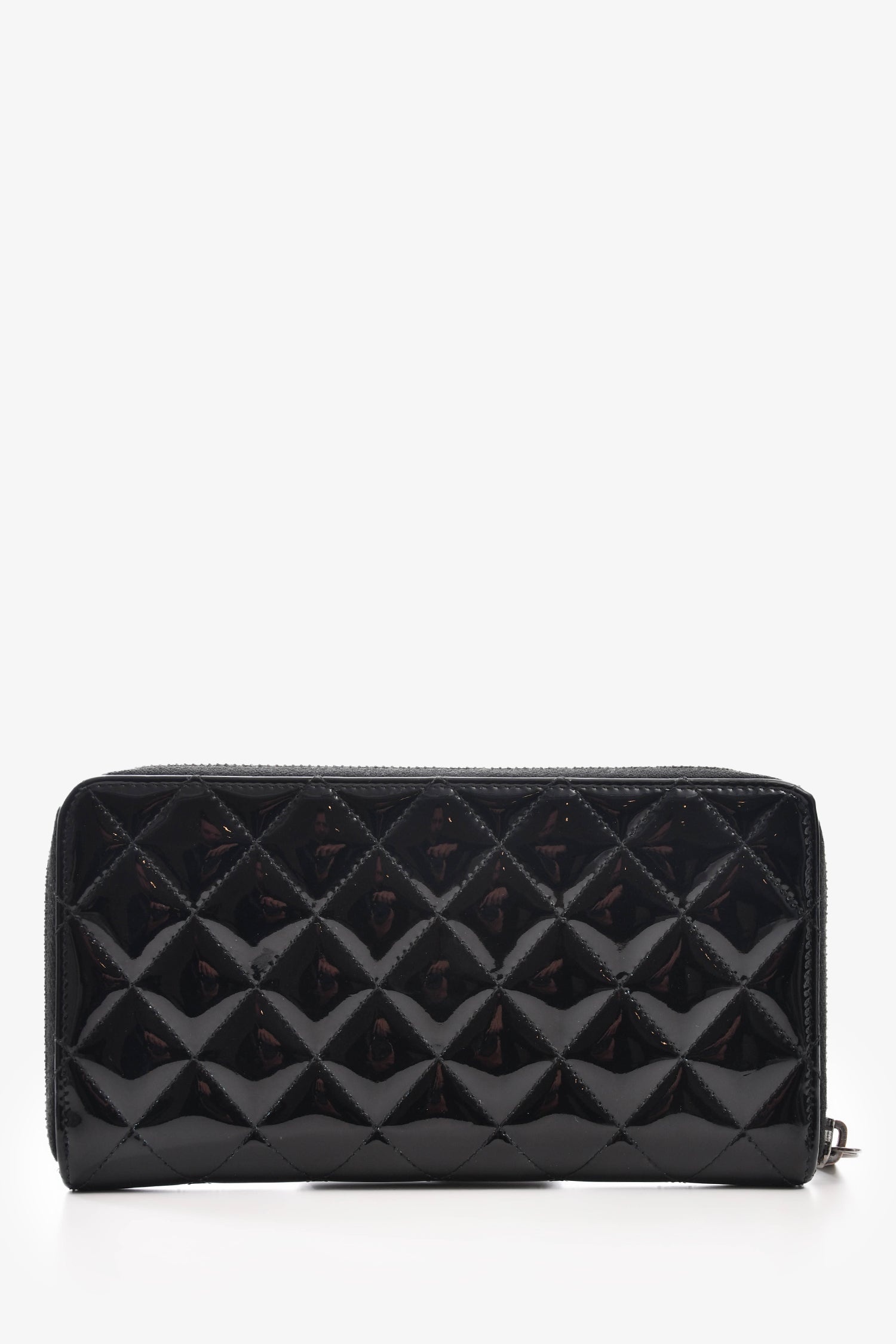 Pre-Loved Chanel™ 2015/16 Black Patent Leather Quilted CC Long Zip Wallet