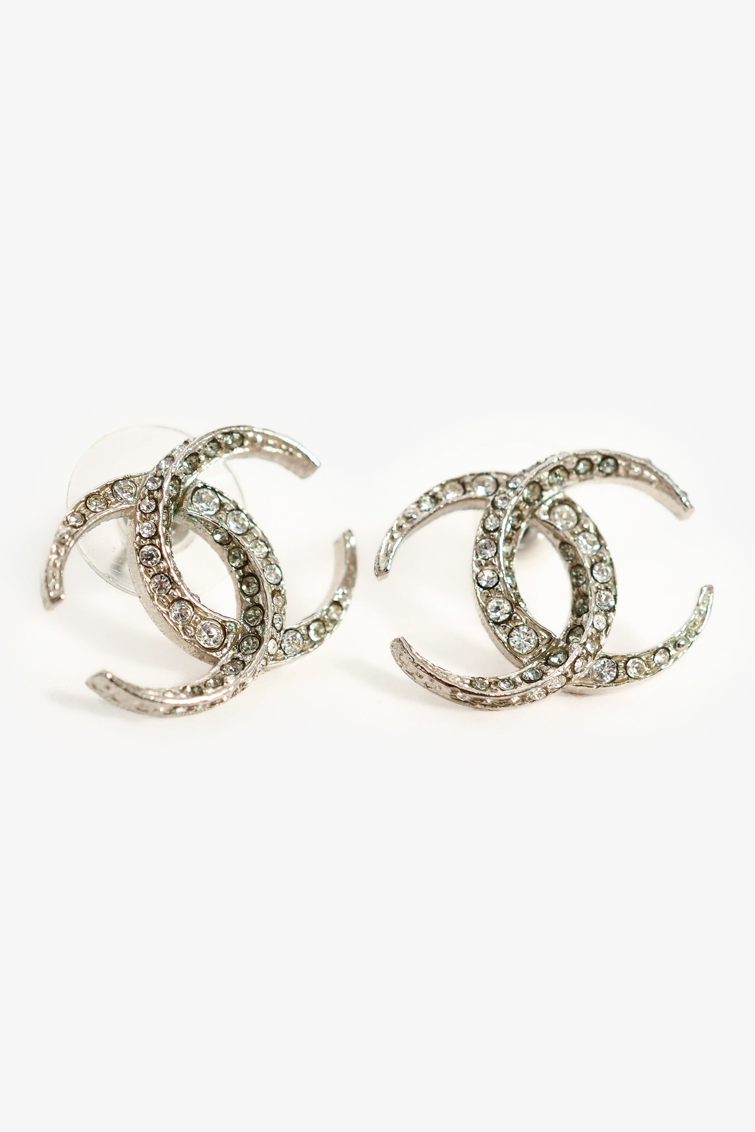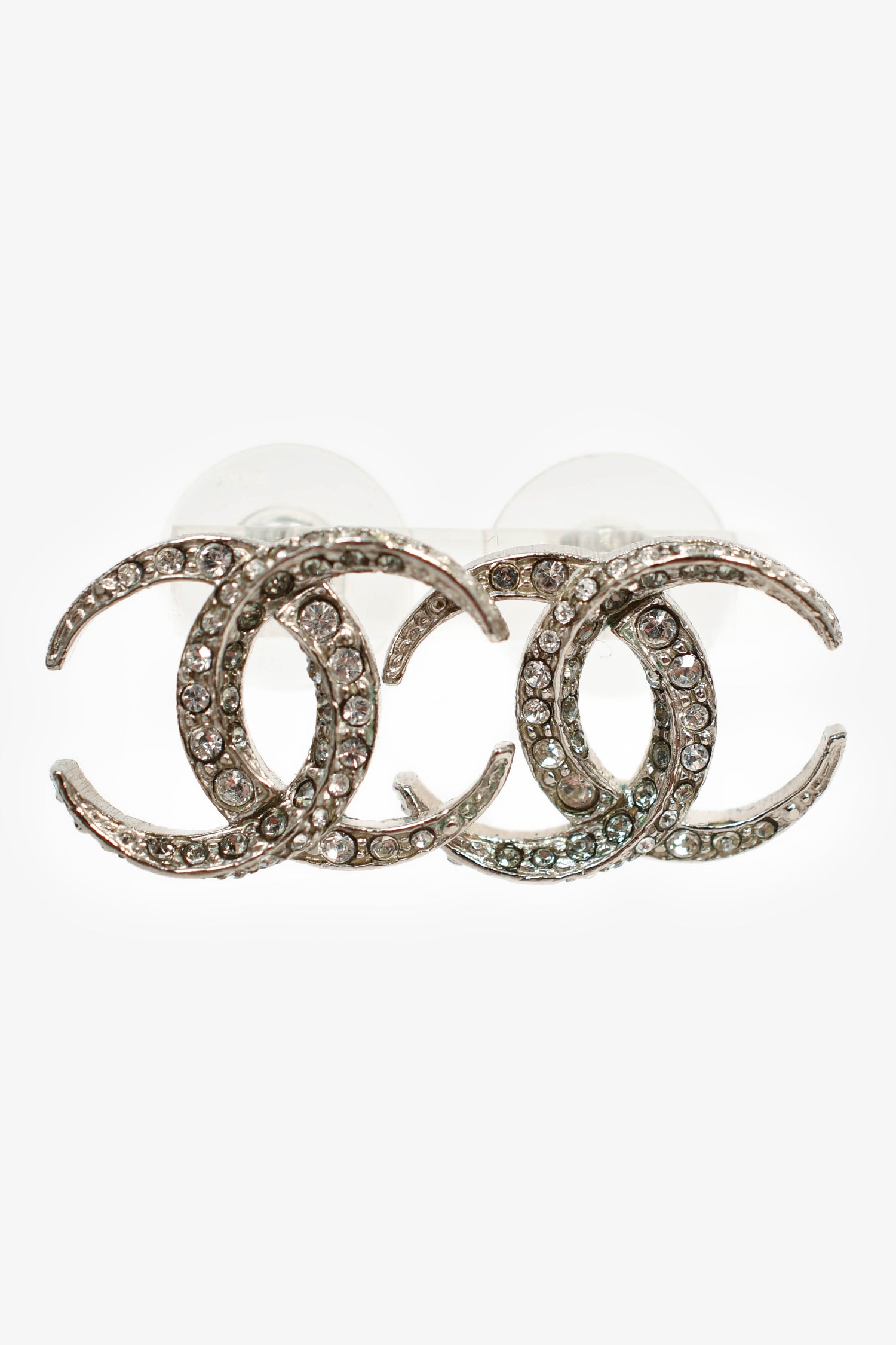 Refresh availabilityPre-Loved Chanel™ 2015 Silver Tone Crystal Embellished CC Stud Earrings. Post closure.