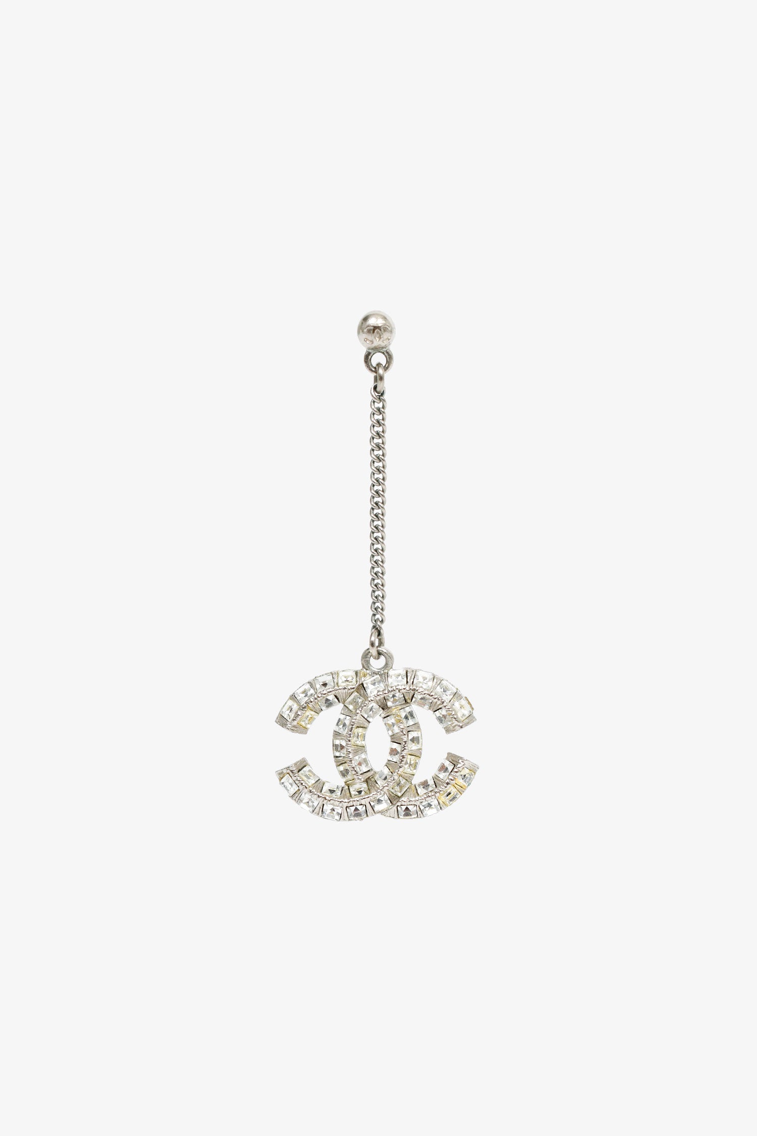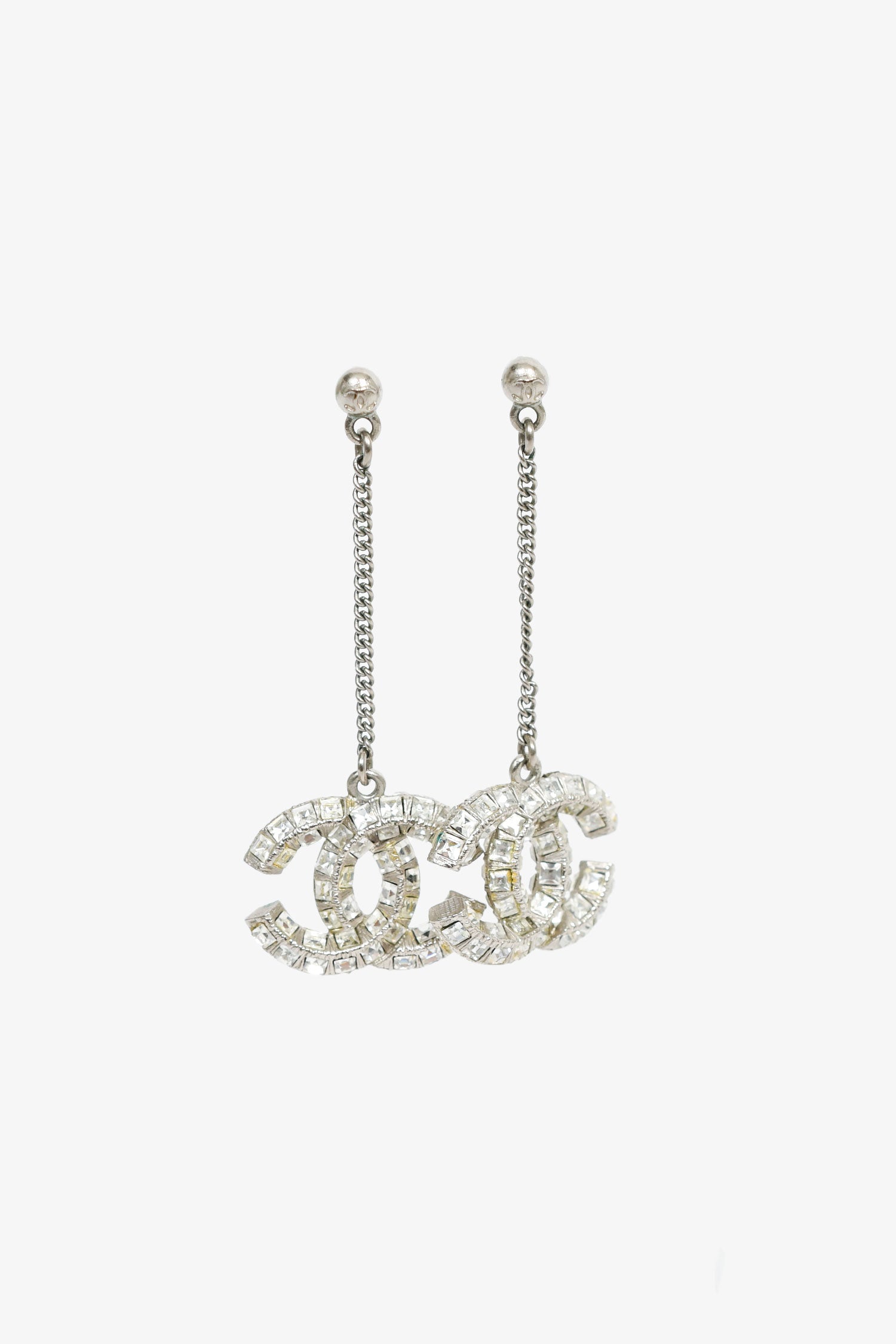 Refresh availabilityPre-Loved Chanel™ 2017 Silver Tone Crystal Embellished Drop CC Earrings. Silver-tone hardware.