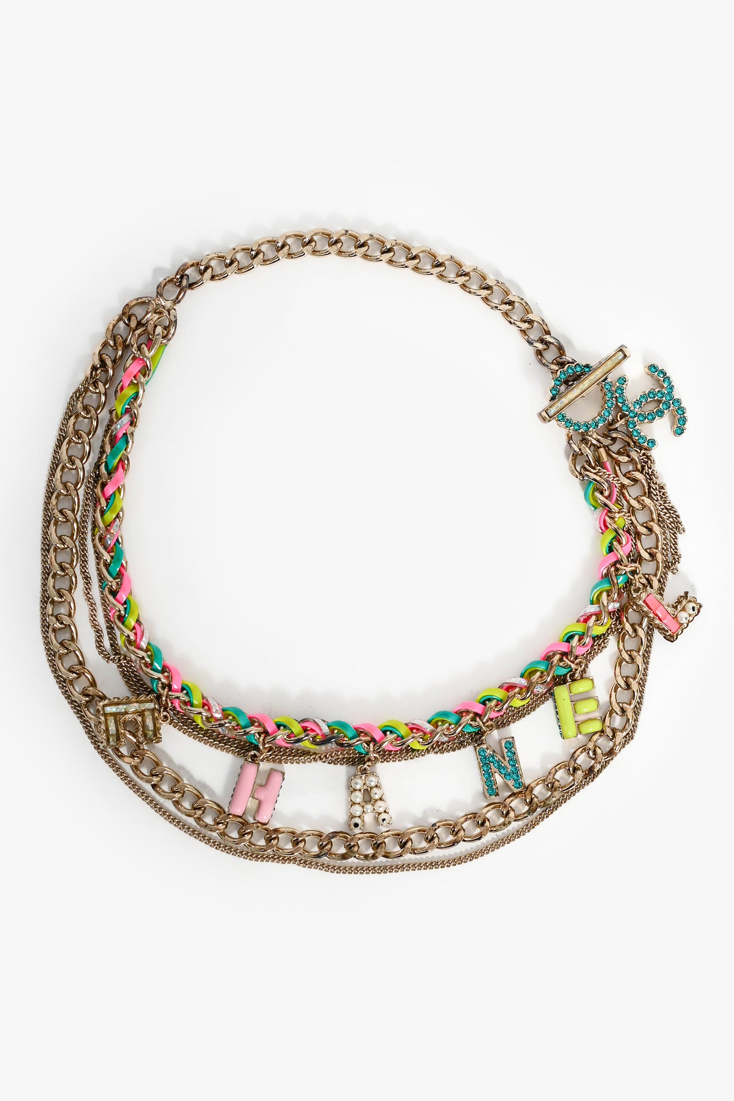 Refresh availabilityPre-Loved Chanel™ 2024 Gold Toned Pink Enamel CC Hoops 2017 Gold Toned Multi-Coloured Logo Multi-Strand Necklace. Toggle clasp closure.