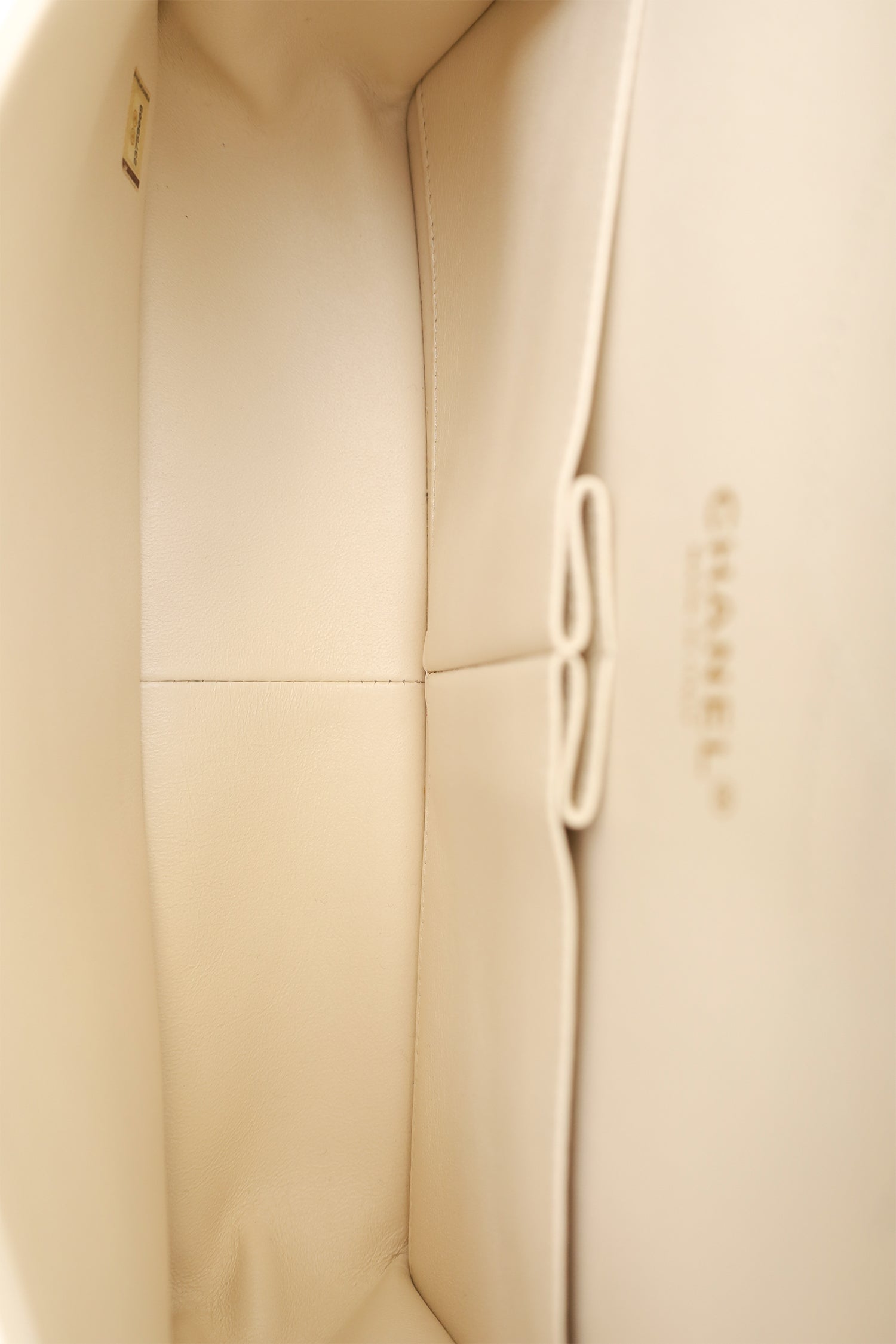 Pre-Loved Chanel™ 2017 White Caviar Leather Classic Jumbo Double Flap Bag