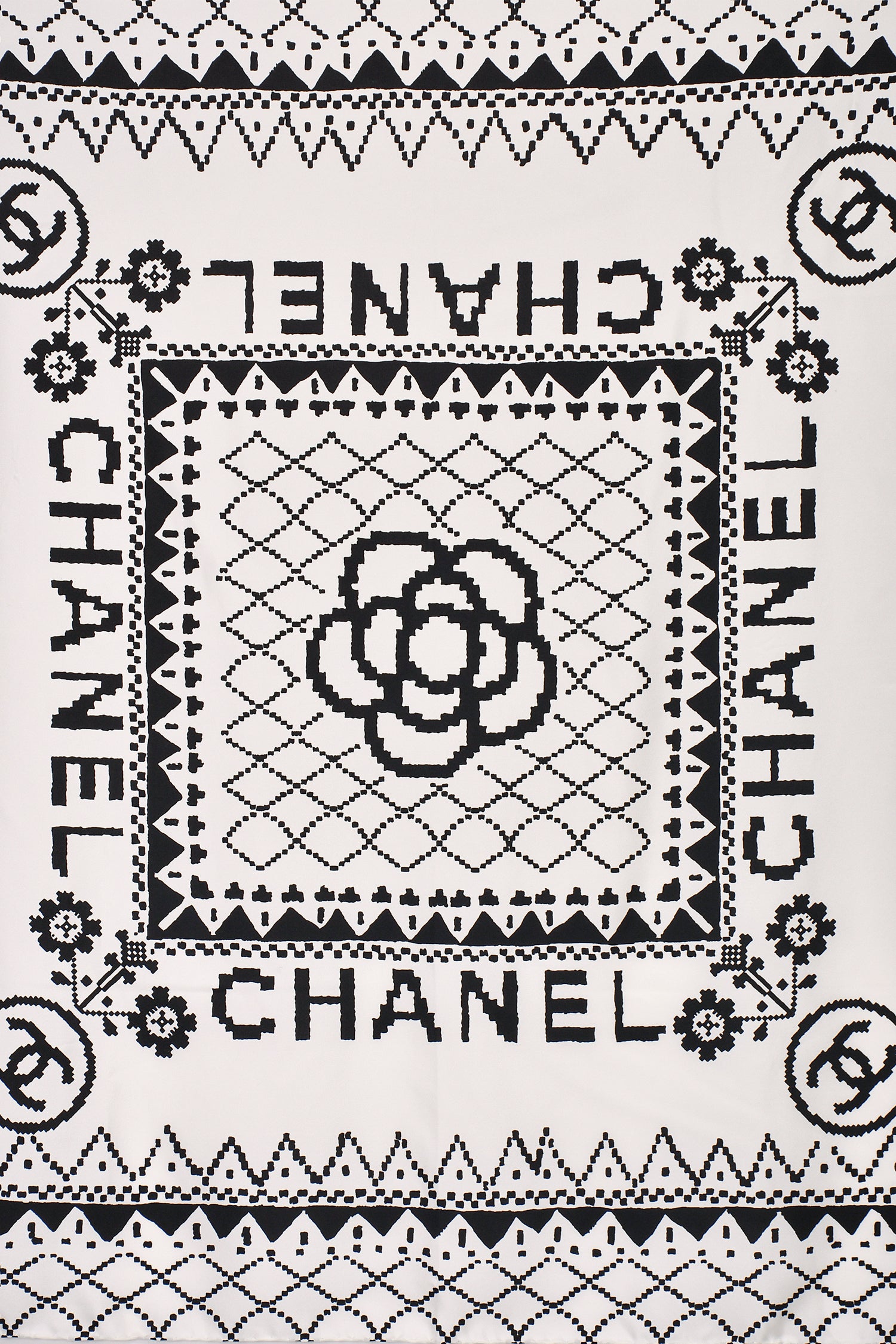 Refresh availabilityPre-Loved Chanel™ 2018 Black/White Pixel Doodle Scarf. Tonal stitching.