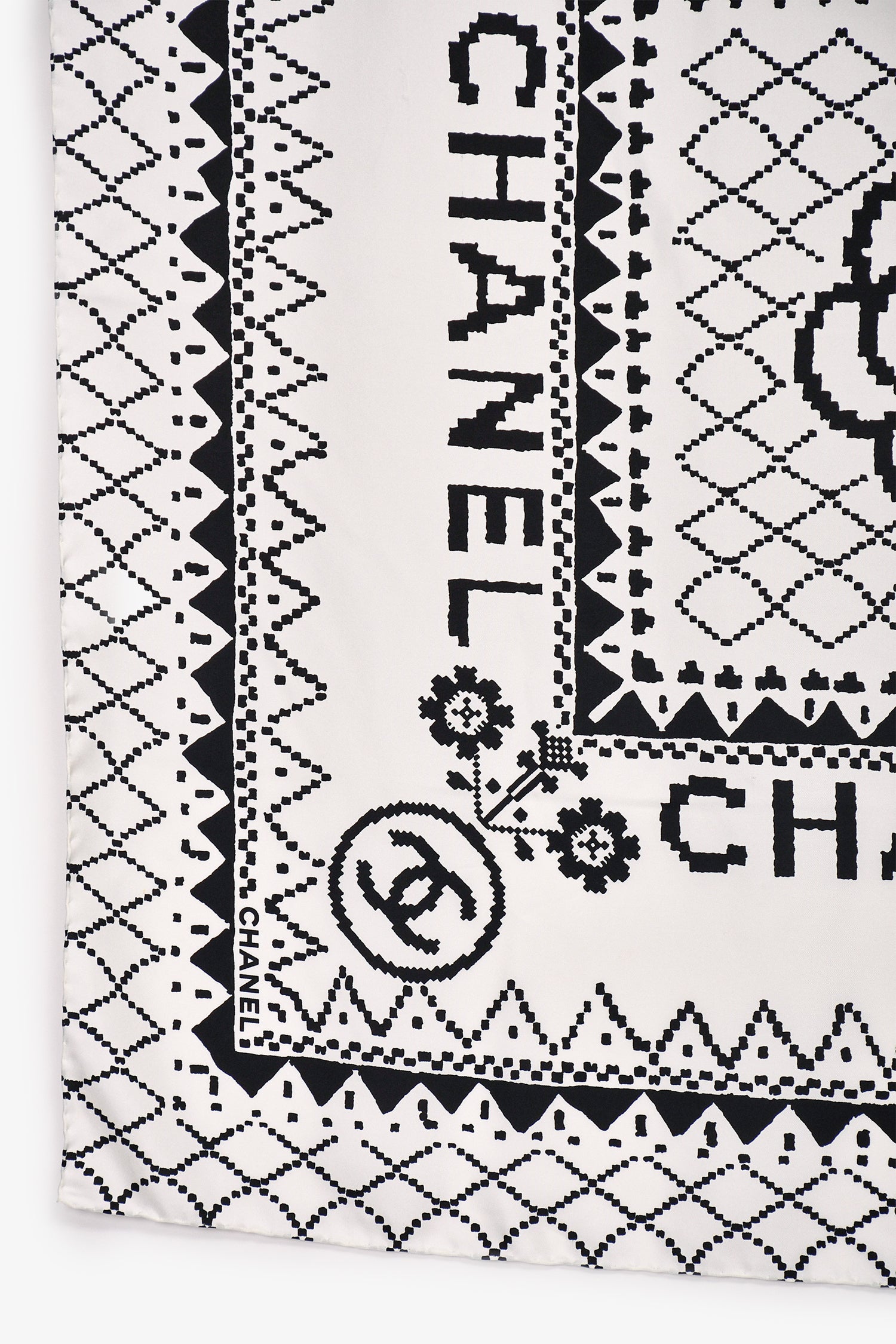 Pre-Loved Chanel™ 2018 Black/White Pixel Doodle Scarf