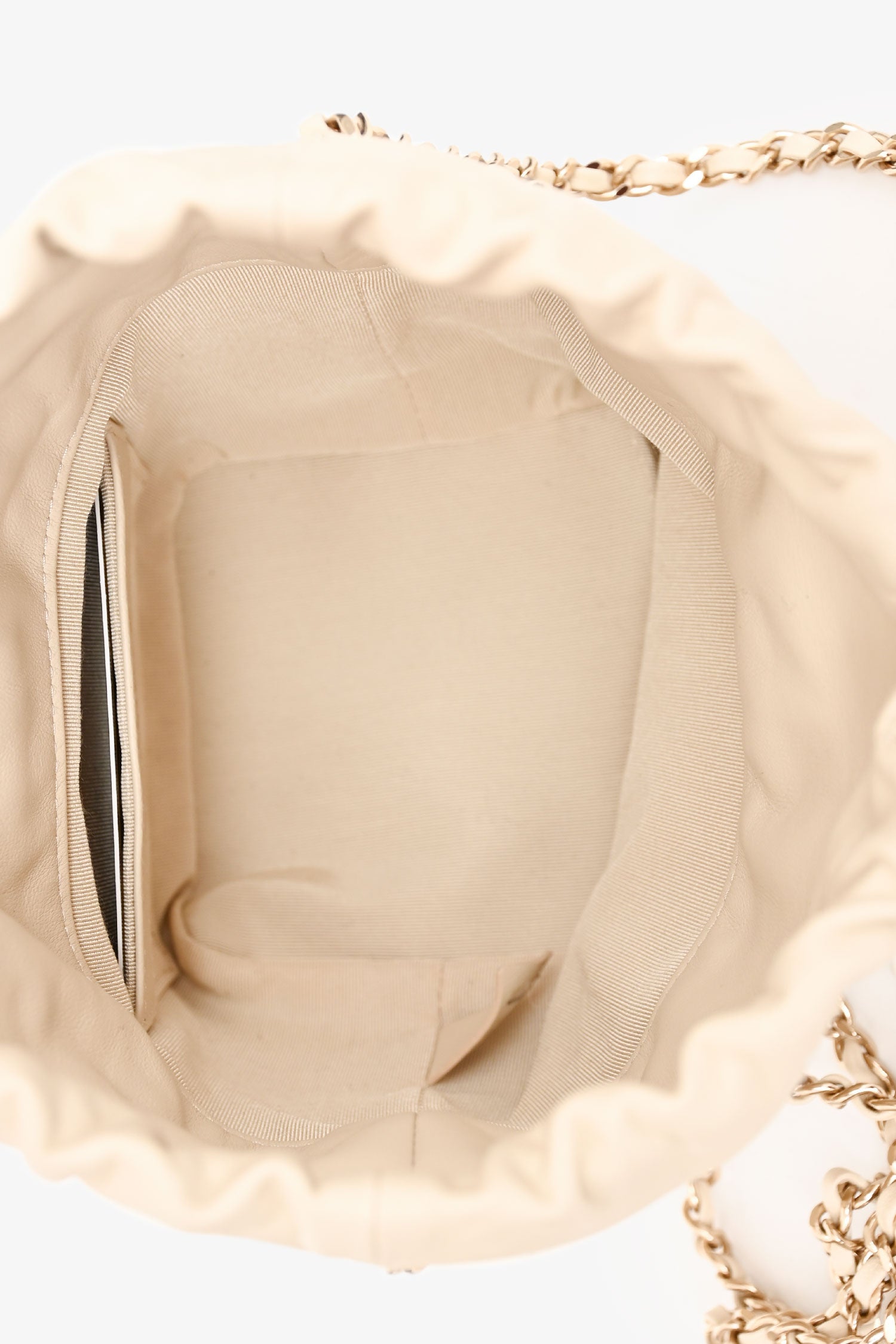 Pre-Loved Chanel™ 2019-20 Cream Lambskin Leather Bucket Chain Drawstring Bag