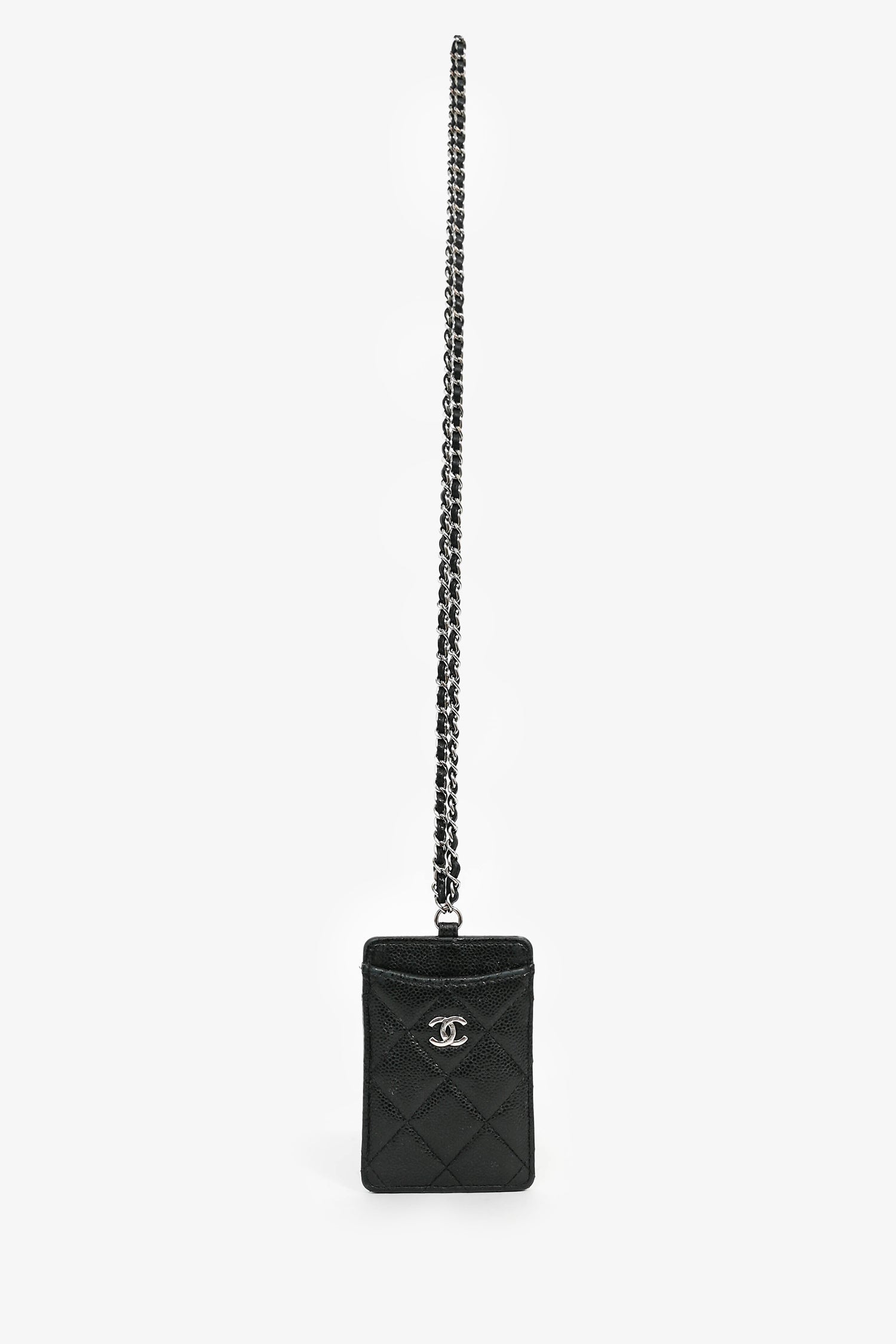 Refresh availabilityPre-Loved Chanel™ 2020 Black Caviar Leather Card Holder On Chain. 3 card slots. Chain-link and leather strap. Tonal stitching.