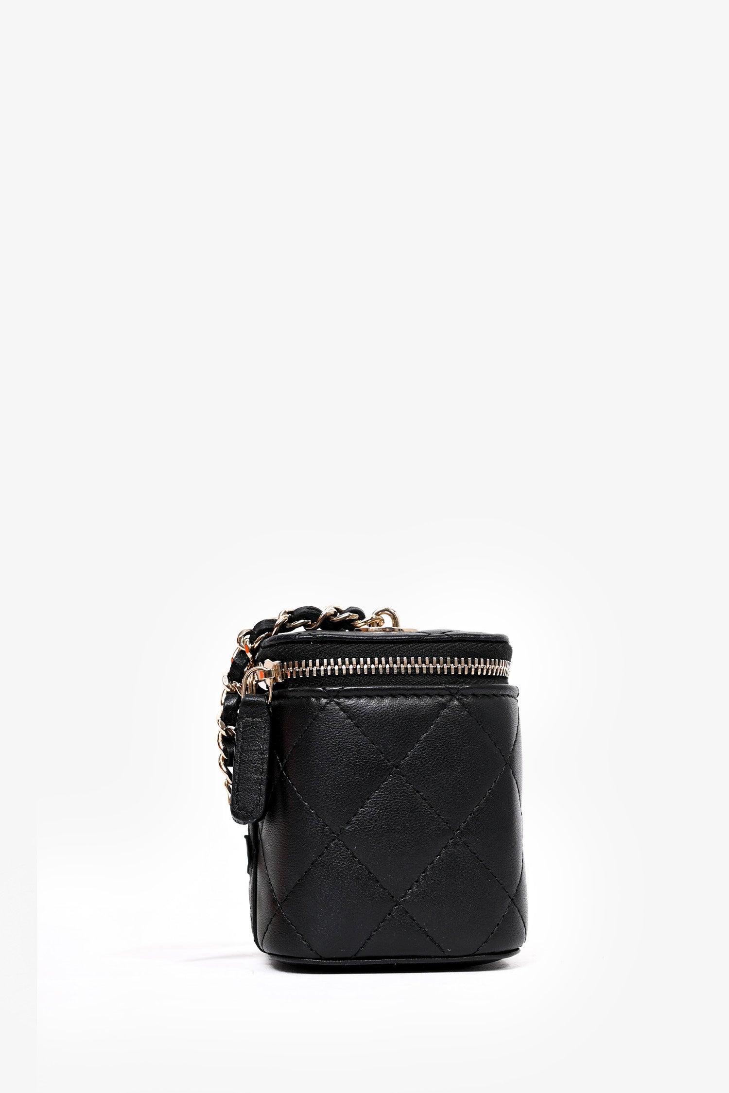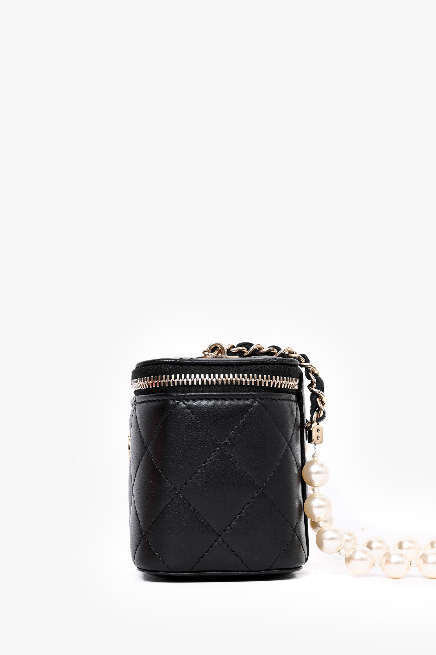 Pre-Loved Chanel™ 2021 Black Lambskin Mini Pearl Strap Vanity Case